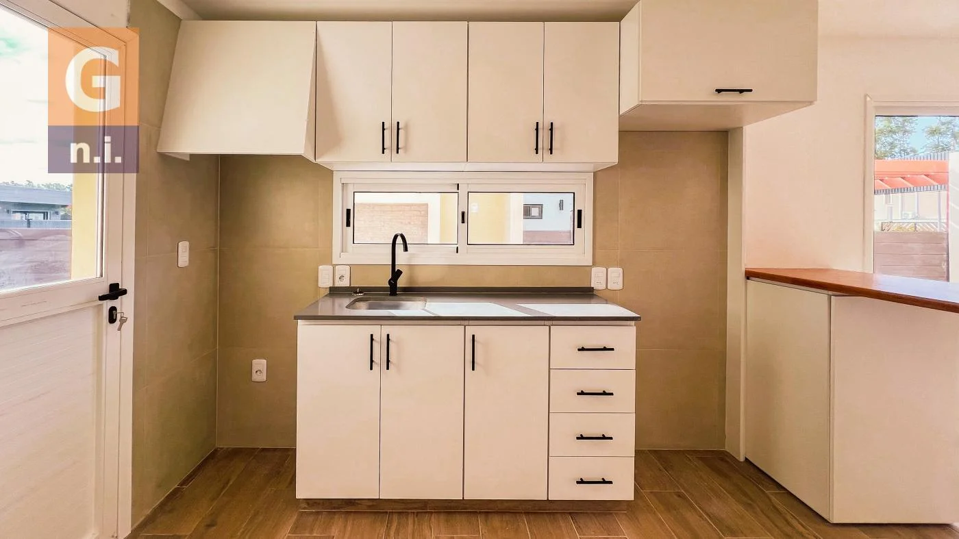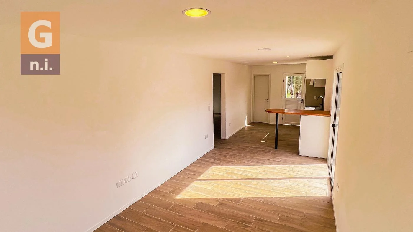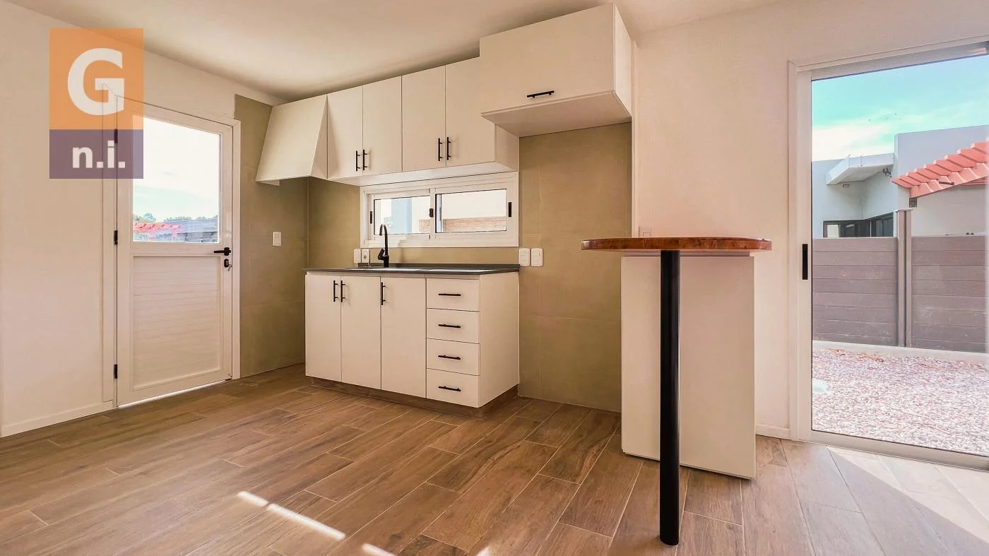 La unidad se distribuye en un luminoso living comedor, cocina integrada y baño social. A través de un pequeño pasillo distribuidor se accede a dos cómodos dormitorios y baño completo.