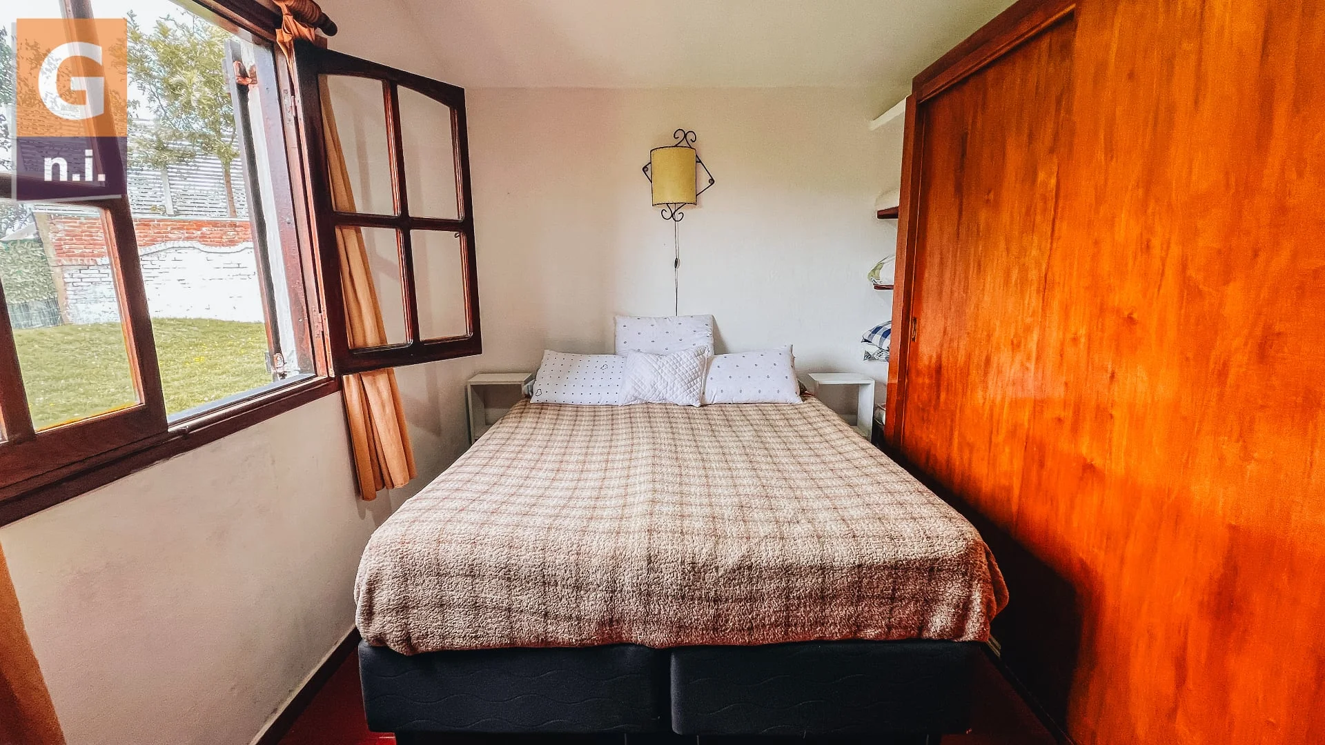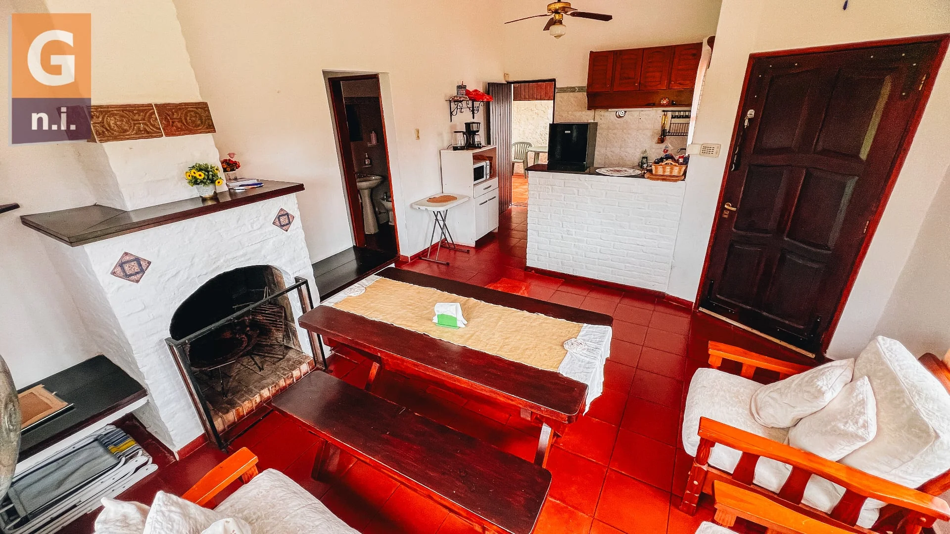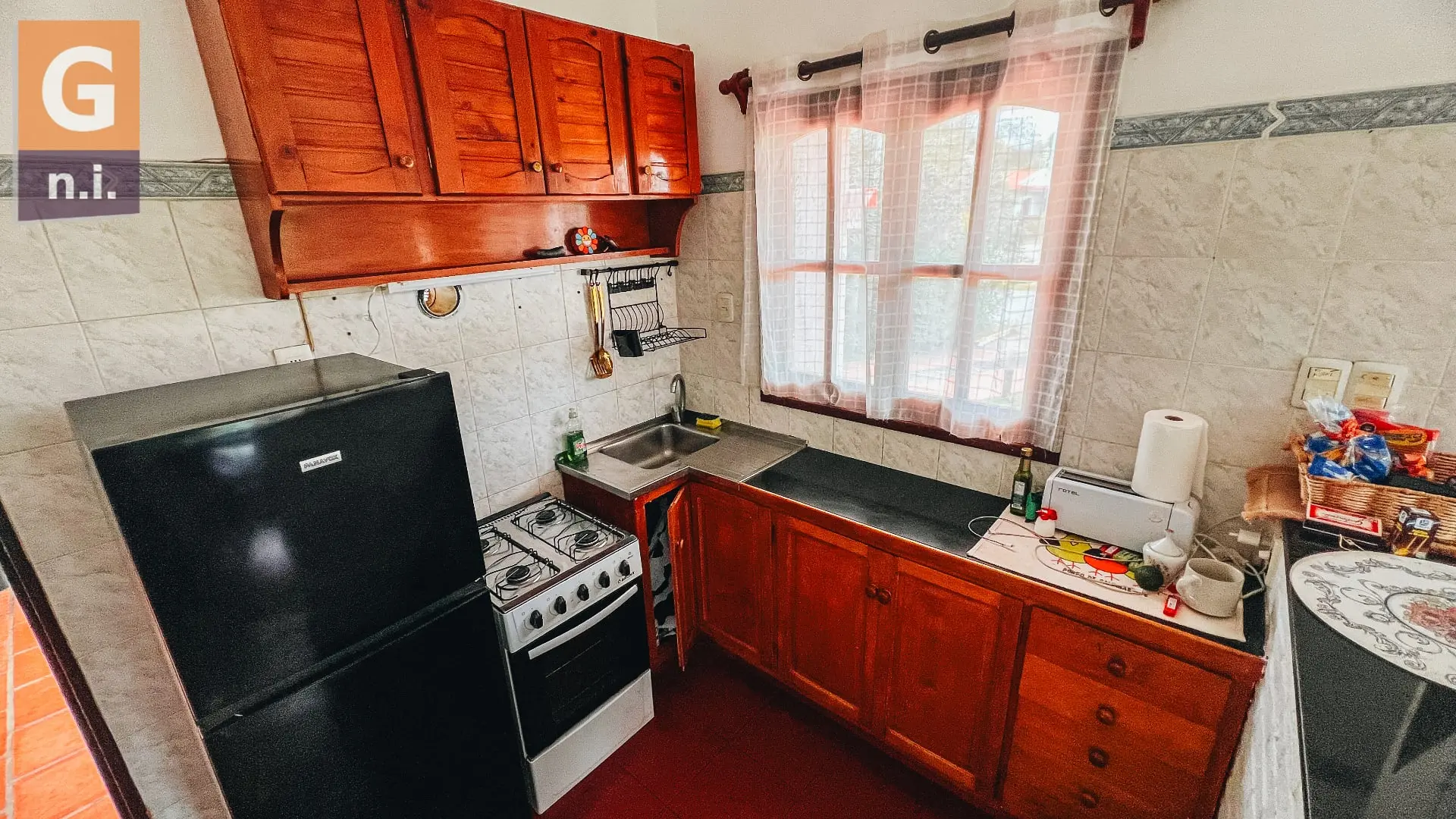 Se distribuye en living-comedor con estufa a leña, cocina separada por mesada en ladrillo y granito, un baño, dos dormitorios, parrillero techado, parque/jardín.