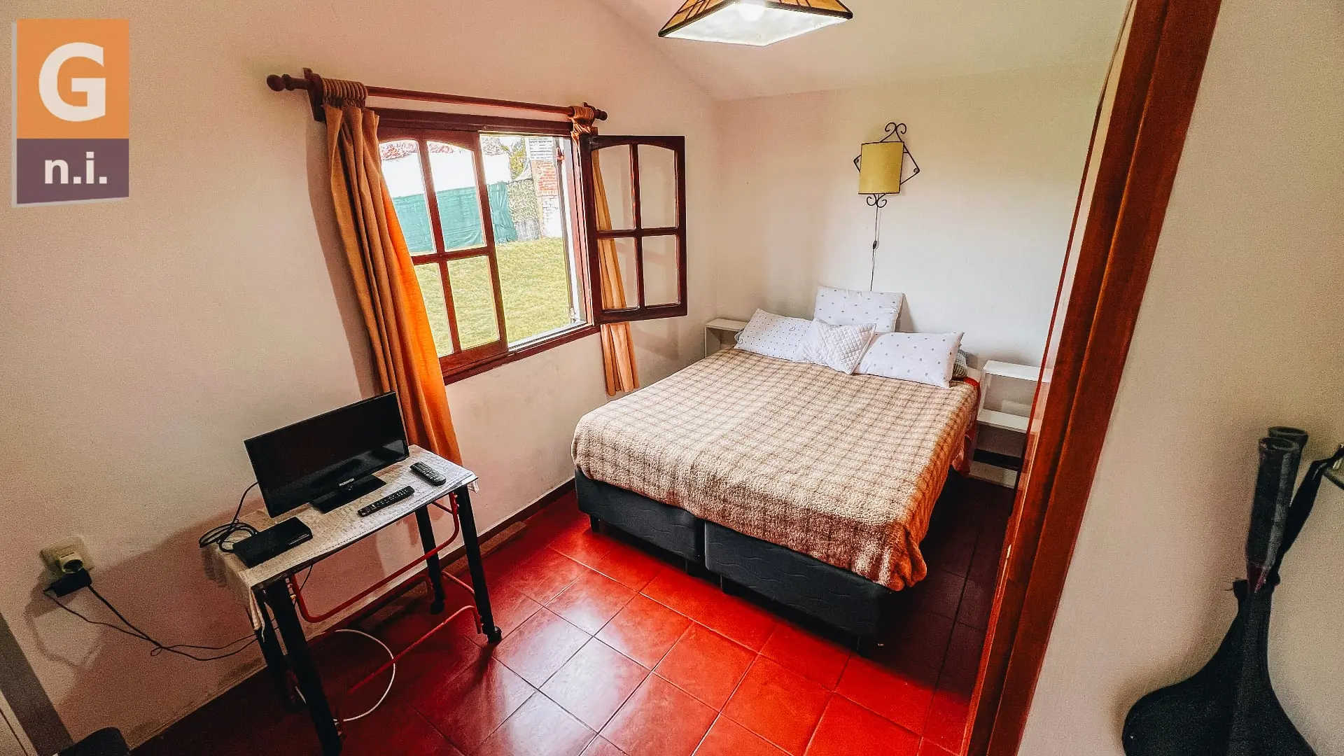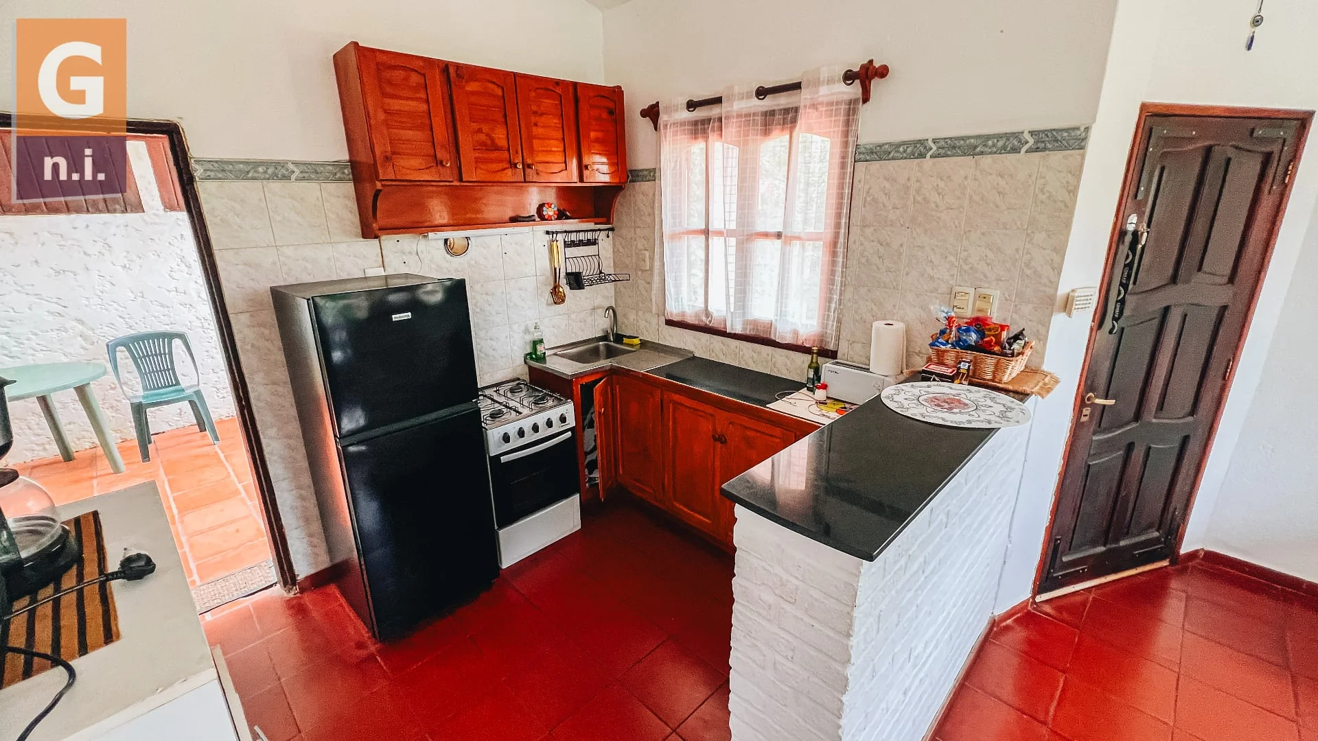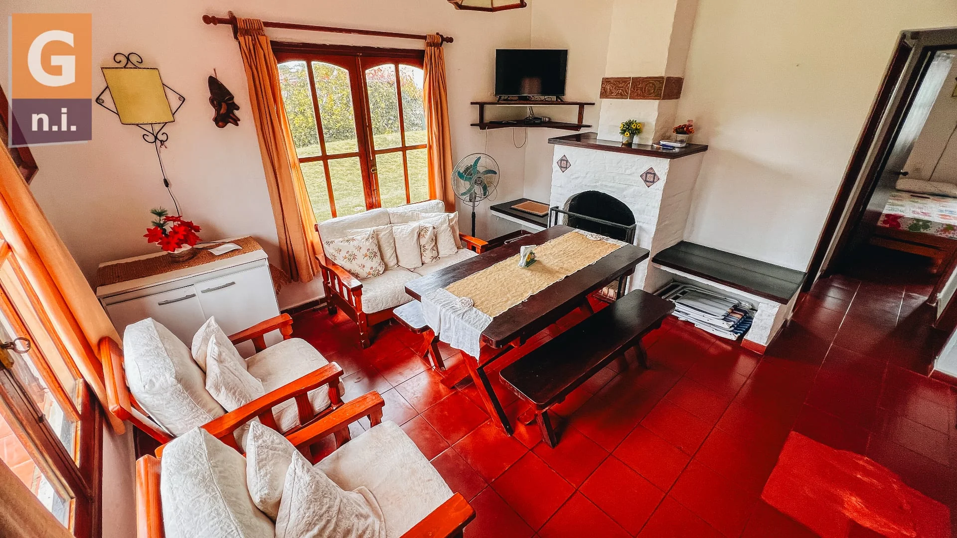 Se distribuye en living-comedor con estufa a leña, cocina separada por mesada en ladrillo y granito, un baño, dos dormitorios, parrillero techado, parque/jardín.