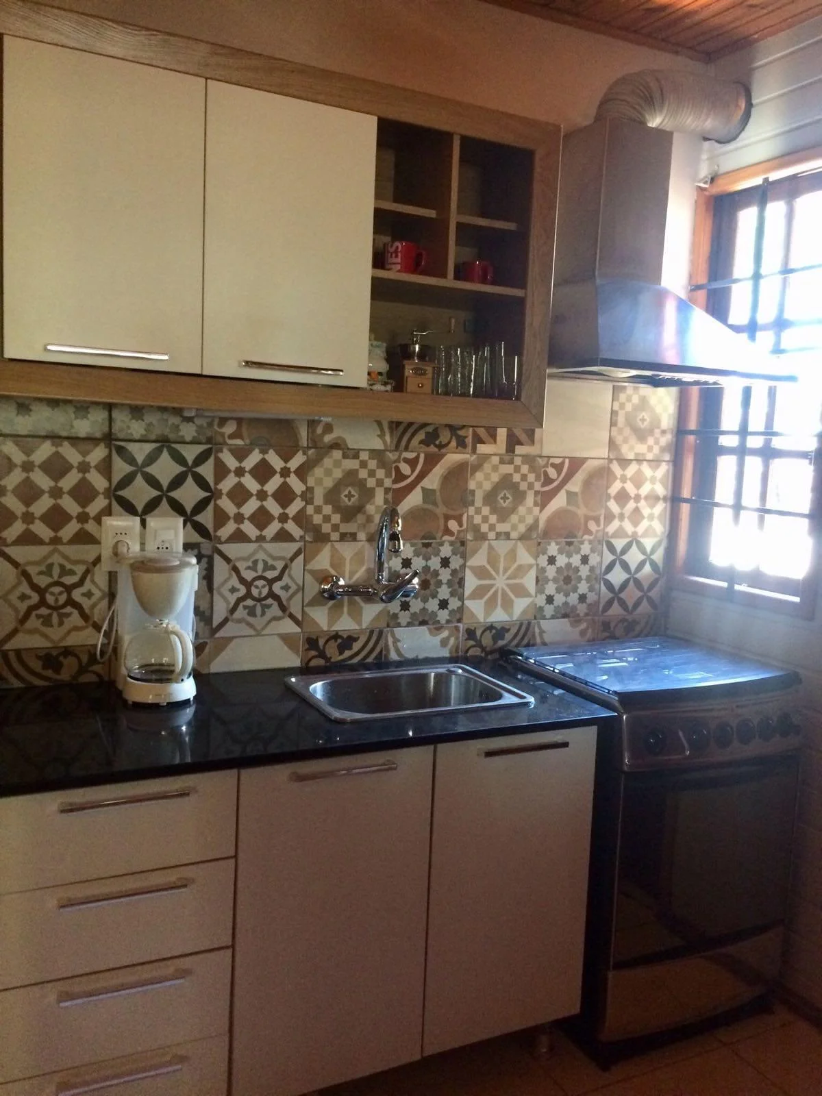 En el fondo monoambiente independiente, con su cocina y baño completo, que puede oficiar también de barbacoa cerrada.
