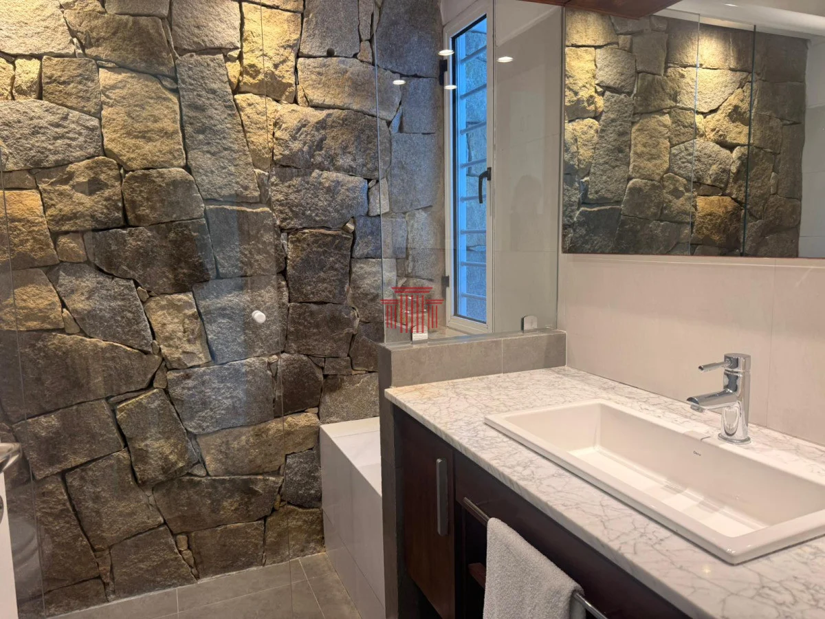 5 dormitorios. 2 suite. 5 baños , dependencia de servicio con baño , comedor diario , living-comedor con hogar , cocina completa . garaje para 5 autos .