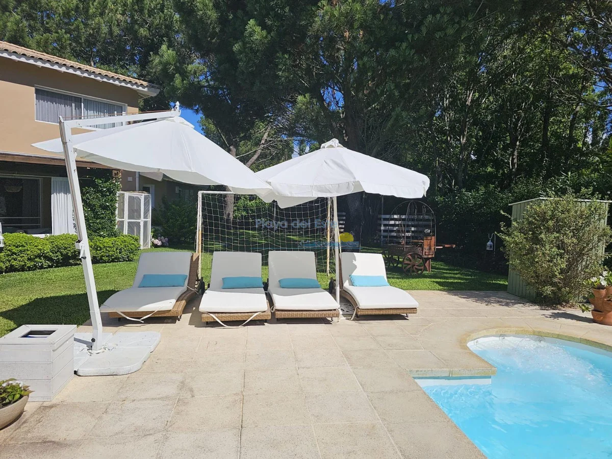 piscina de 11x4.5 climatizada y con proceso de aguas salinas, solárium reposera y juego de comedor de ratán