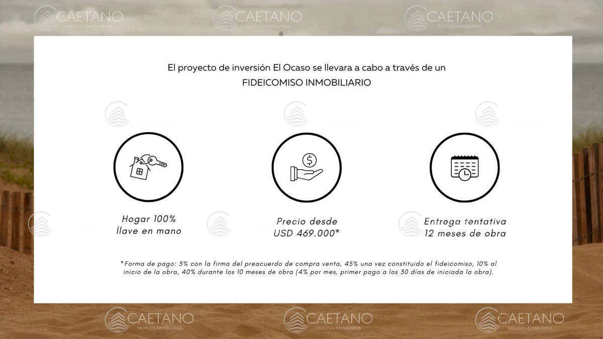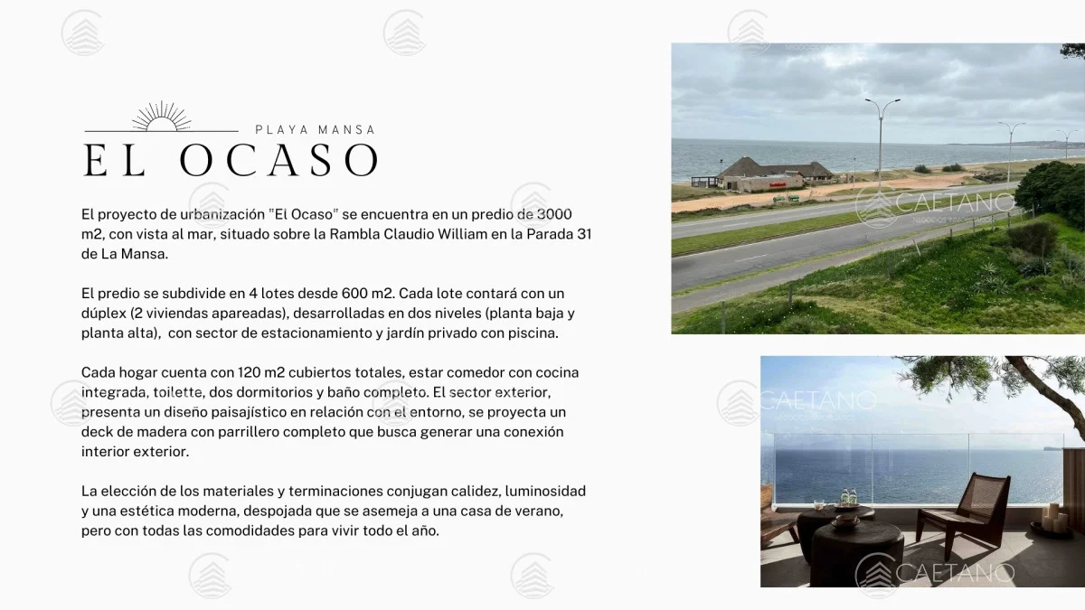 El proyecto de urbanización El Ocaso se encuentra en un predio de 3000 m2, con vista al mar, situado sobre la Rambla Claudio William en la Parada 31