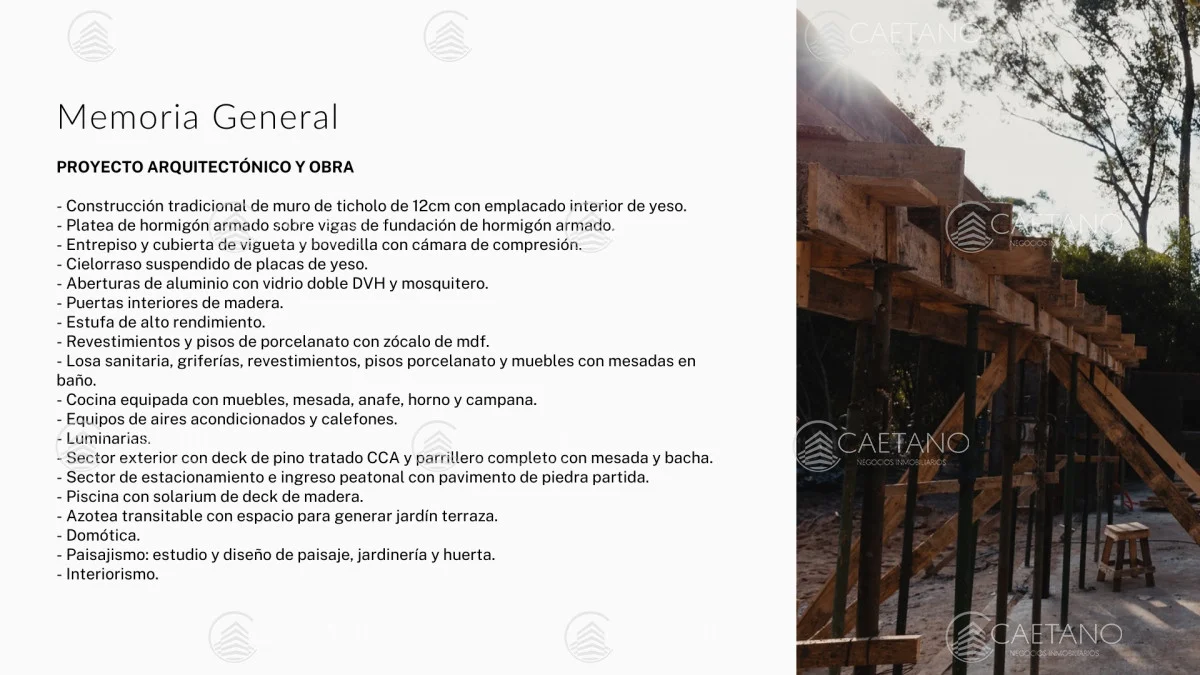 El predio se subdivide en 4 lotes desde 600 m2. Cada lote contará con un dúplex (2 viviendas apareadas), desarrolladas en dos niveles (planta baja y planta alta), con sector de estacionamiento y jardín privado con piscina.