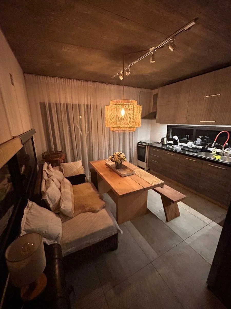 Cuenta con 2 cuartos con sus baños living con television para ver peliculas en familia y cocina con comedor.