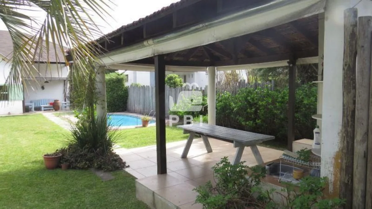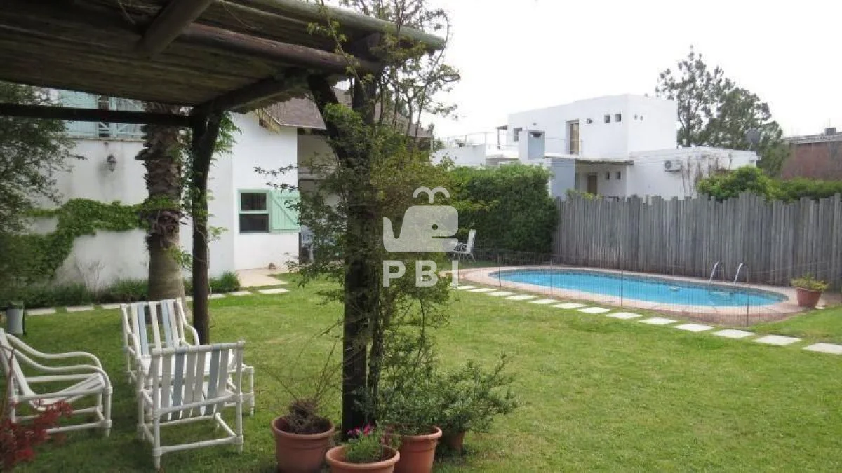 Jardín cercado con piscina y parrillero techado, ademas jardín totalmente parquizado.