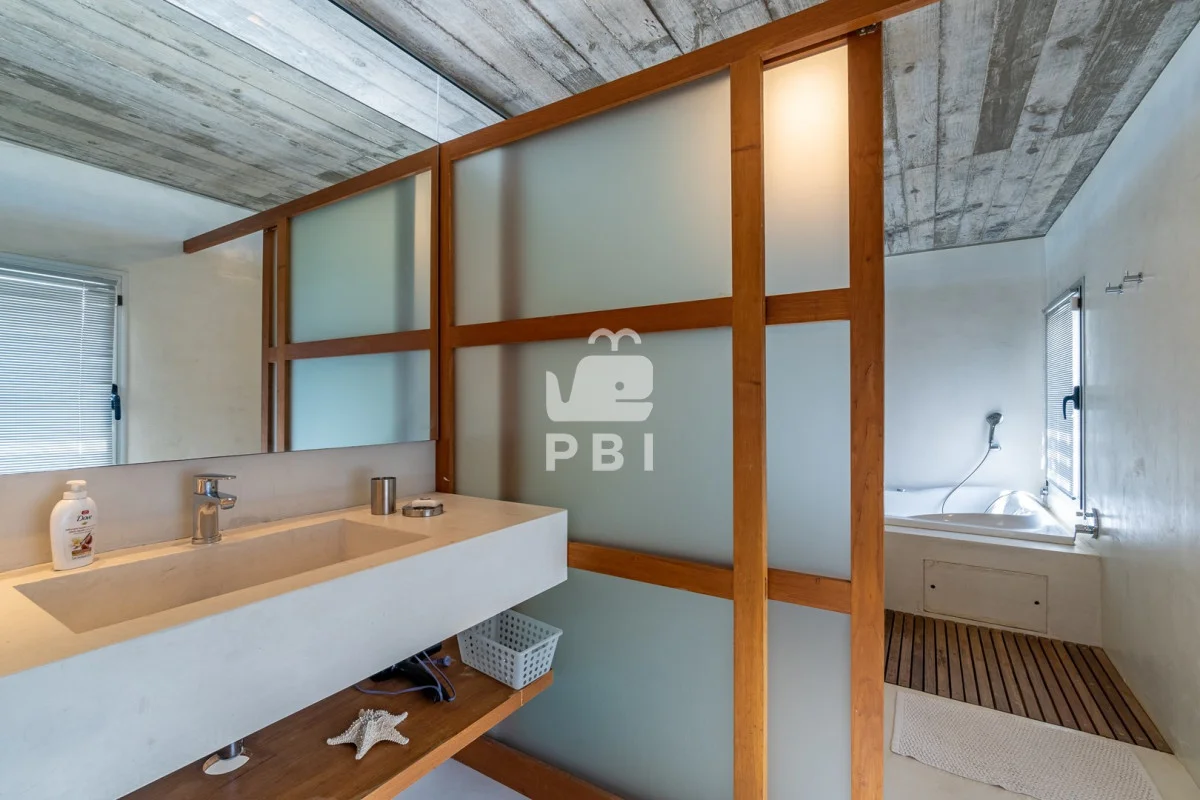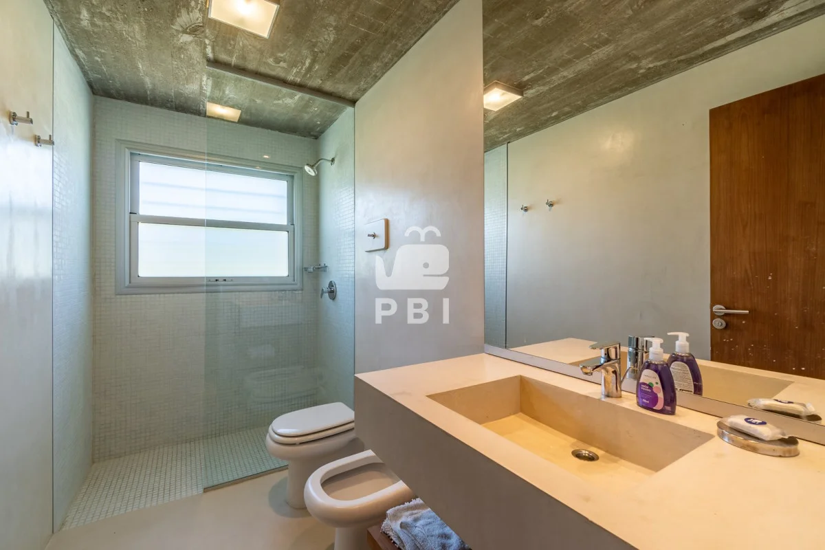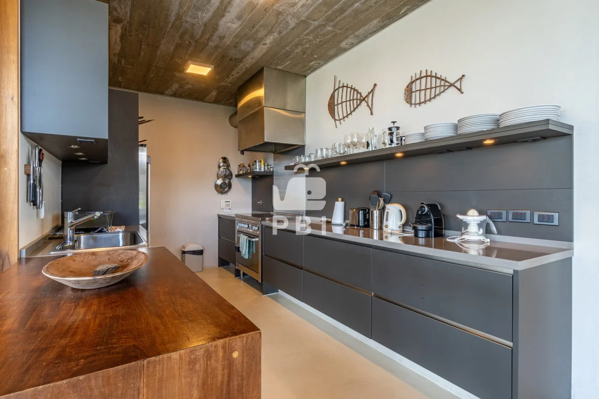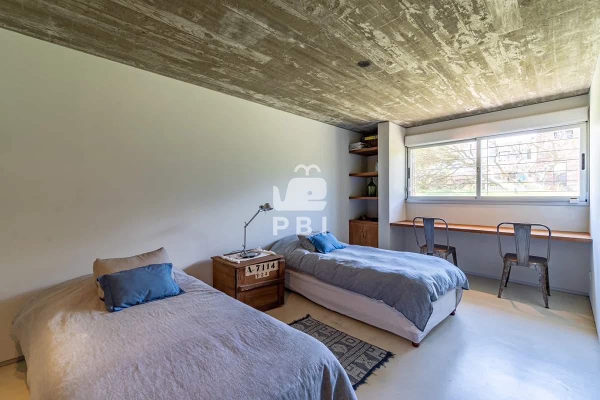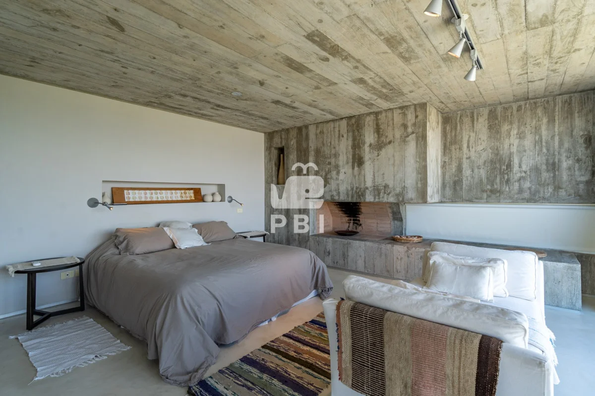 Cuenta con 4 dormitorios (2 de ellos en suite), en la planta superior está la suite principal, muy amplia, con estufa a leña, baño con jacuzzi y terraza con vista al mar.
