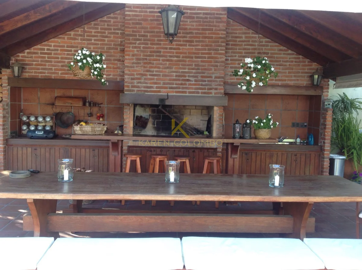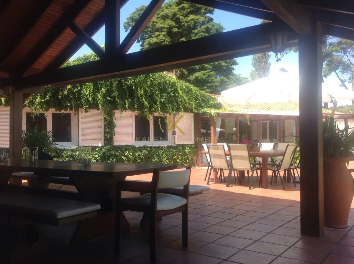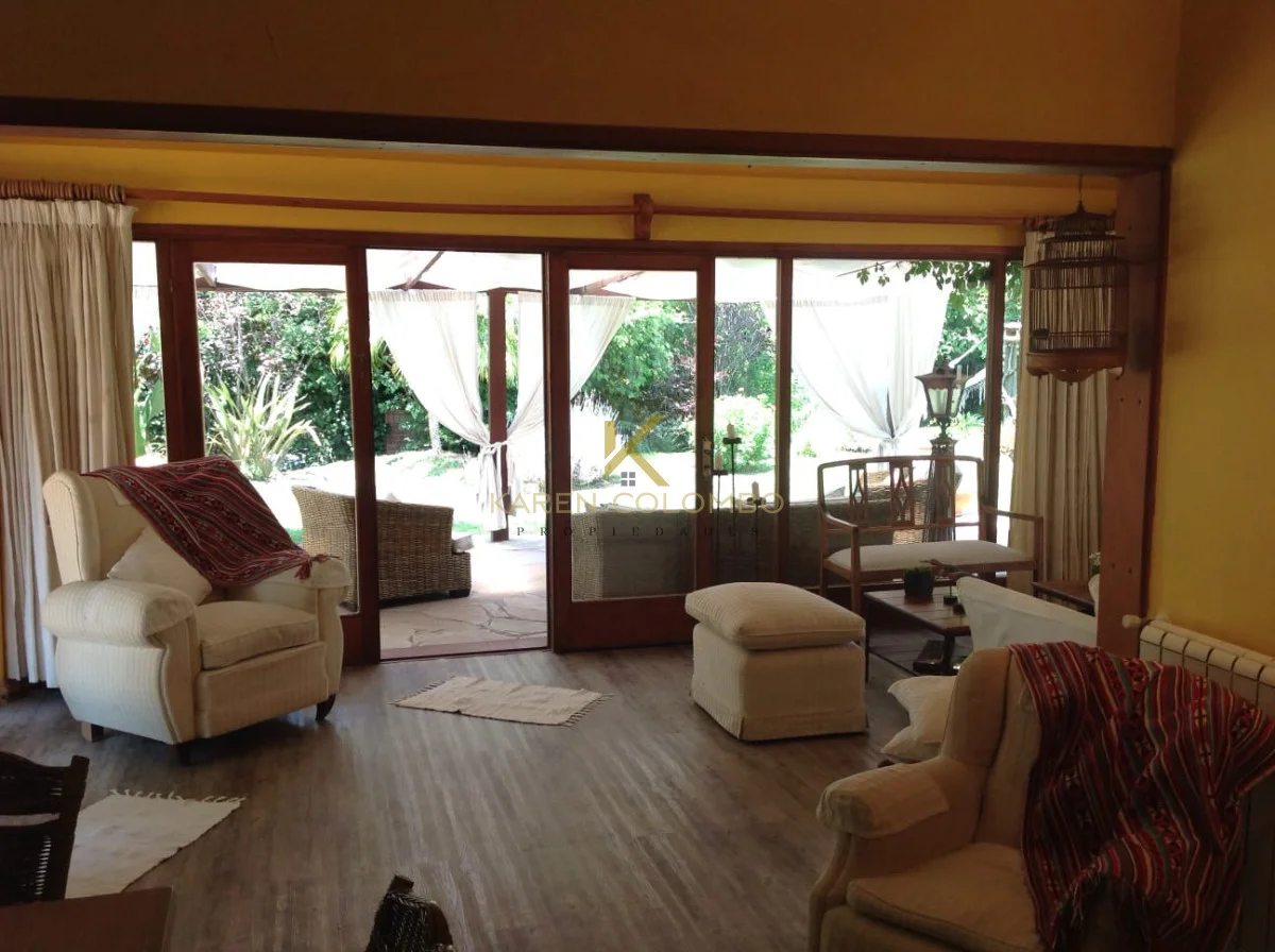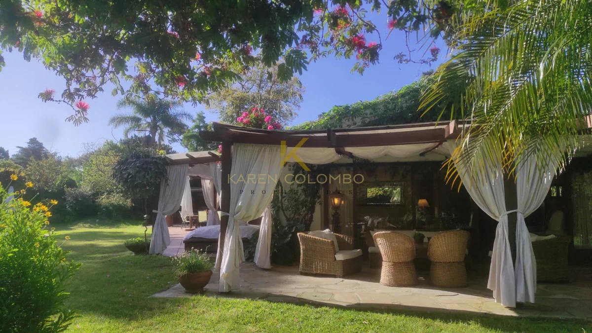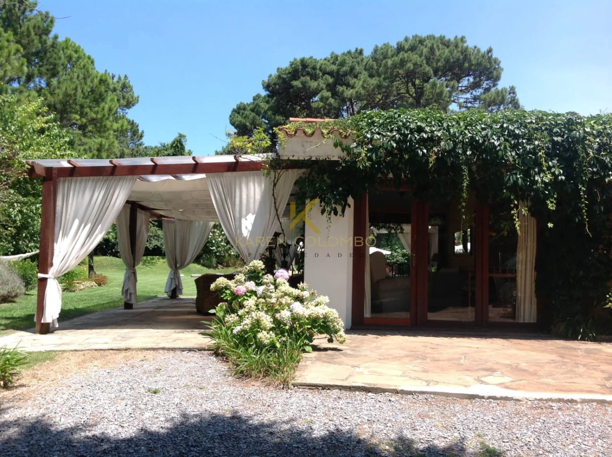 Cuenta con 4 dormitorios, dependencia de servicio, y amplios ambientes ideales para vivir o vacacionar en familia. El gran parque arbolado rodea una hermosa piscina, un sector de fogón, y una casita de juguetes que encanta a los más pequeños.