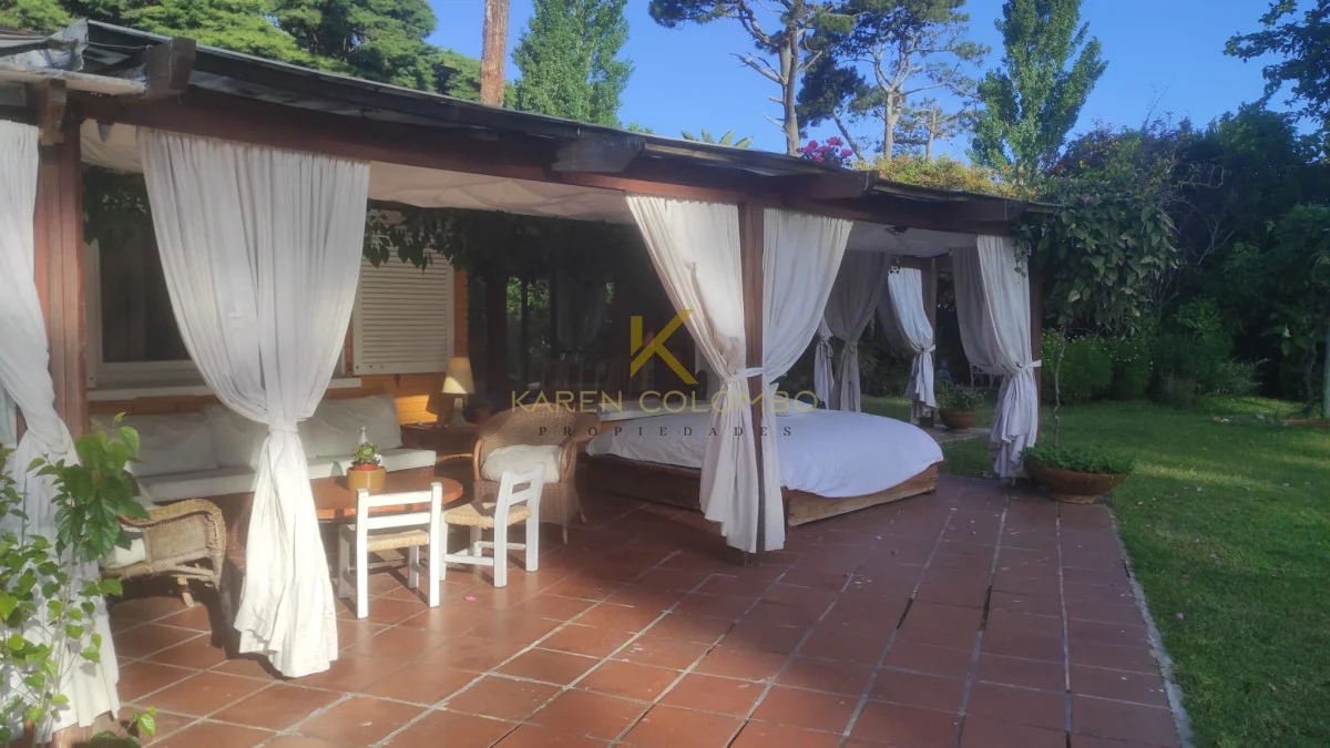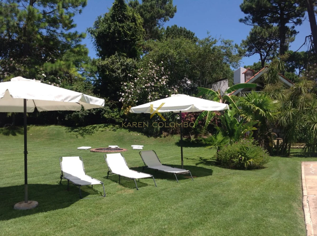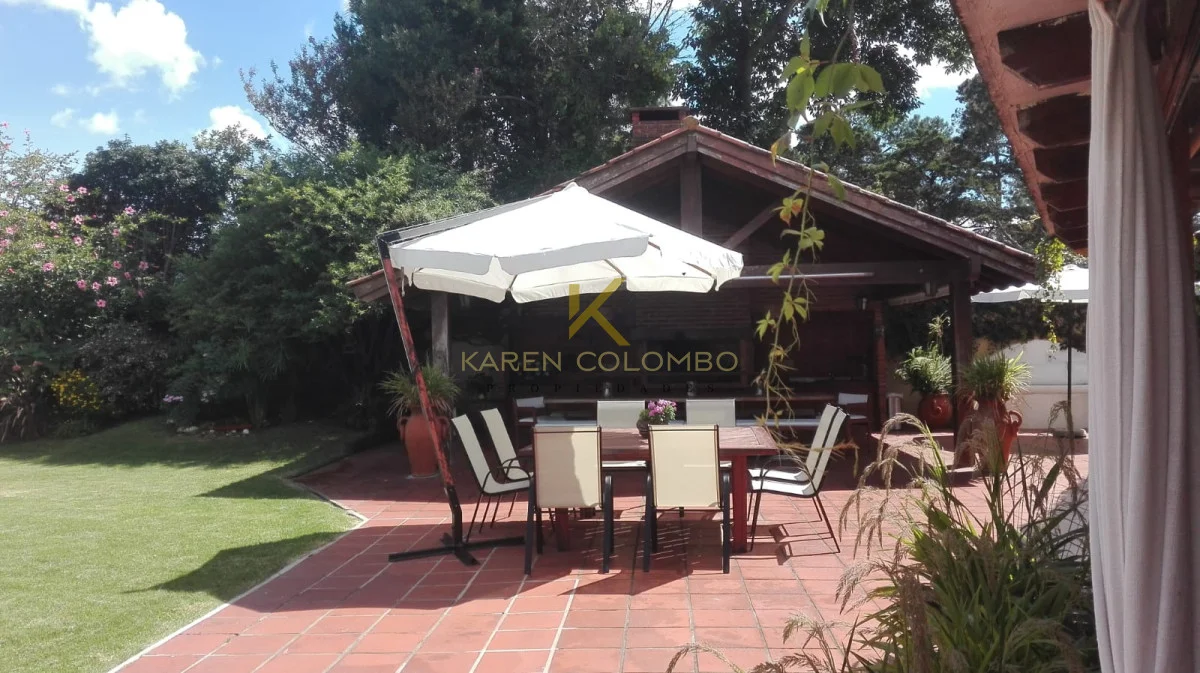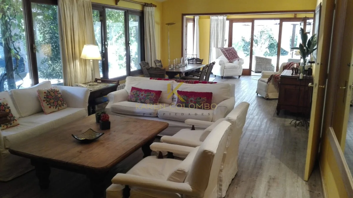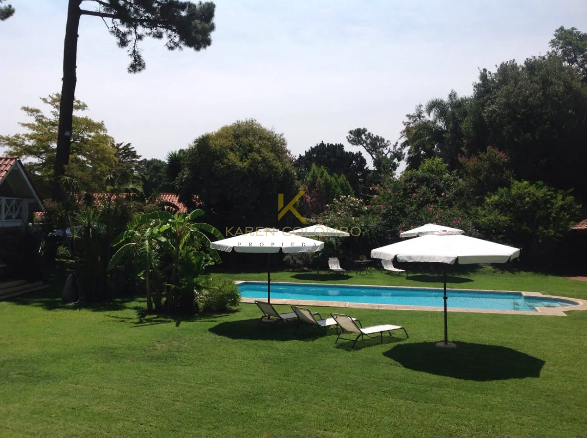 Cuenta con 4 dormitorios, dependencia de servicio, y amplios ambientes ideales para vivir o vacacionar en familia. El gran parque arbolado rodea una hermosa piscina, un sector de fogón, y una casita de juguetes que encanta a los más pequeños.