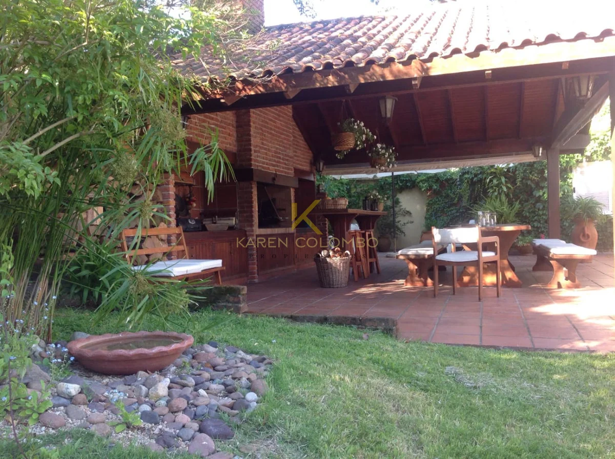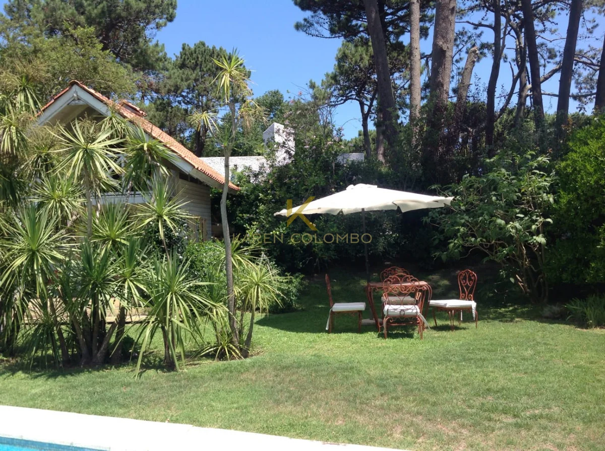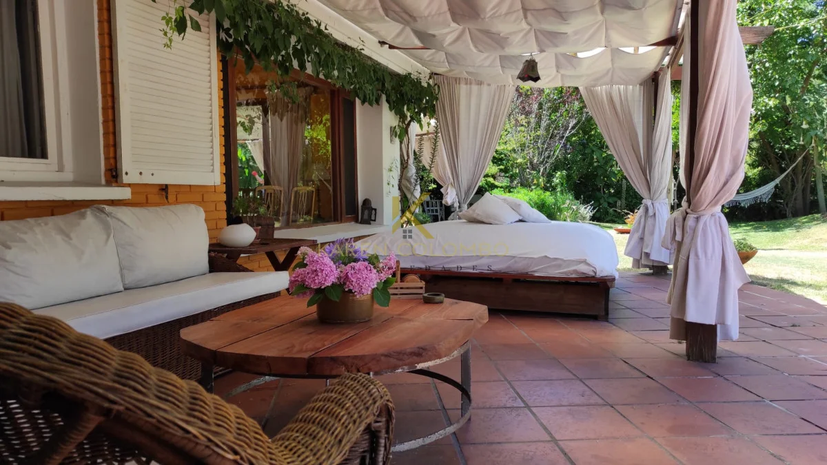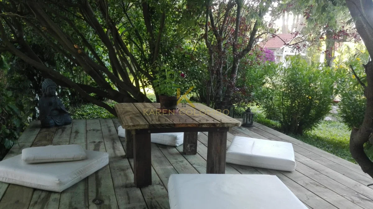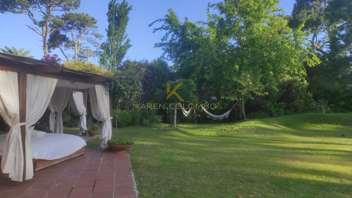 Cuenta con 4 dormitorios, dependencia de servicio, y amplios ambientes ideales para vivir o vacacionar en familia. El gran parque arbolado rodea una hermosa piscina, un sector de fogón, y una casita de juguetes que encanta a los más pequeños.