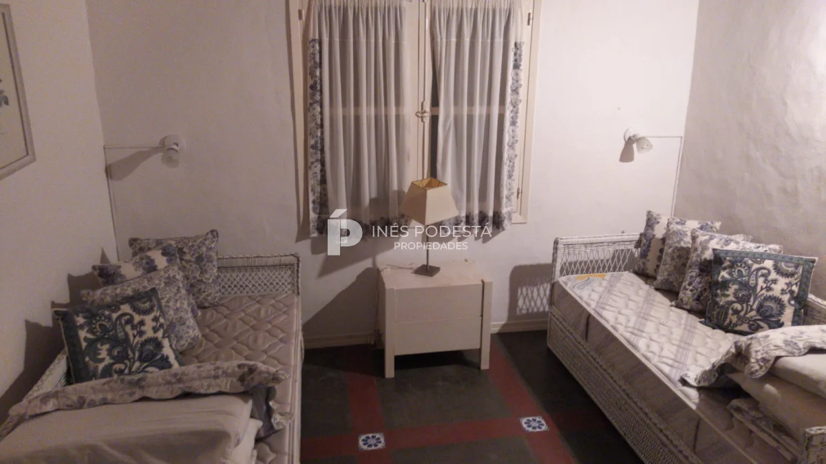 Casa en dos plantas, 3 dormitorios y 3 baños (1 suite) mas dormitorio de servicio. Galería con parrillero amplia, living comedor, cocina, lavadero, gran jardín con piscina con solárium. Inés Podestá Propiedades Inmobiliaria Punta del Este Referencia Interna : Tera-5121