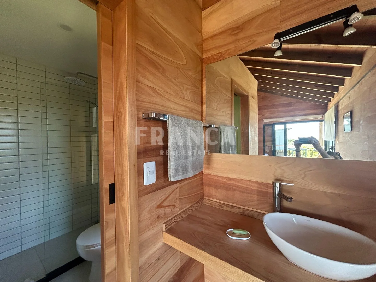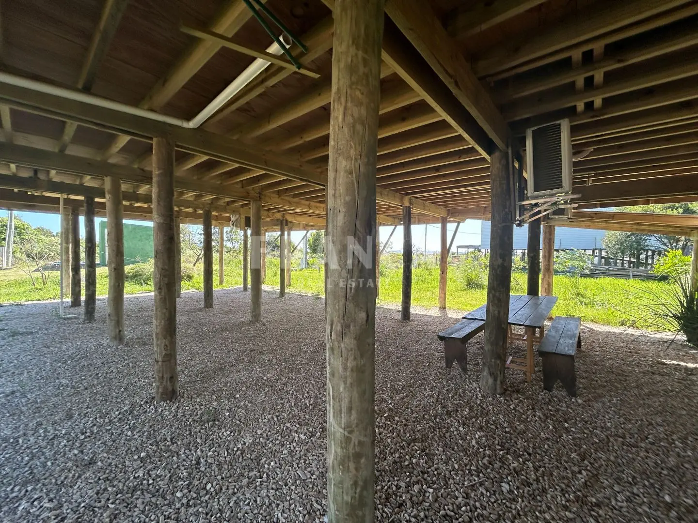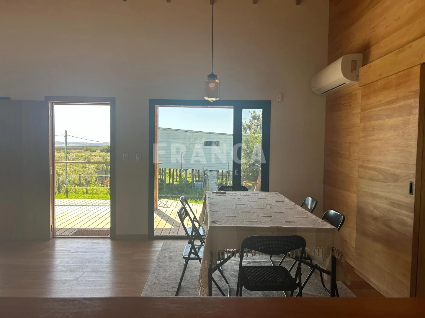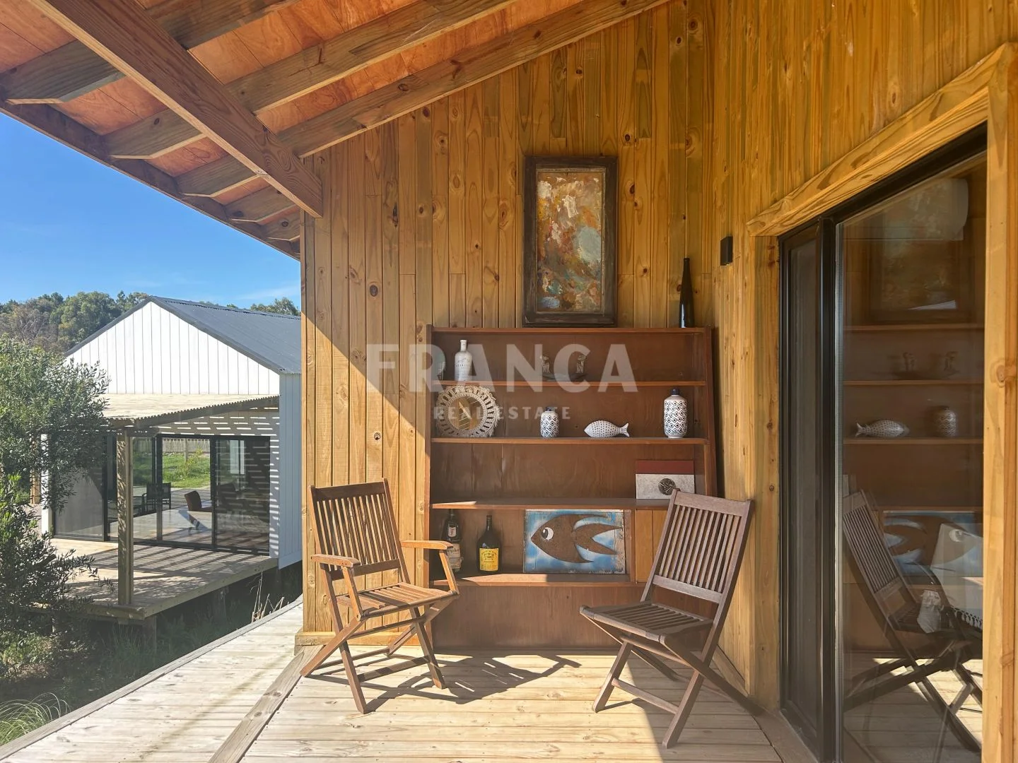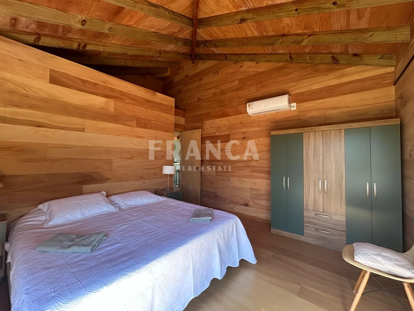 Construida con sistema woodframe y revestimiento exterior en pino tratado, combina eficiencia, calidez y estilo natural.