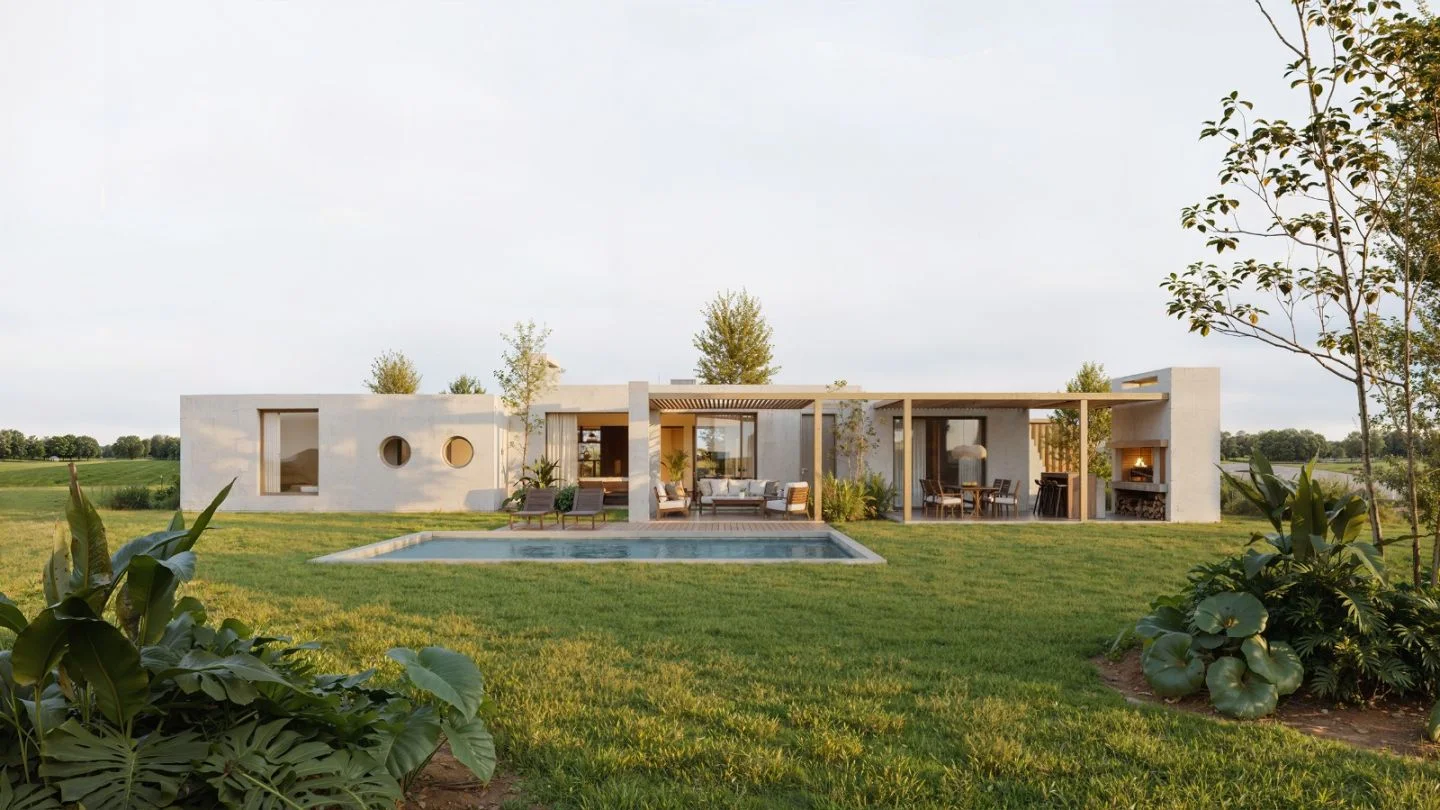 Elegante y sofisticada residencia en construcción en el exclusivo barrio privado Pueblo Mío, con diseño contemporáneo, materiales de primera calidad y paisajismo integral incluido.