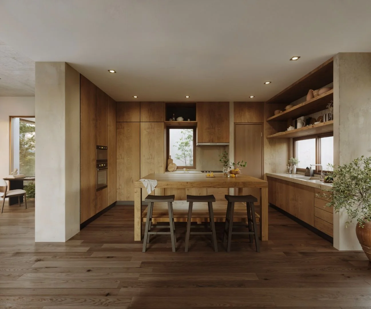 La orientación prioriza el asoleamiento: dormitorios hacia el oeste y áreas sociales hacia el norte y oeste, garantizando luz natural durante todo el día.