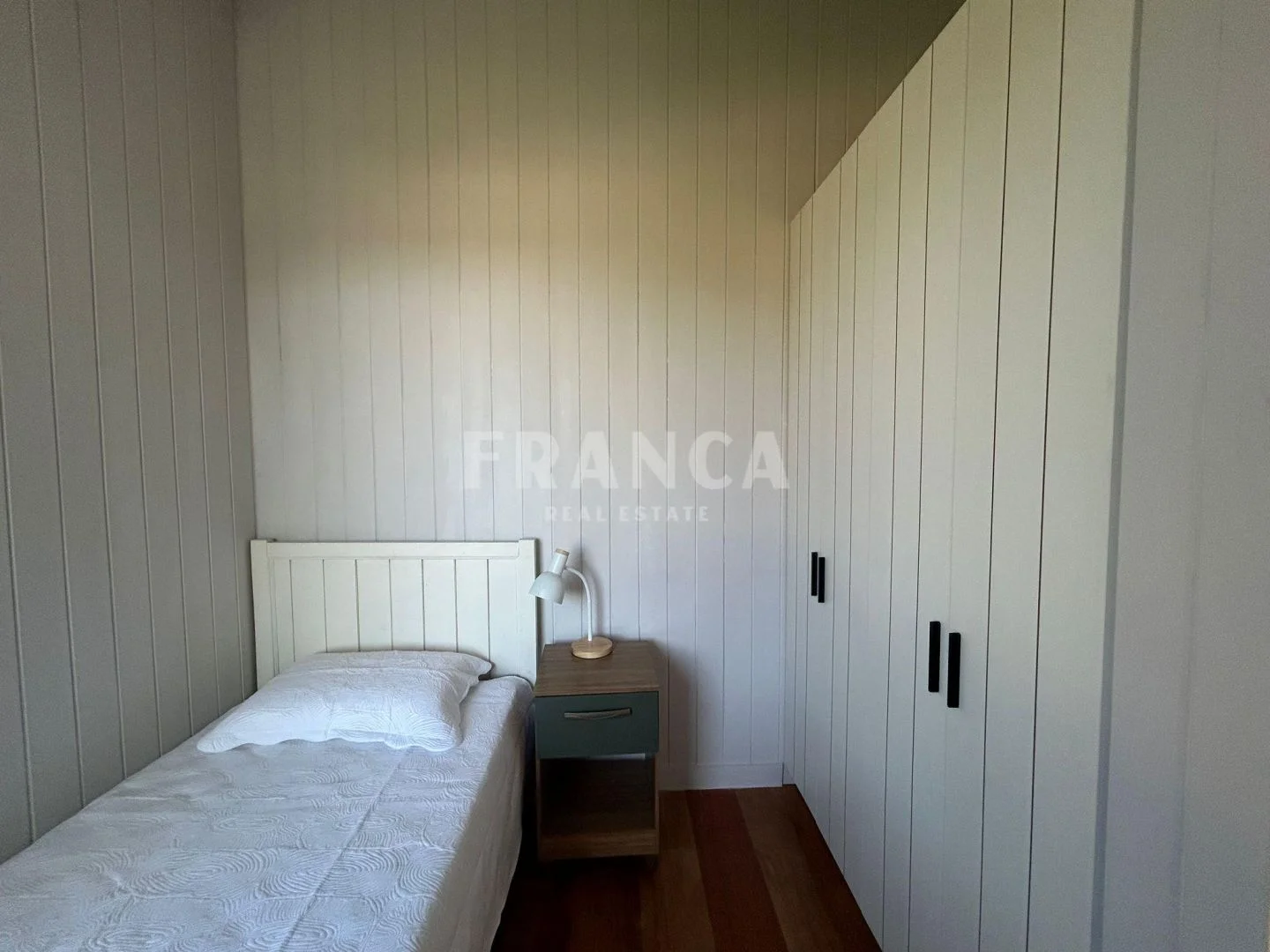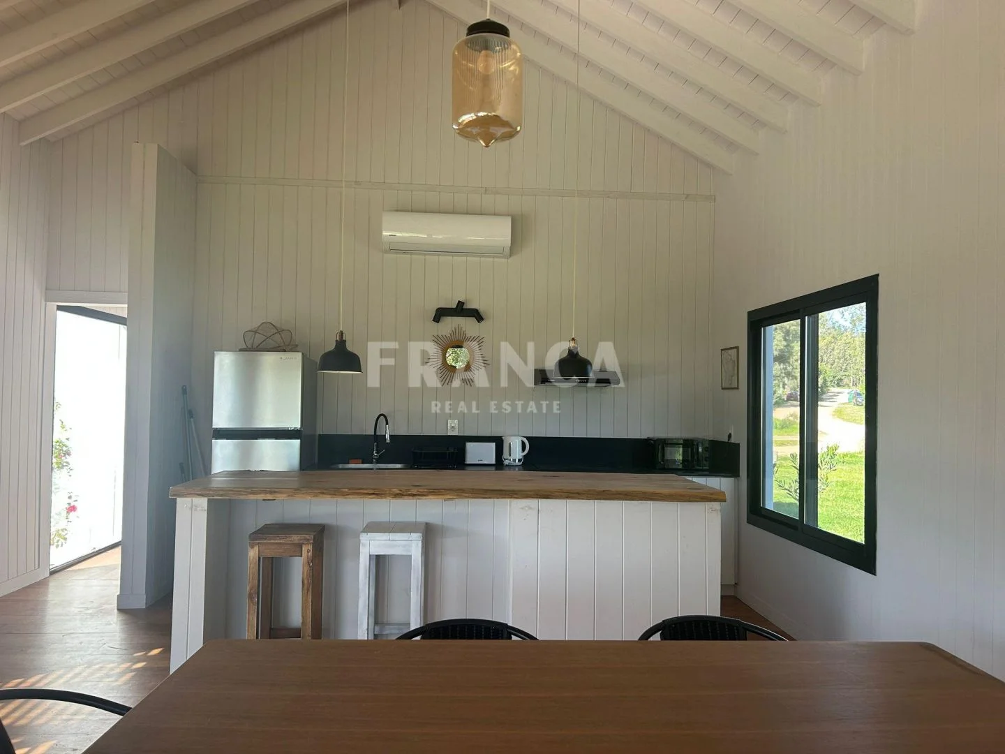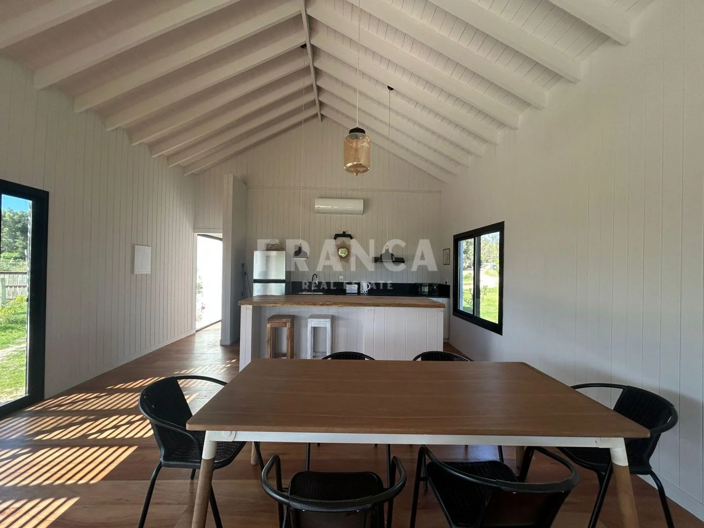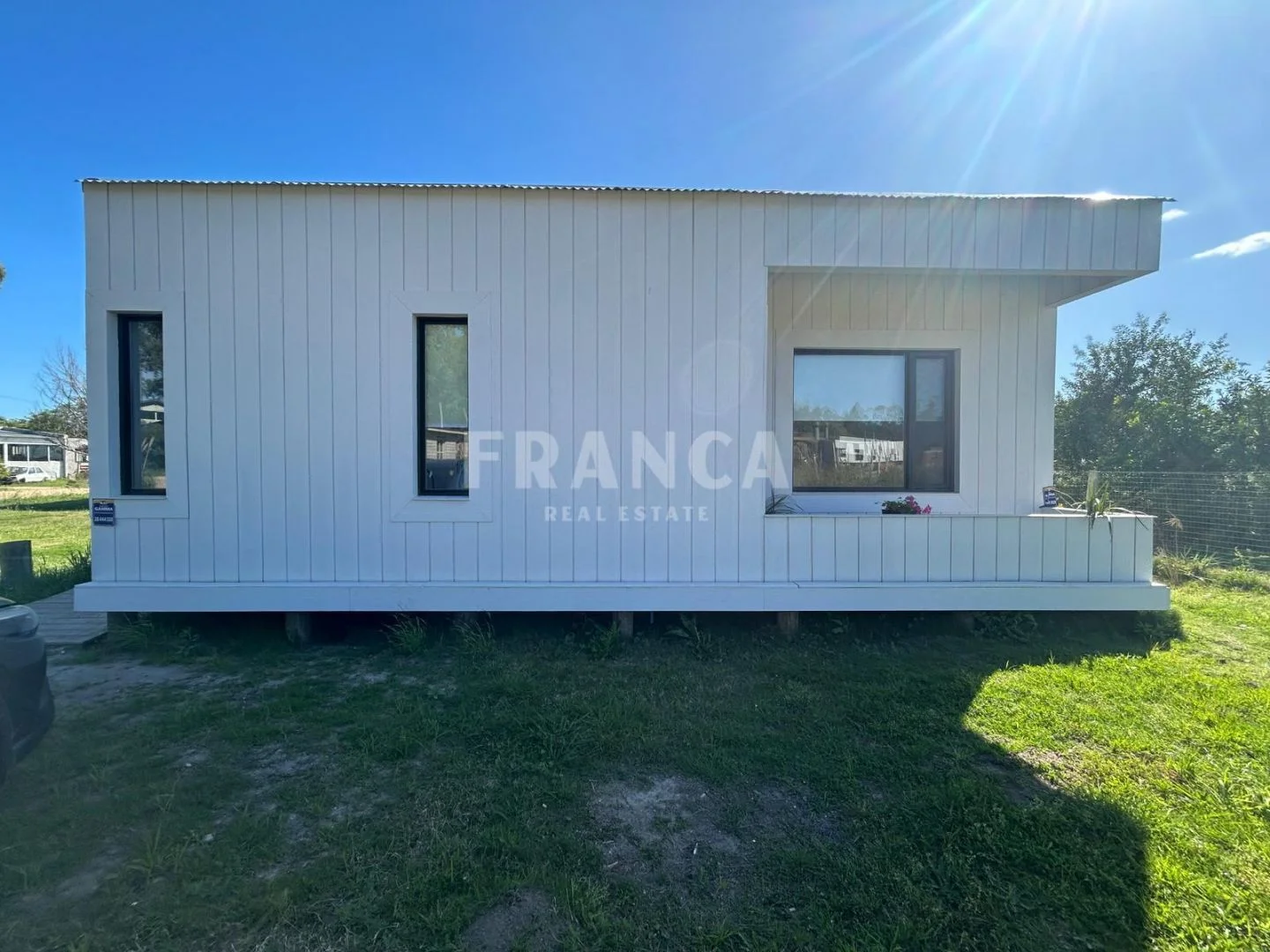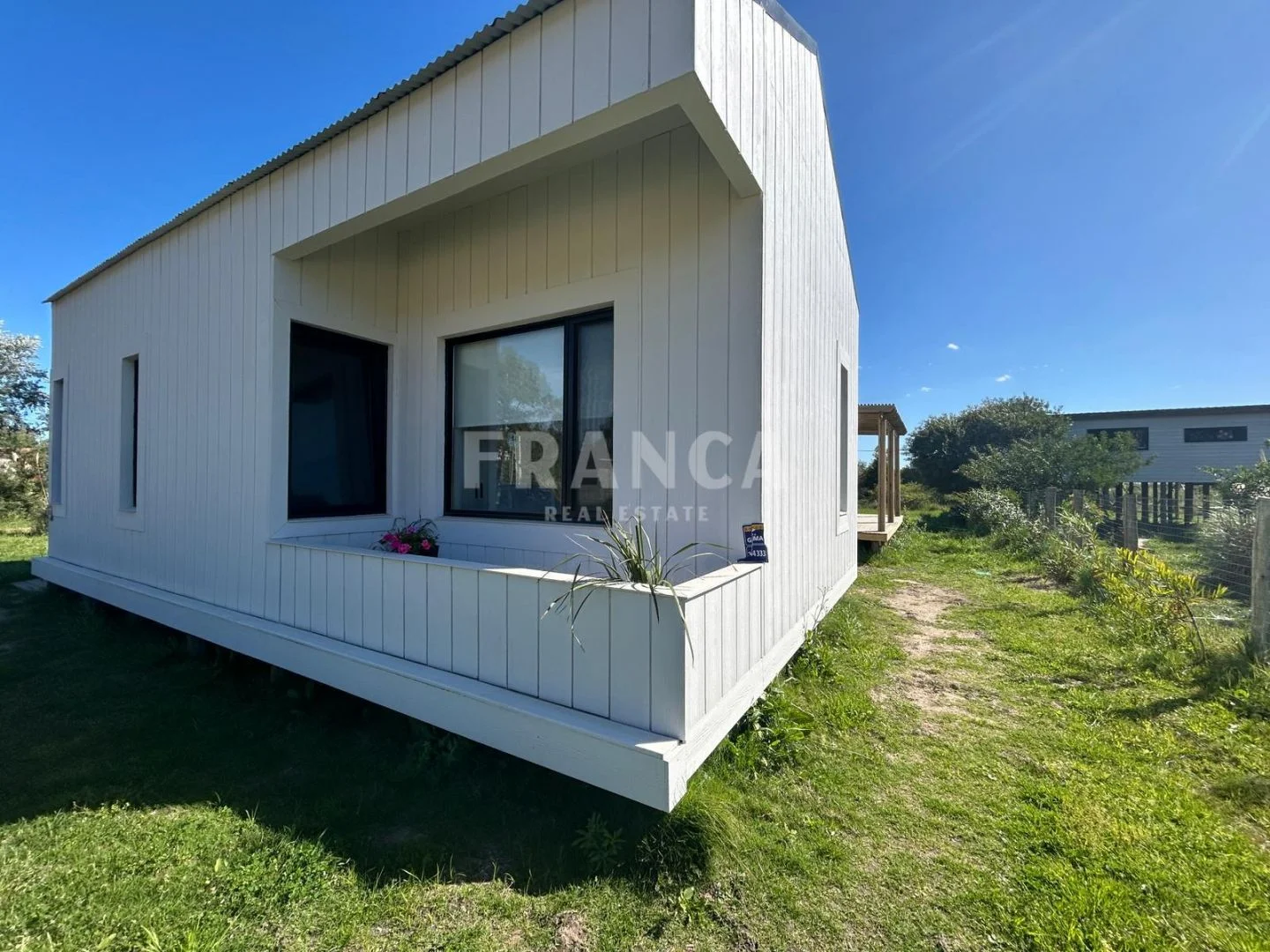 En el interior cuenta con una suite principal, un dormitorio amplio, un cuarto adicional más pequeño y un baño completo que asiste a ambos. El living, comedor y cocina se integran en un mismo ambiente generando un espacio luminoso y funcional.