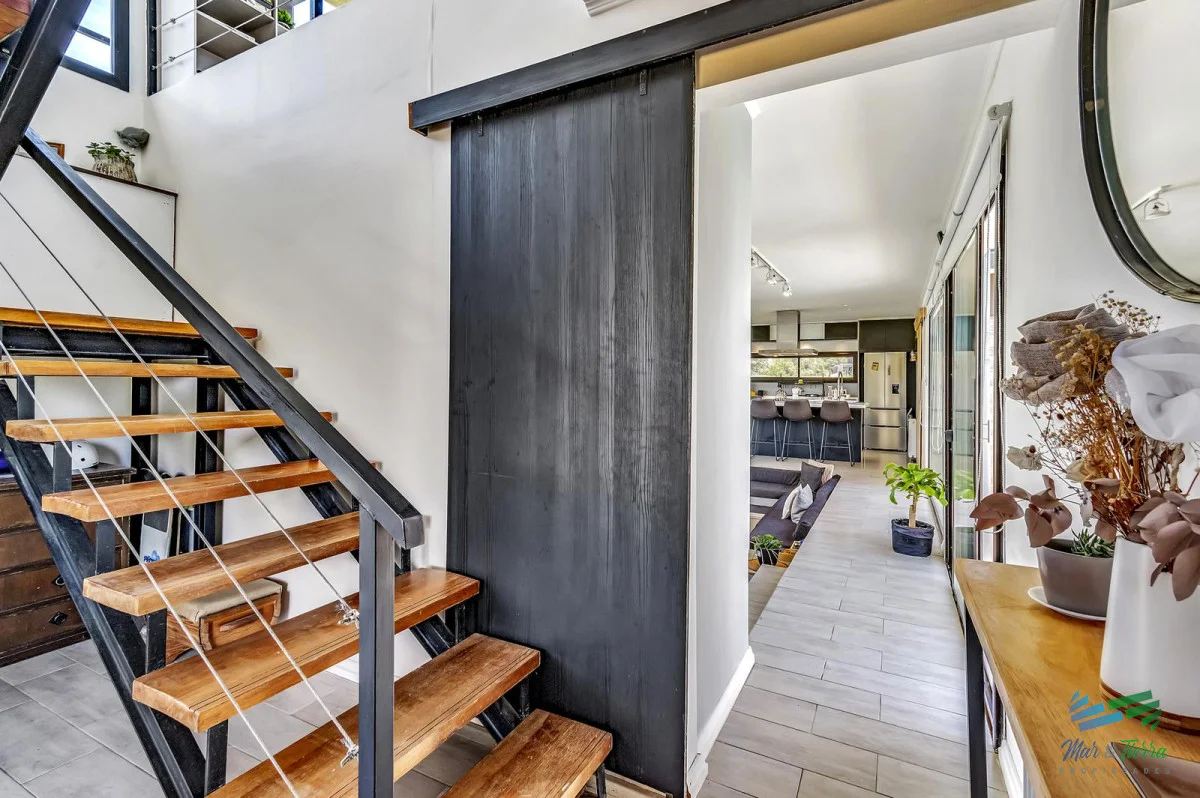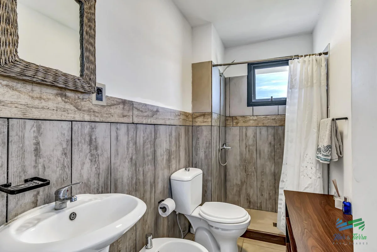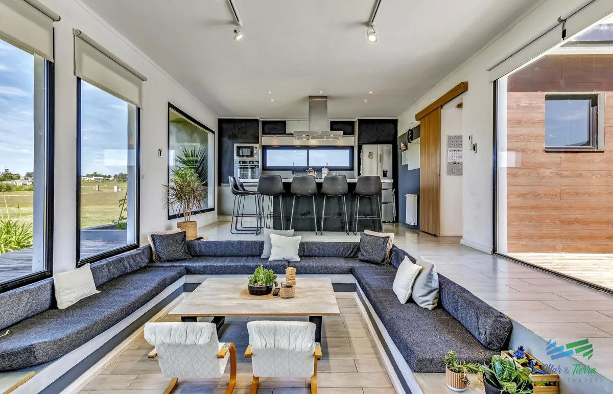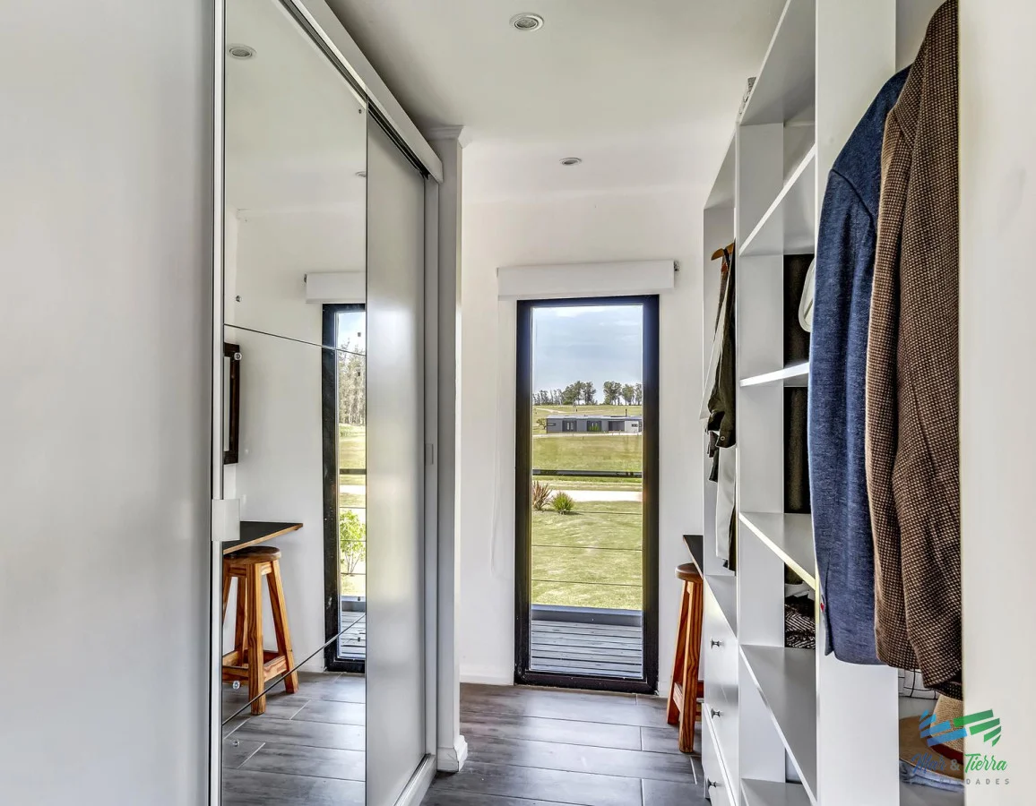 En un predio de 5.000 m y 400 m2 construidos, se distribuye en dos sectores. El principal dispone en planta baja un amplio living integrado a la cocina, 4 dormitorios, uno de ellos en suite, y en planta alta office con terraza.