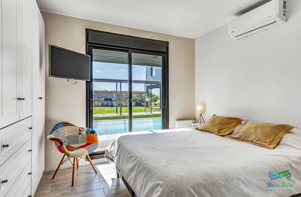 El sector secundario cuenta con gran parrillero cerrado y dos dormitorios con baño. Cuenta con aire acondicionado en todos y radiadores a gas en la totalidad de los ambientes, ventanas con vidrios dvh, cochera para 3 autos y piscina.