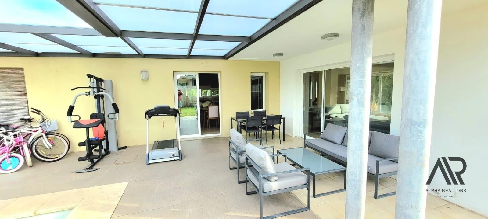 La propiedad, construida hace 15 años, se encuentra en condiciones óptimas y cuenta con una variedad de características que la hacen destacar. Entre ellas se incluyen aire acondicionado, calefacción, cámaras CCTV, alarma y un sistema de seguridad completo. Además, el amplio espacio exterior cuenta con un hermoso jardín, una terraza, una piscina y un área de juegos infantiles, perfectos para disfrutar en familia. La casa también ofrece 2 cocheras semicubiertas, garantizando comodidad y seguridad para sus vehículos.