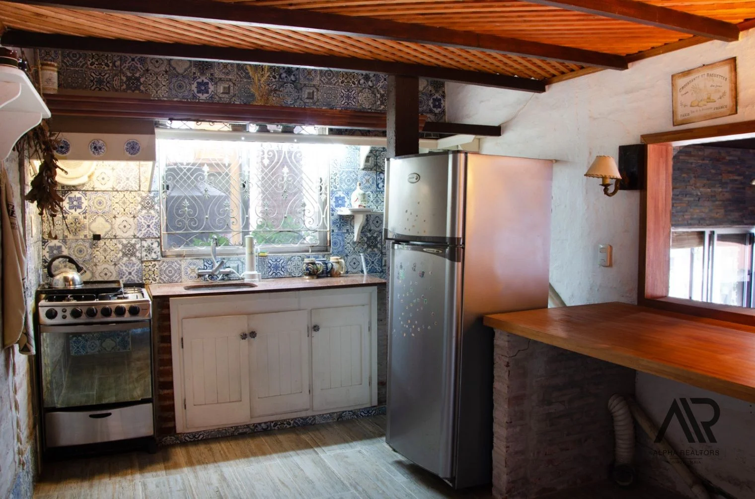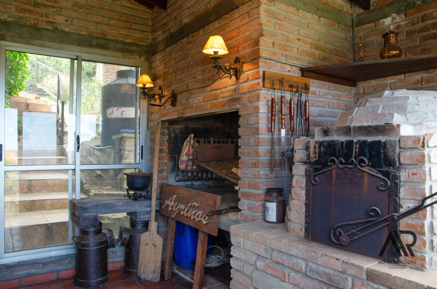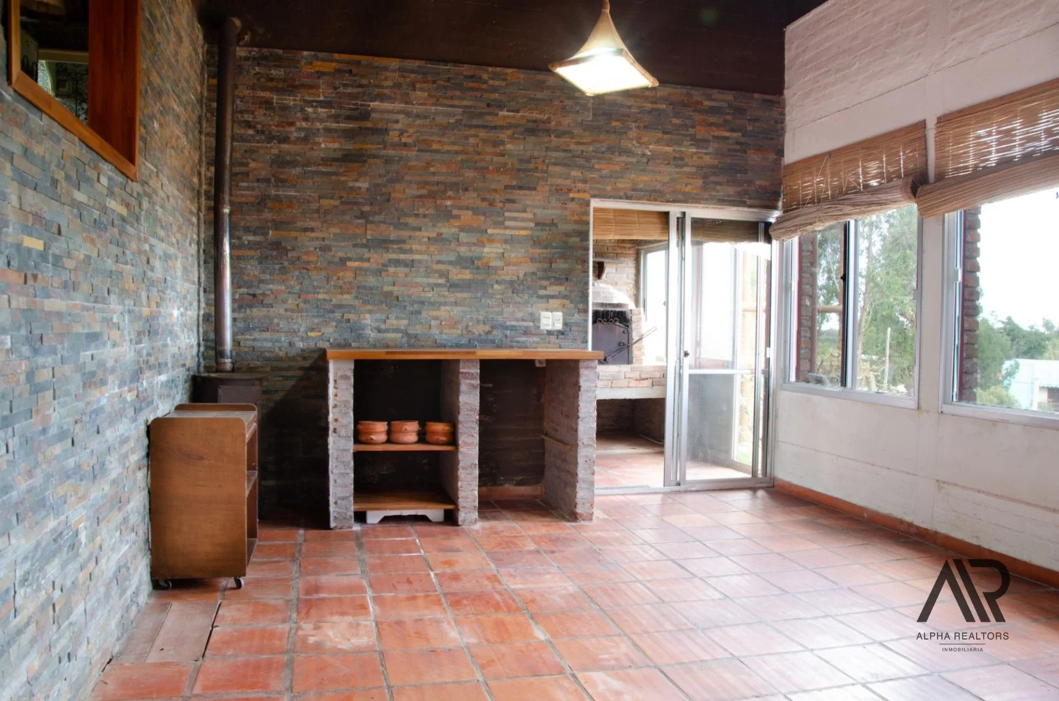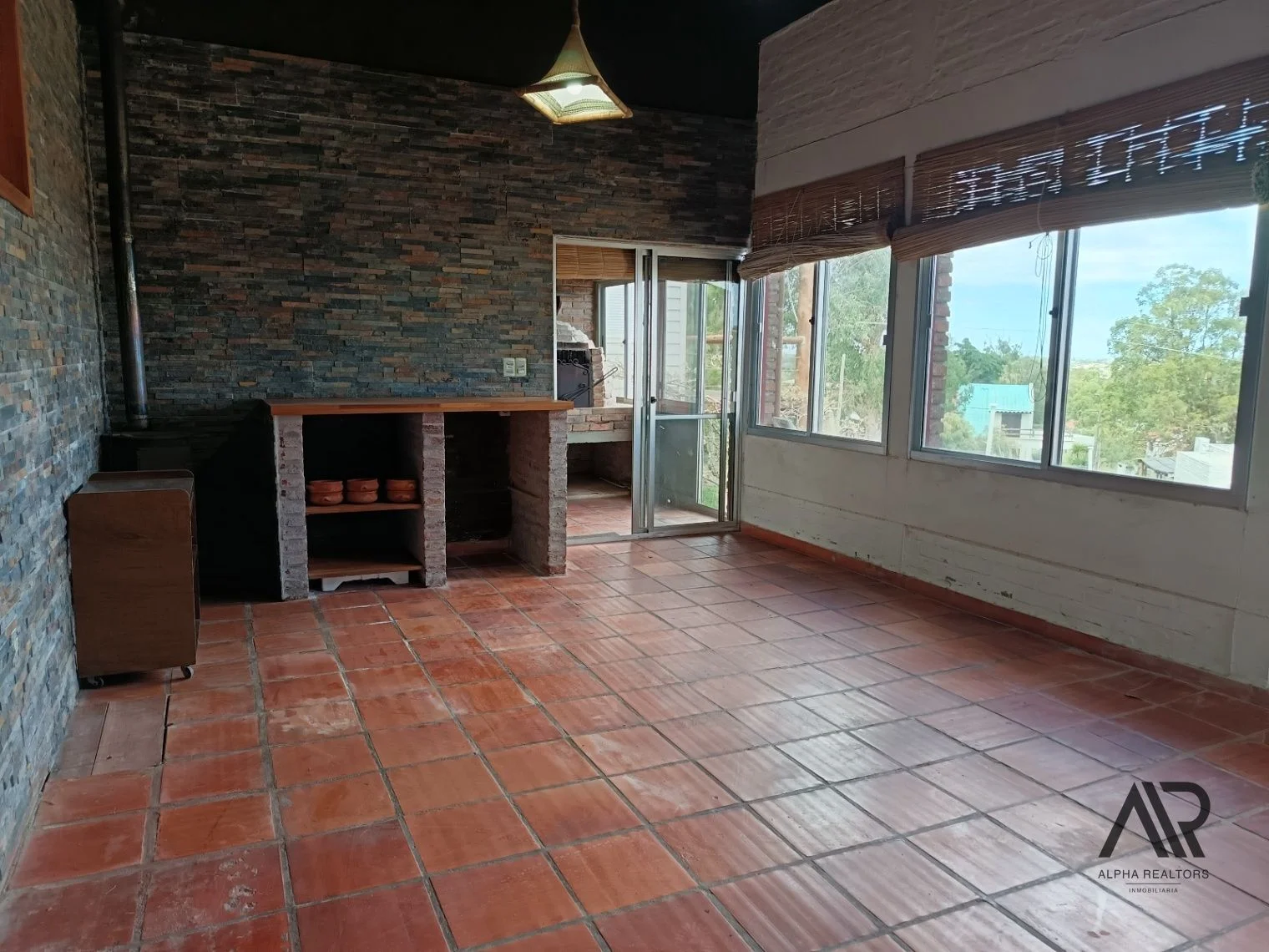 Garaje + Monoambiente al fondo con cocina, estufa a leña y baño completo.