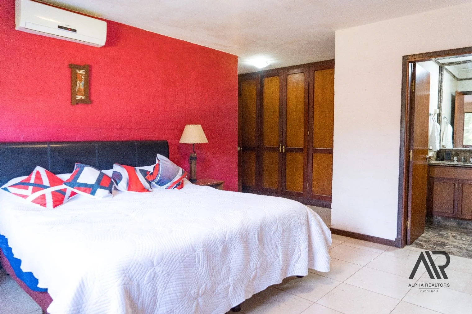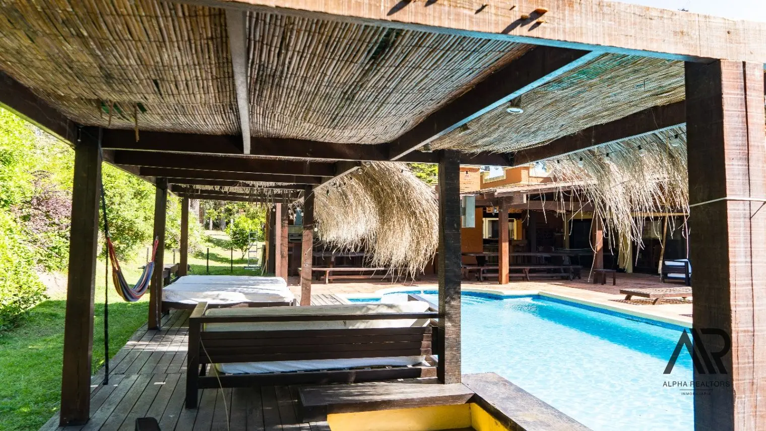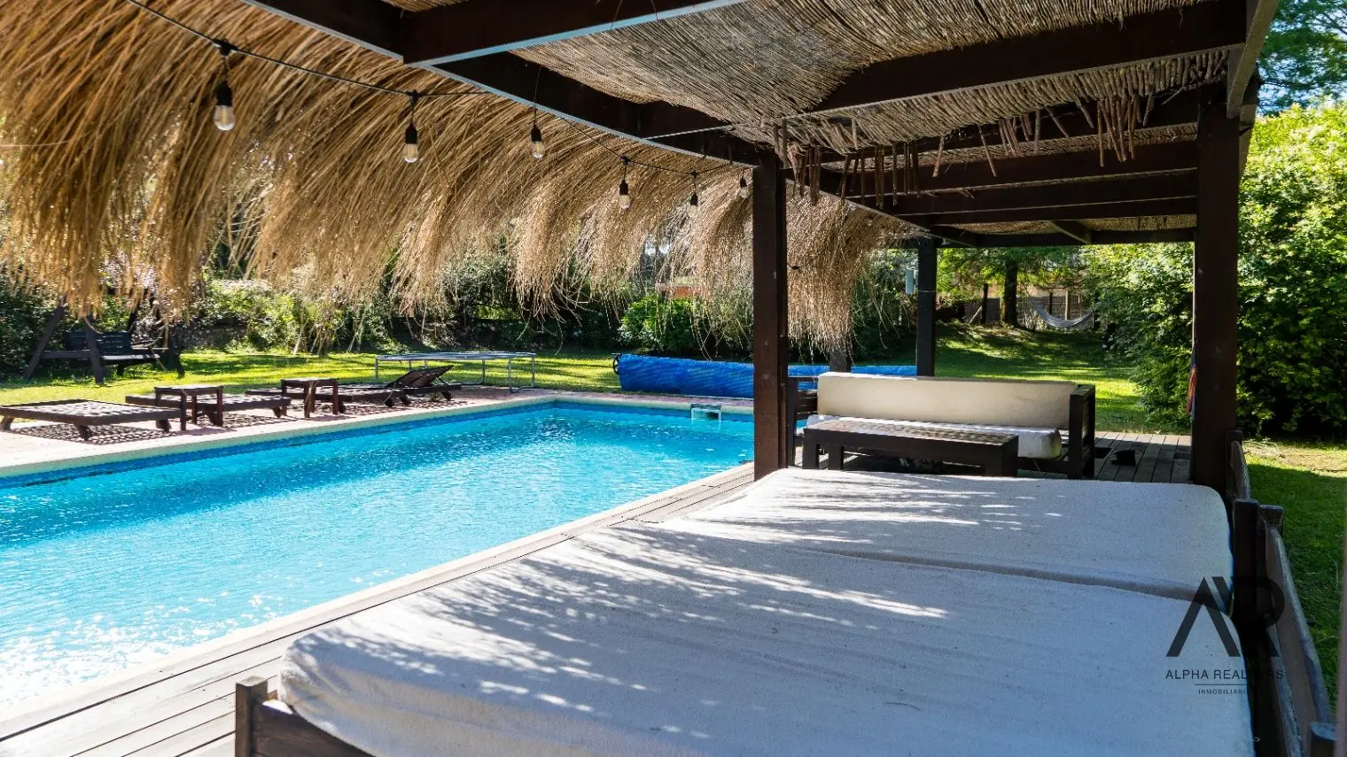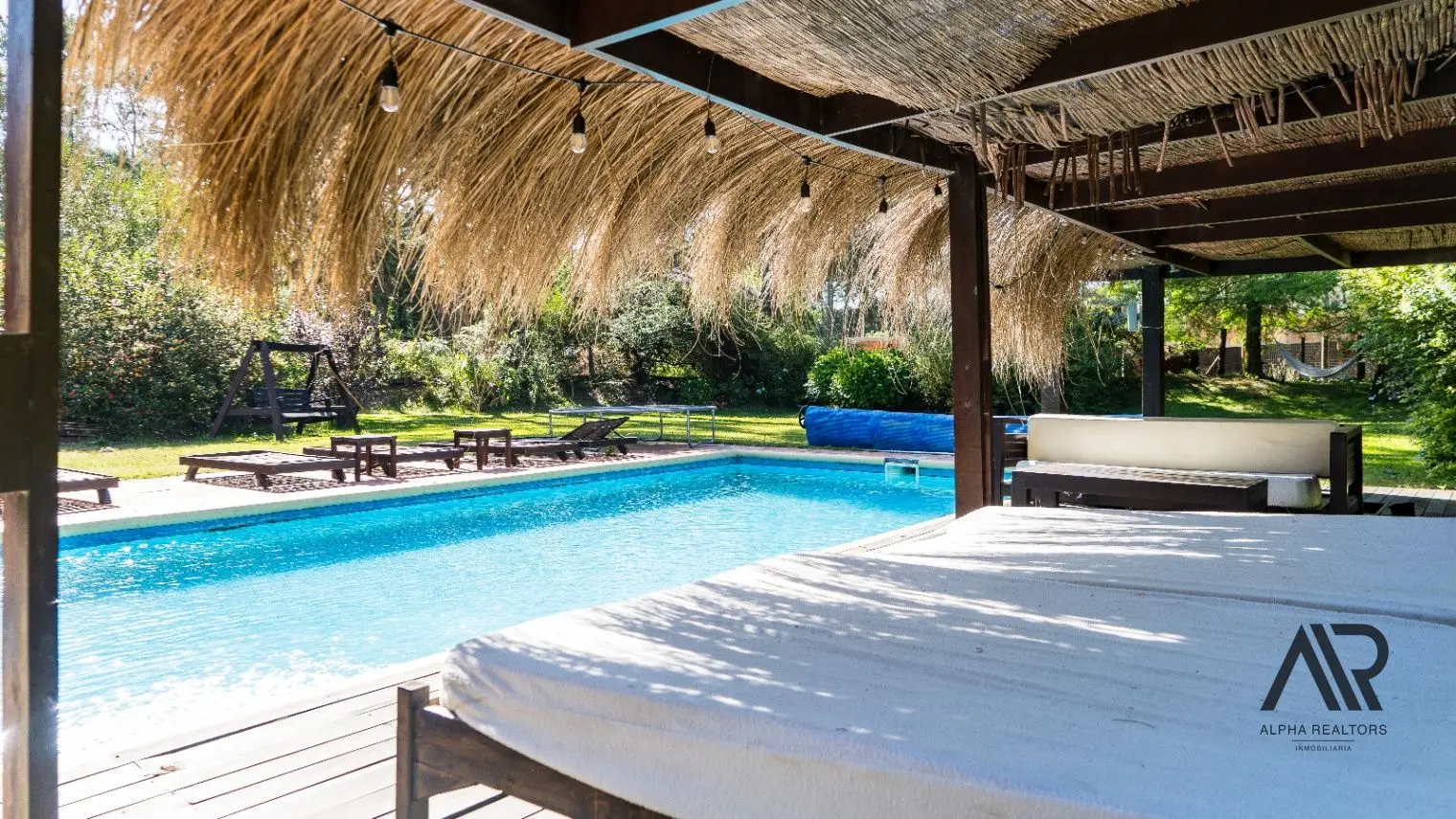 La propiedad está equipada con todas las comodidades modernas, incluyendo aire acondicionado, WiFi, cable TV y un sistema de alarma. Además, cuenta con servicios básicos como agua corriente, teléfono y luz. Los exteriores son un verdadero oasis, con un hermoso jardín, un área verde, una piscina refrescante, un jacuzzi para relajarse y una parrilla ideal para disfrutar de asados en familia. La casa también dispone de un patio perfecto para momentos de esparcimiento. Para mayor conveniencia, incluye 2 cocheras cubiertas y está ubicada en una zona muy tranquila y segura
