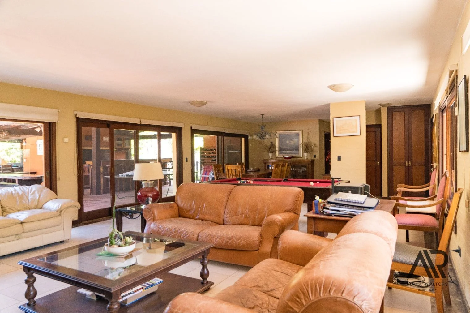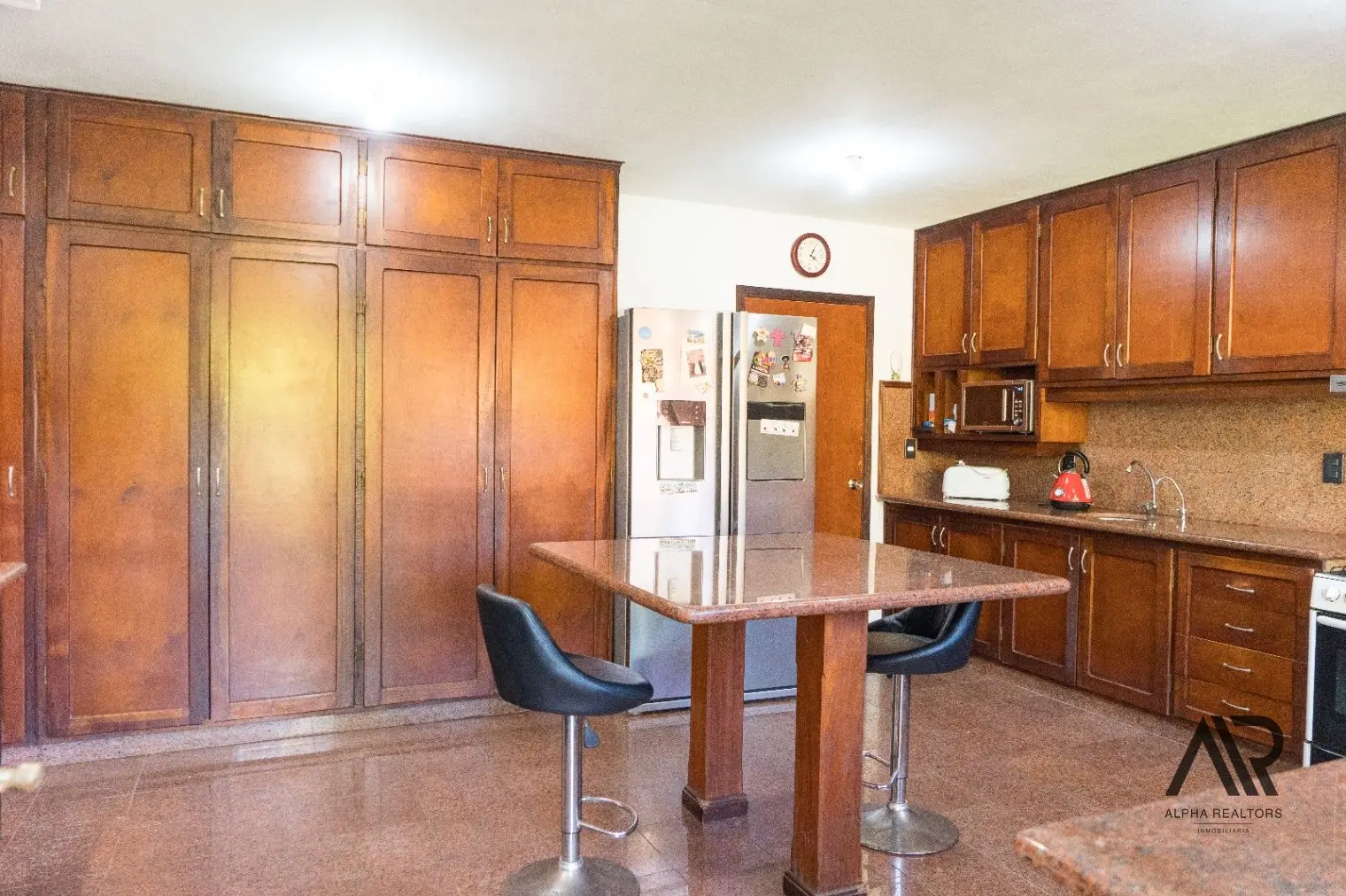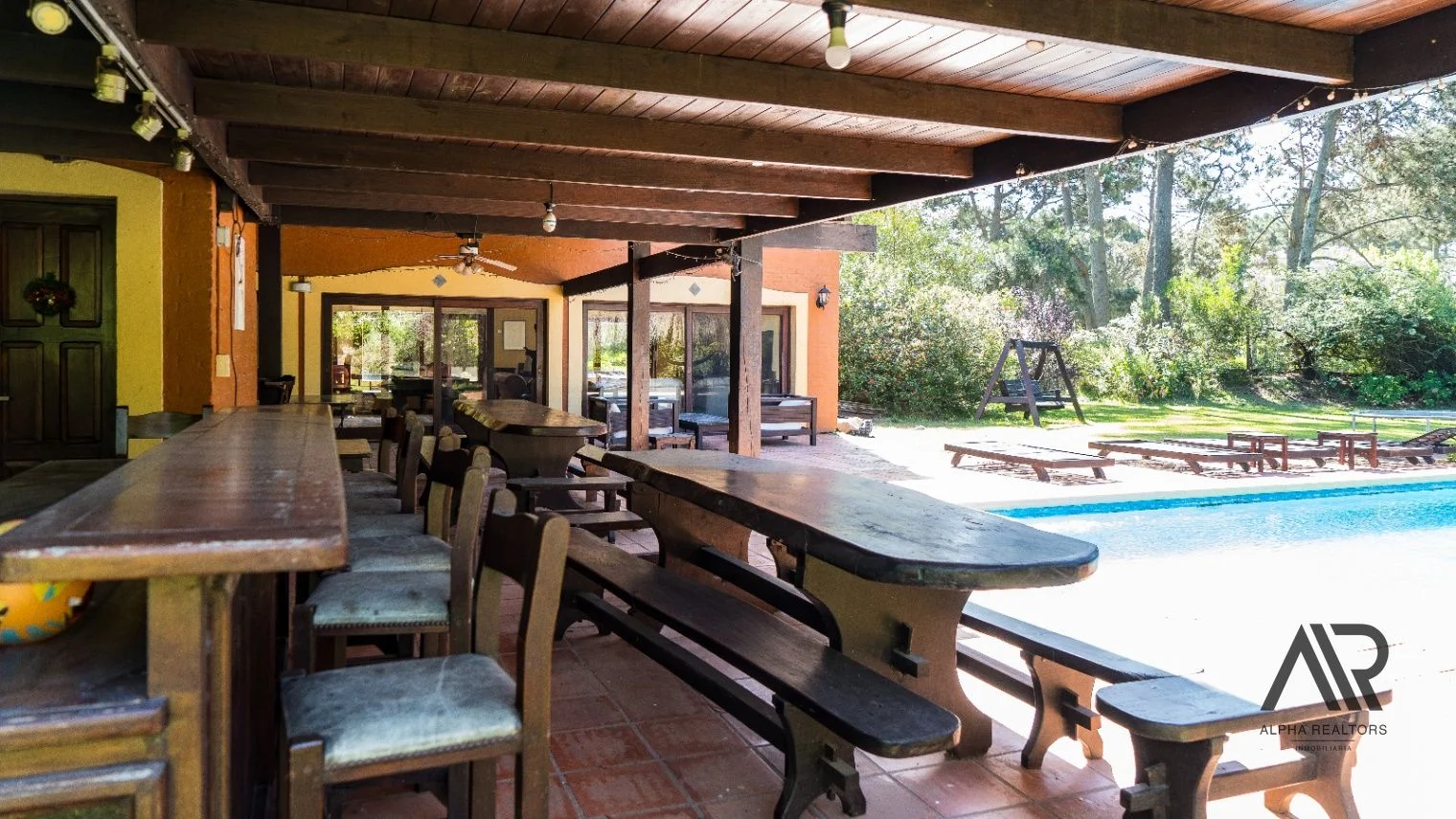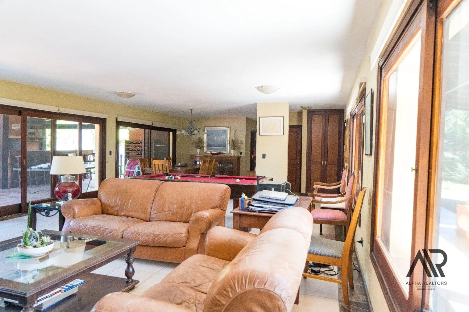 La propiedad está equipada con todas las comodidades modernas, incluyendo aire acondicionado, WiFi, cable TV y un sistema de alarma. Además, cuenta con servicios básicos como agua corriente, teléfono y luz. Los exteriores son un verdadero oasis, con un hermoso jardín, un área verde, una piscina refrescante, un jacuzzi para relajarse y una parrilla ideal para disfrutar de asados en familia. La casa también dispone de un patio perfecto para momentos de esparcimiento. Para mayor conveniencia, incluye 2 cocheras cubiertas y está ubicada en una zona muy tranquila y segura