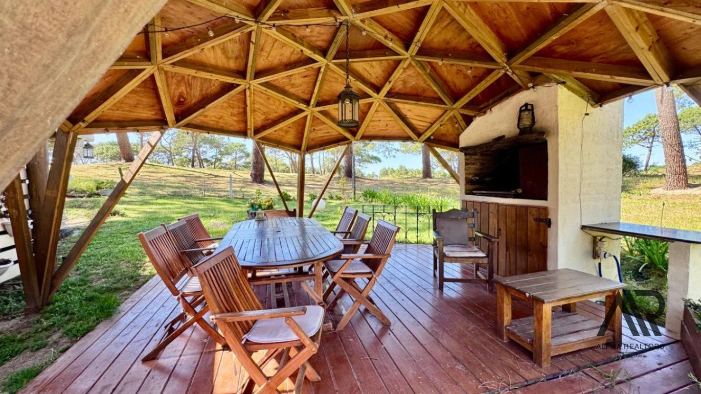 La casa está equipada con comodidades modernas que brindan confort y seguridad, como aire acondicionado, cámaras de CCTV, internet y WiFi. Además, dispone de una heladera, cable TV y un encantador patio con jacuzzi, ideal para relajarse y disfrutar de la naturaleza que la rodea. El área verde y el arbolado proporcionan un ambiente agradable, mientras que la terraza es perfecta para reuniones al aire libre. Con un garaje que ofrece espacio para 4 vehículos cubiertos, esta propiedad es perfecta para quienes valoran el espacio y la funcionalidad.