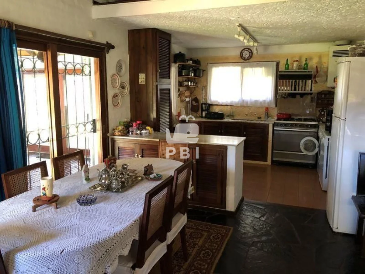 Posee living comedor con estufa de leña y cocina integrada con barra desayunador.