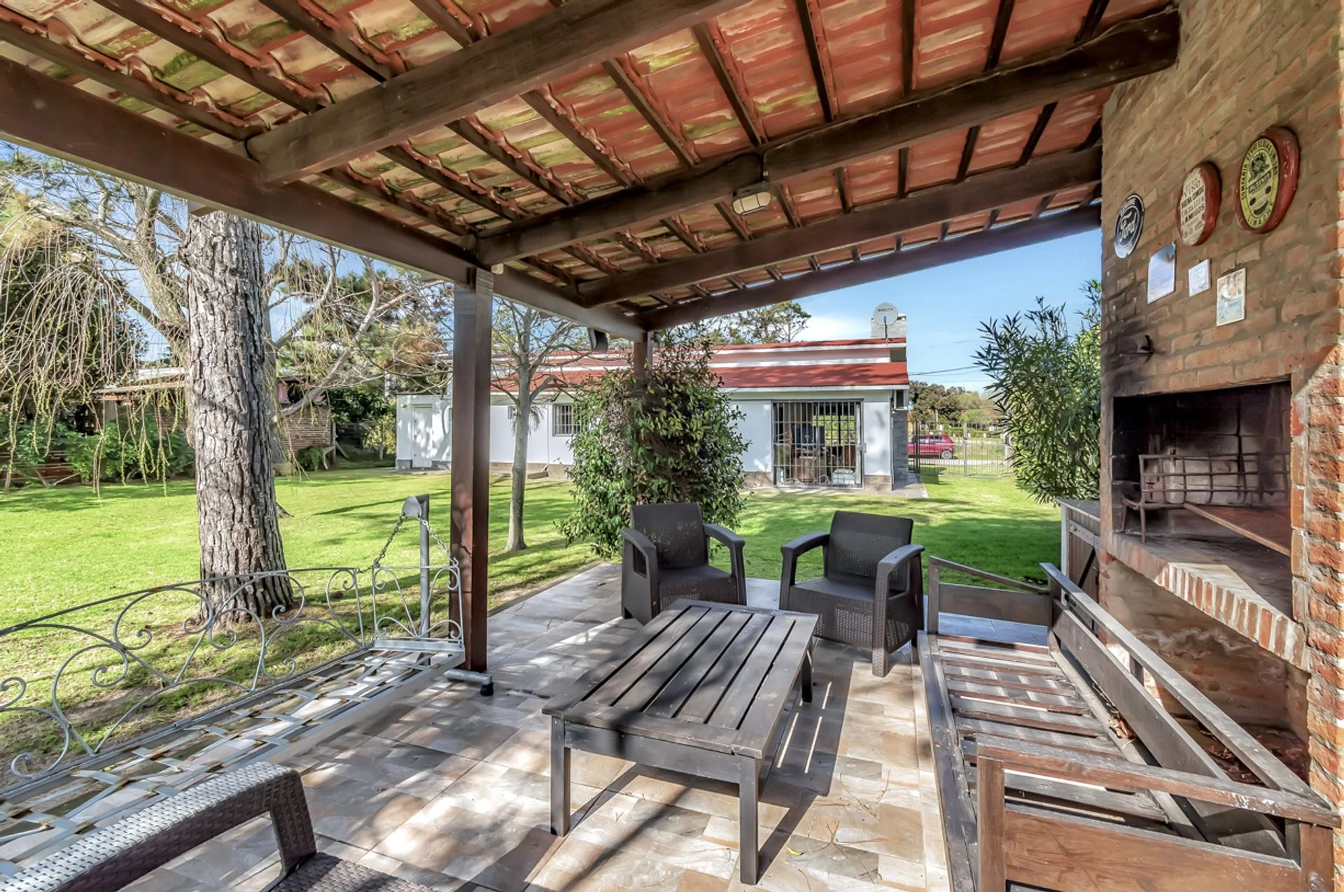 La propiedad cuenta con una construcción tradicional de 814 m² de terreno, de los cuales 90 m² están edificados. Su distribución incluye un living comedor con estufa a leña, una cocina definida, 3 dormitorios y 2 baños