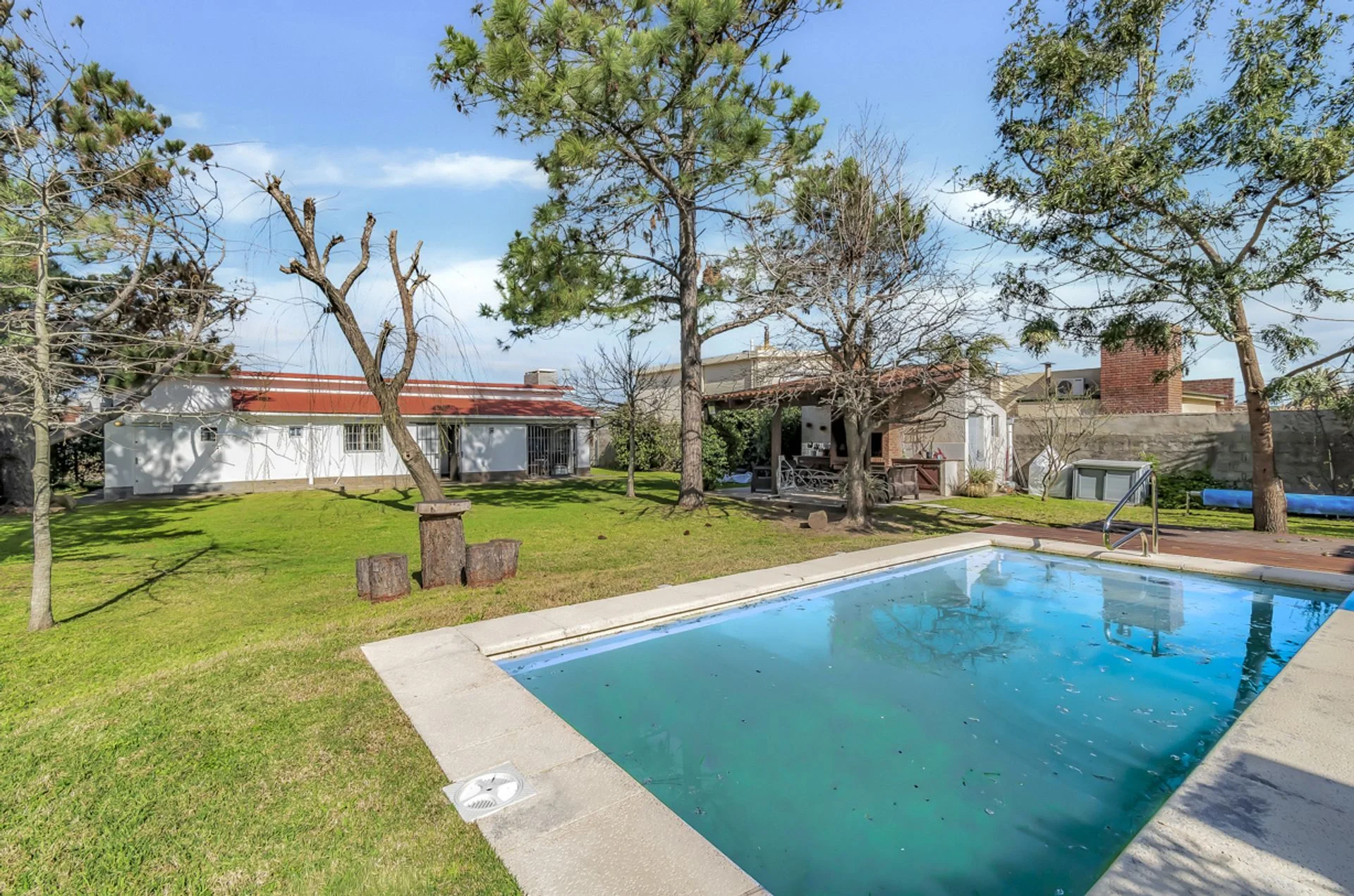 En el exterior cuenta con amplio y verde jardín en el cual se encuentra una parrillero techado y piscina acompañada con deck de madera.