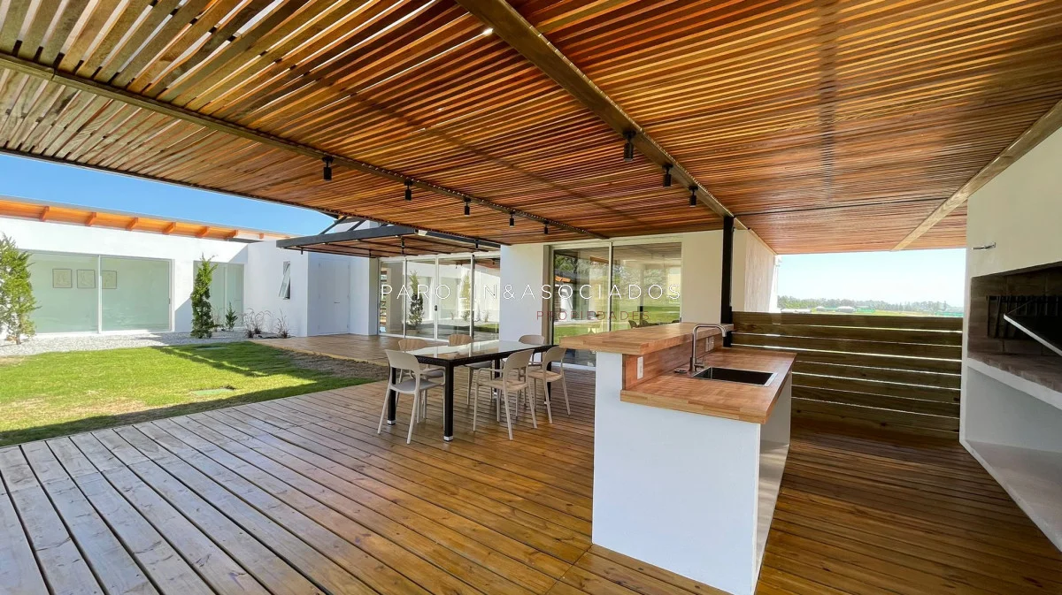 Excelente propiedad en venta en Pueblo Mio: - 4 dormitorios en suite. - Toilette. - Cocina definida. - Amplio living comedor con salida a deck con parrillero. - Lavadero. - Dependencia de servicio con baño. Consulte con nuestros asesores en Parolin and Asociados Propiedades. Referencia Interna : Tera-6011