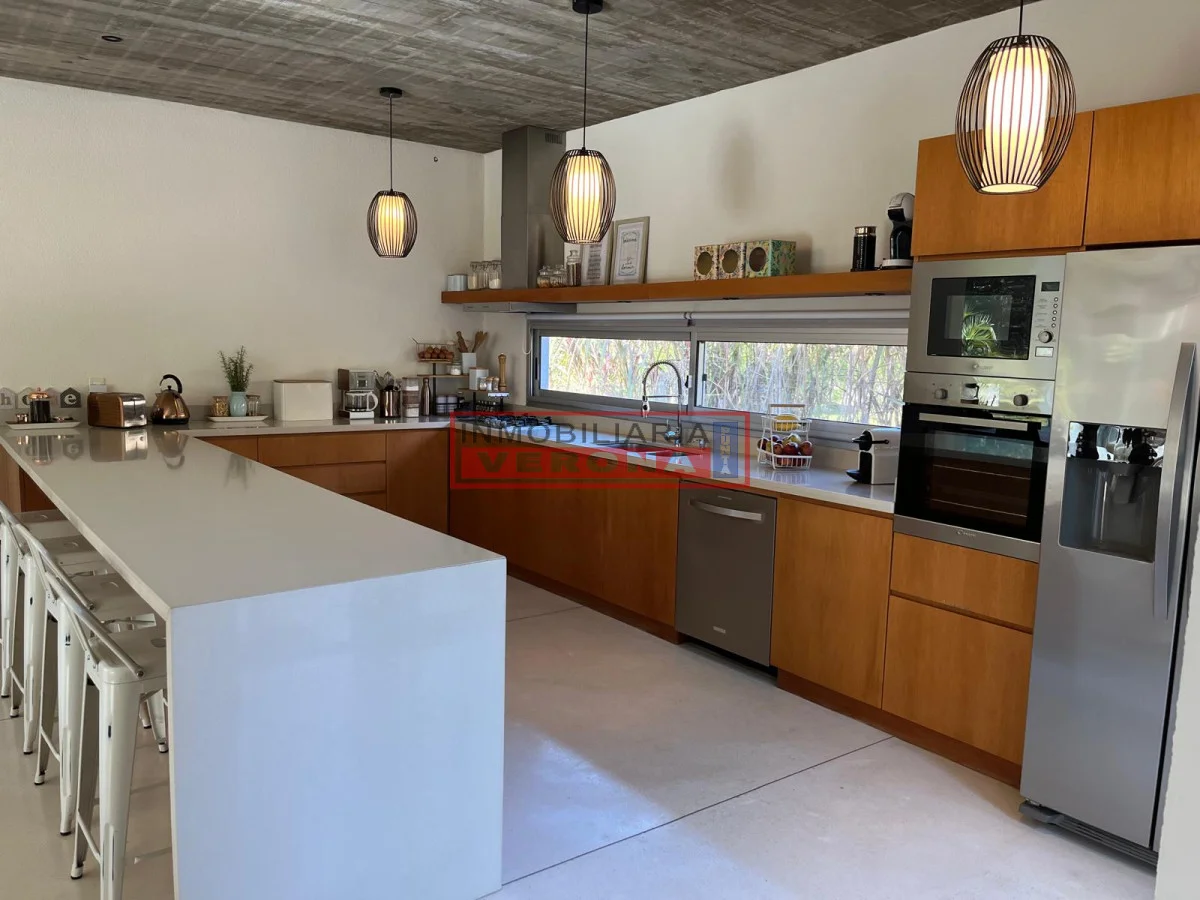 El área social se destaca por su amplio living comedor, con grandes ventanales que integran el interior con el jardín y permiten disfrutar de la luz del día en todo momento. La cocina está completamente equipada, con muebles funcionales, campana, horno, microondas, anafe, heladera con freezer y espacio de guardado tanto en cocina como en comedor.