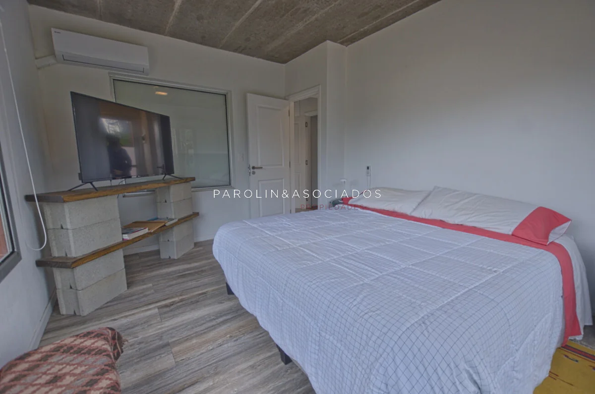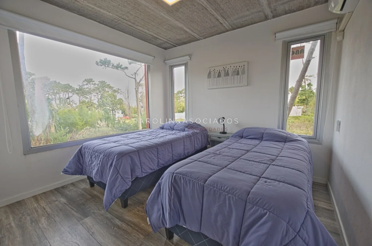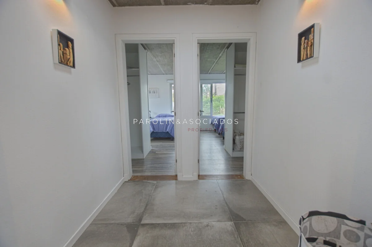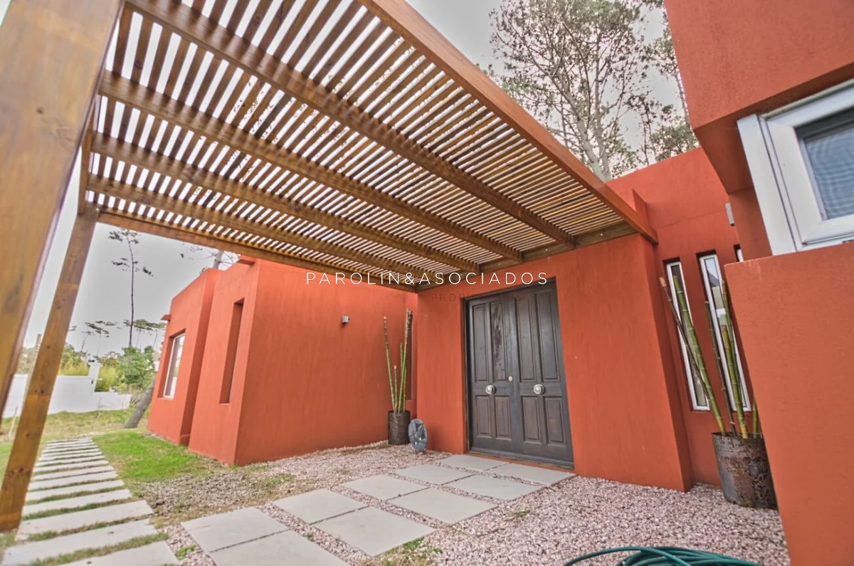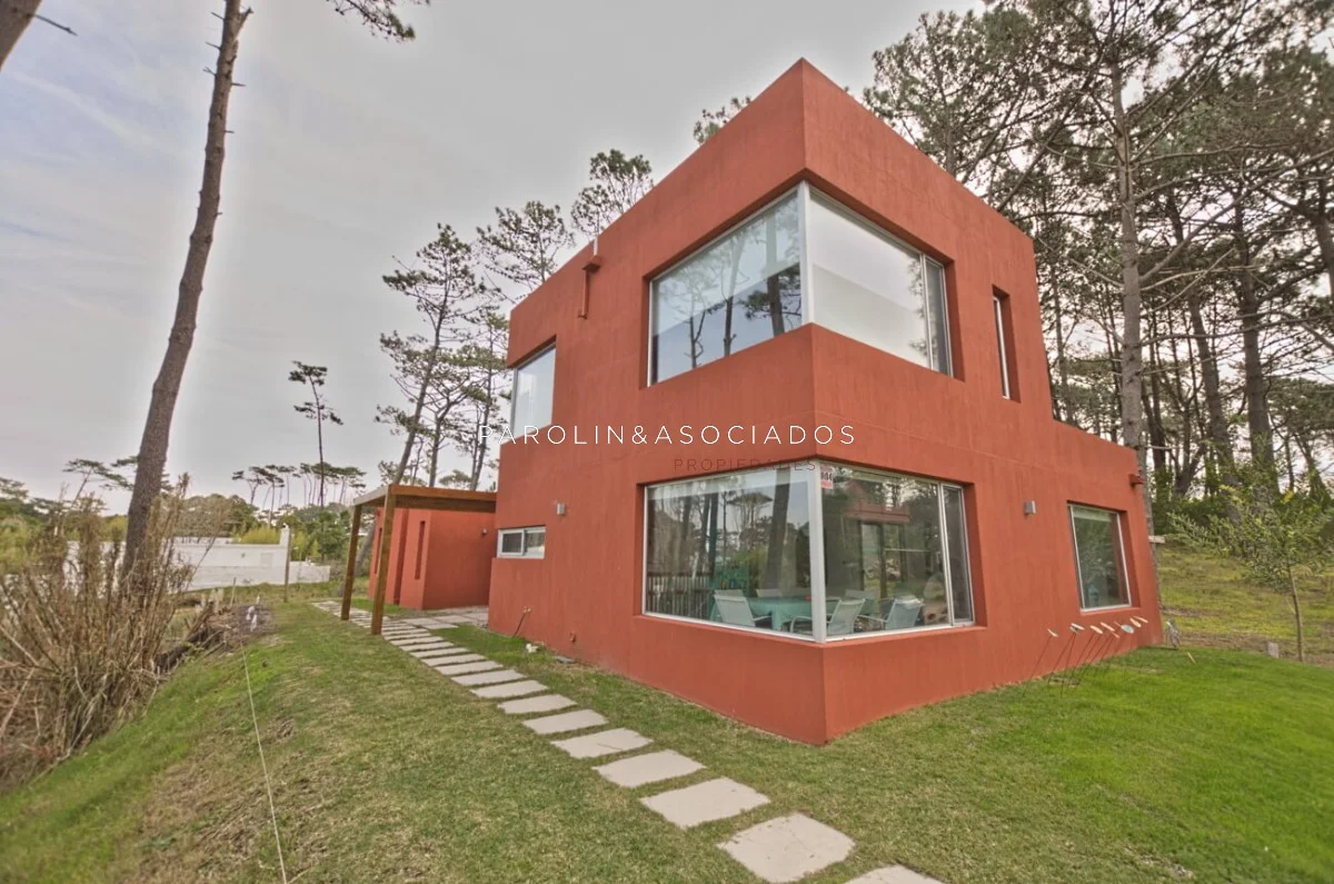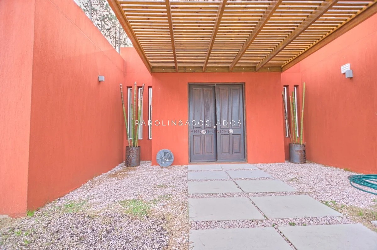 Moderna casa desarrollada en dos plantas, con construcción de alta calidad, aberturas de aluminio con doble vidrio y revoques Tarquini en exteriores e interiores.