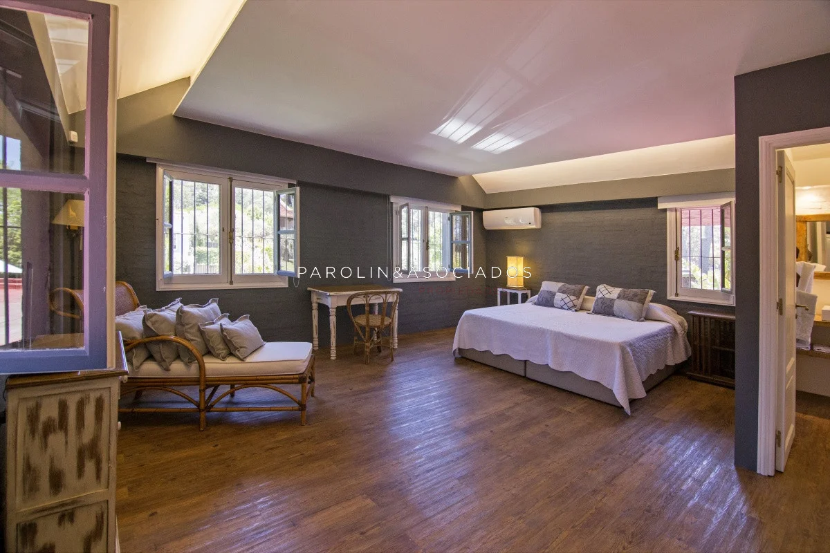 - Dormitorios en suite: Dormitorio principal en suite con hogar a leña, dos dormitorios matrimoniales en suite, y dos dormitorios con camas simples en suite, proporcionando privacidad y comodidad.