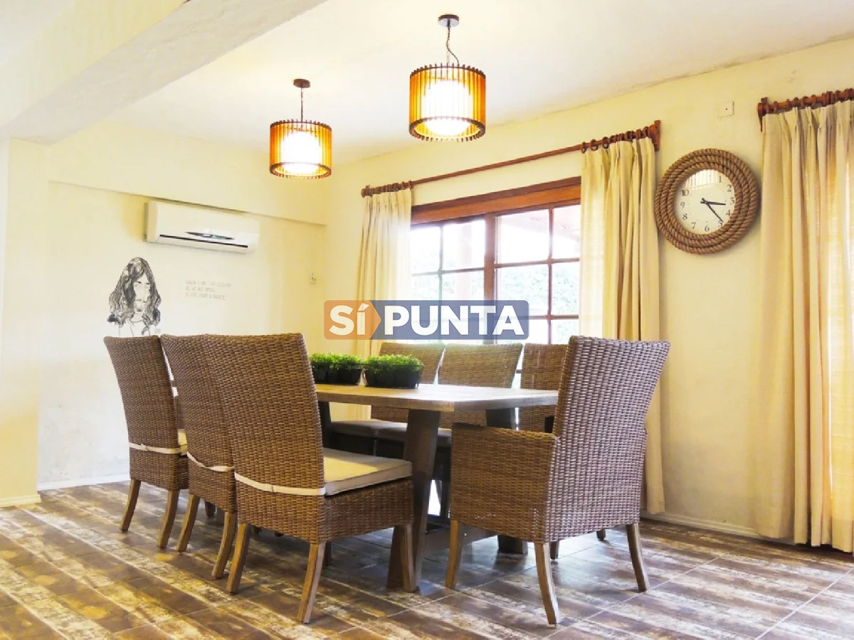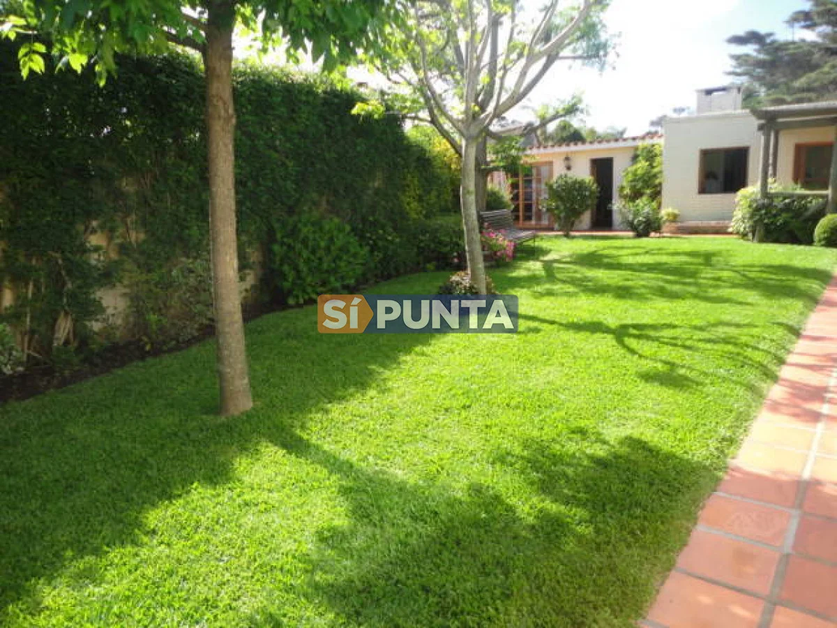 Excelente casa ubicada en playa Mansa - Punta del Este. Construida en 2 plantas, total 400 m2 edificados. La misma cuenta con amplio jardín, fondo totalmente cerrado, riego automatizado, piscina y parrillero techado. Comodidades: - Living comedor - Estufa a leña - Playroom - Cocina - 5 Dormitorios (2 suites) - 4 Baños - Dependencia de servicio - Lavadero - Jardín cercado - Piscina - Parrillero techado - Garaje para 2 autos Referencia Interna : Tera-135