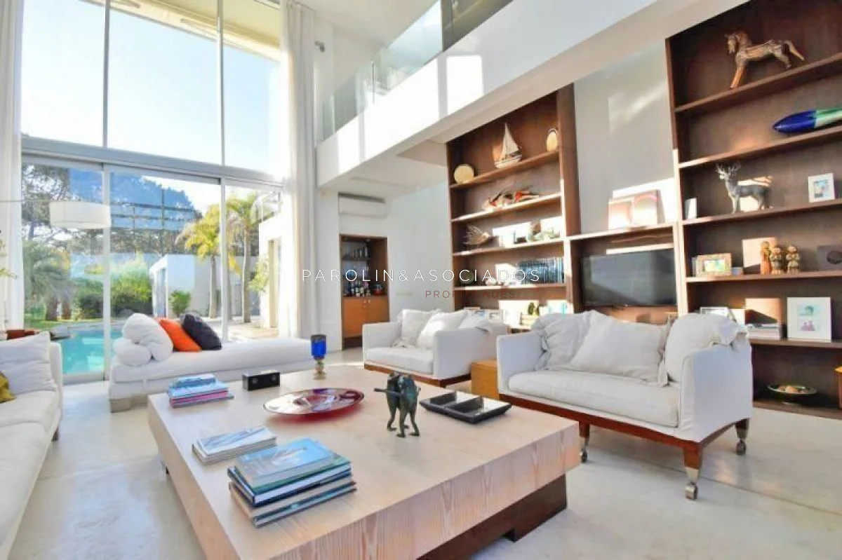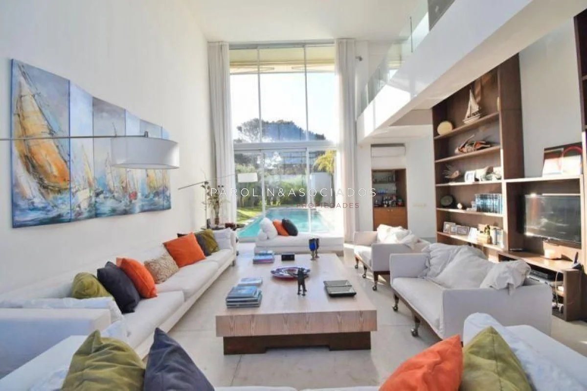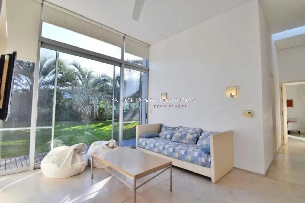 - Amplio y luminoso living comedor con techos altos, brindando una excelente vista al mar y acceso directo a una piscina con deck rodeado de palmeras, y parrillero techado.