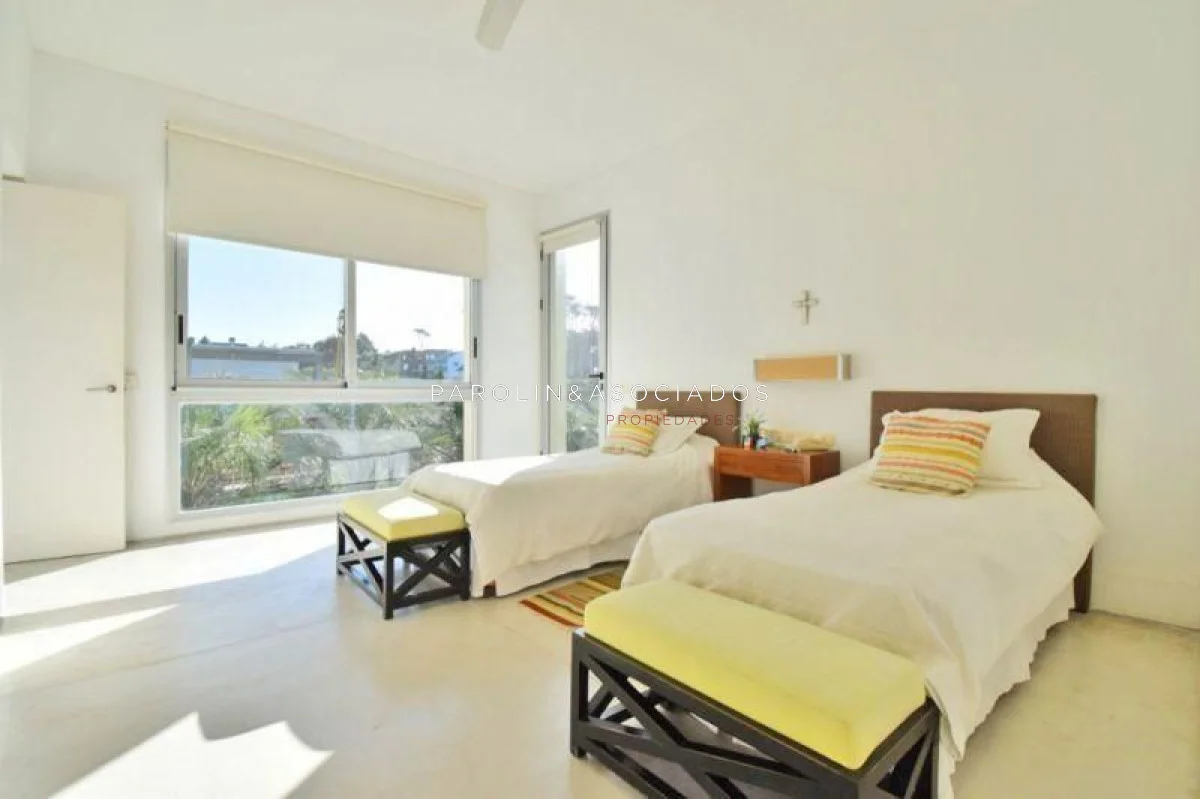 - Casa principal con cuatro dormitorios en suite, incluyendo una master suite en planta alta con dos baños, y un segundo dormitorio en suite con dos camas.