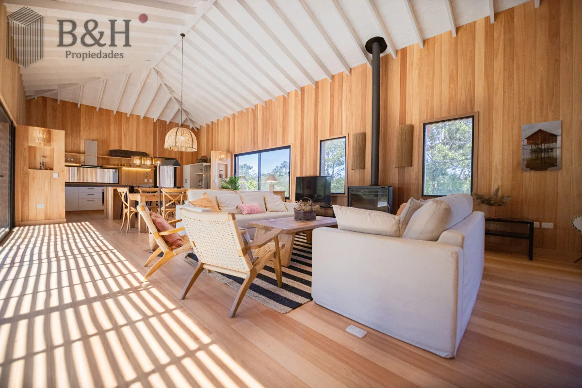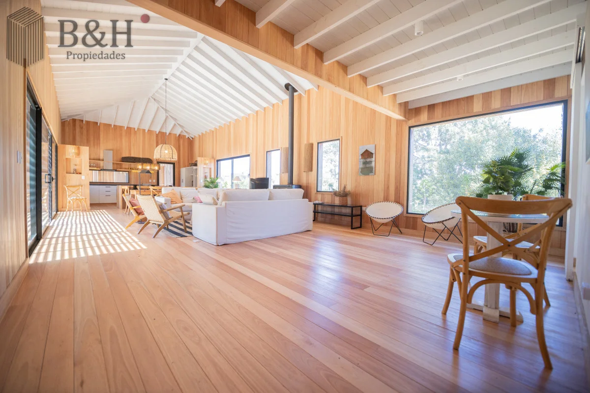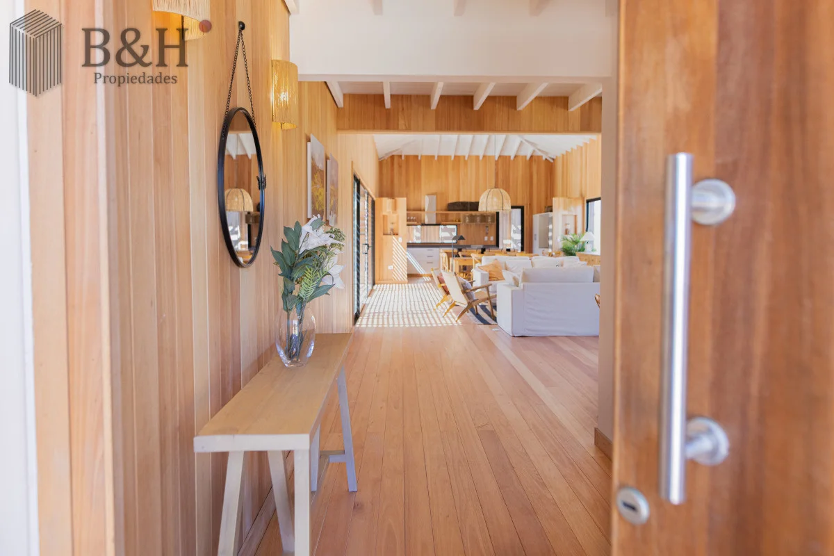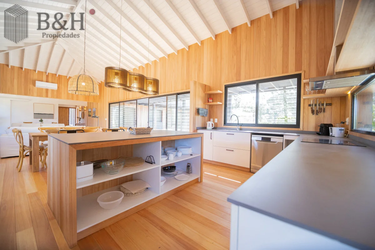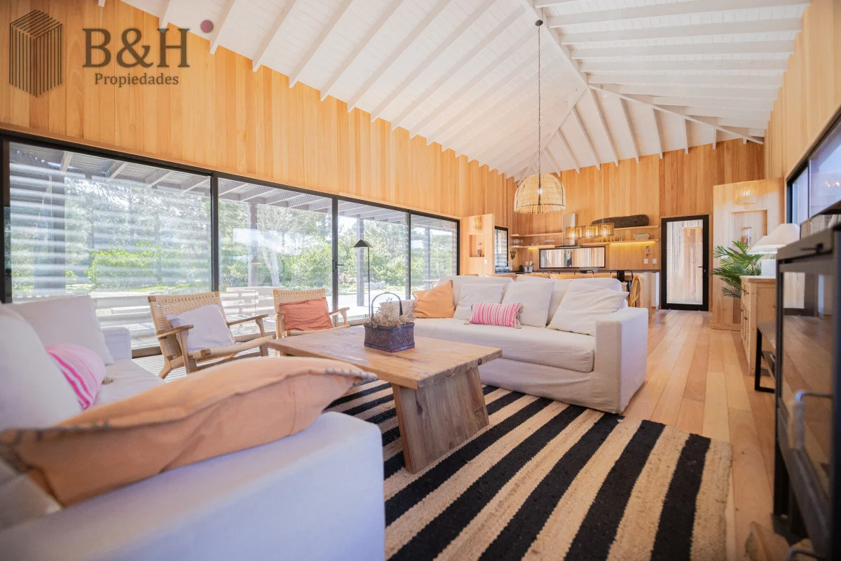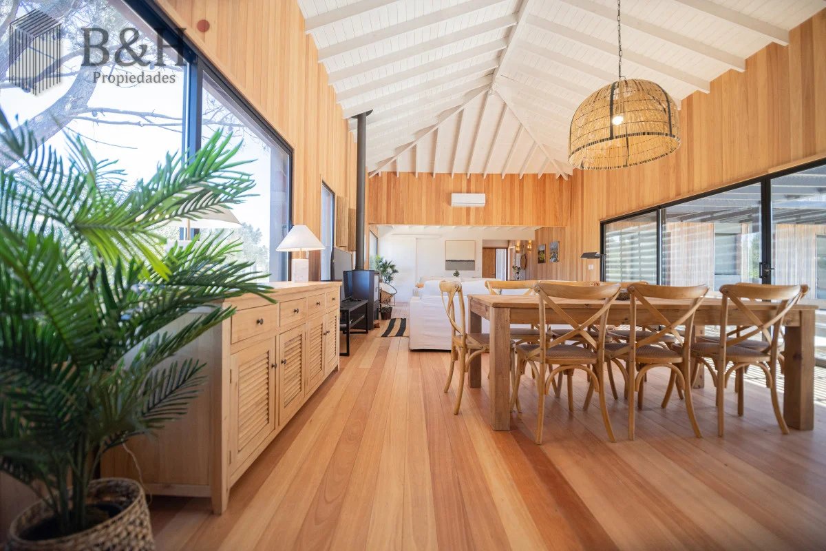 Ubicada en Jose ignacio, en el exclusivo barrio cerrado Laguna Escondida, sobre un lote de 1900 m2, a unos pocos metros de la playa, se trata de una casa de 310m2 cubiertos y 150 m2 de deck y terraza, con vista al mar desde el segundo piso.