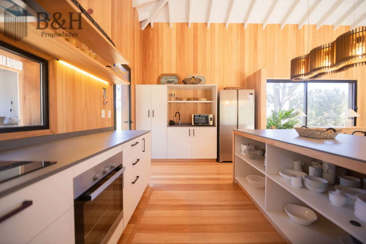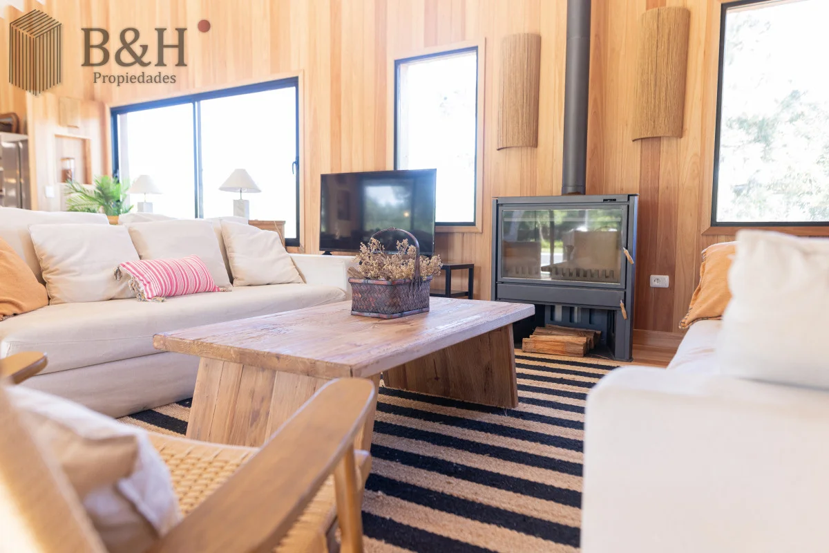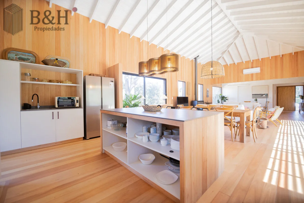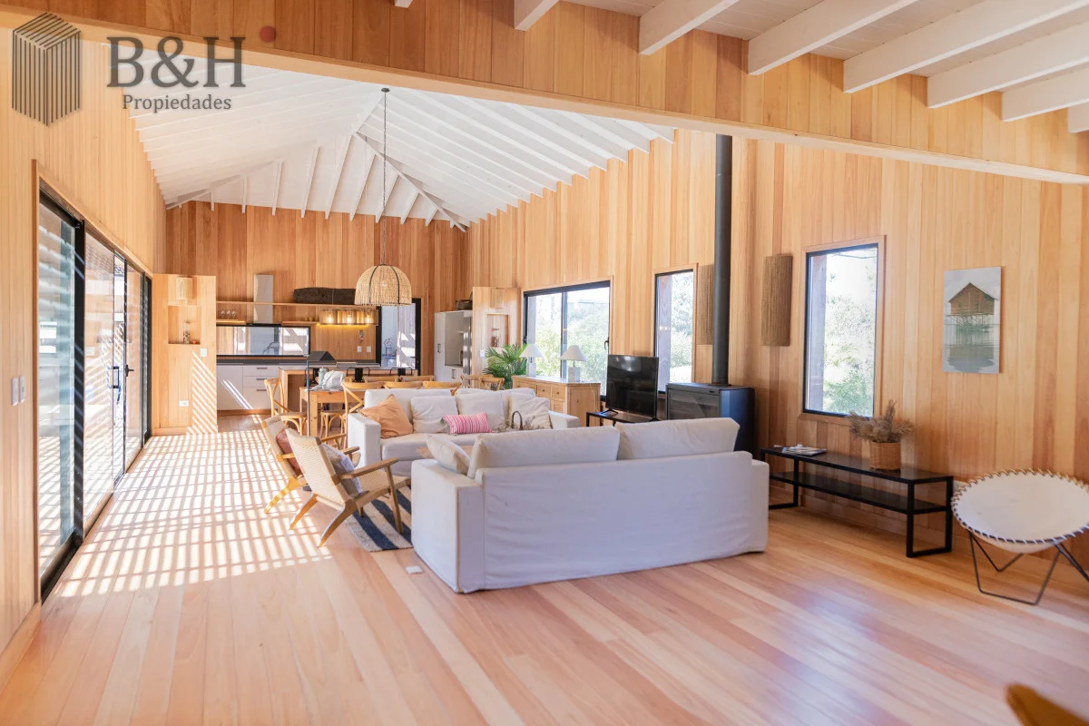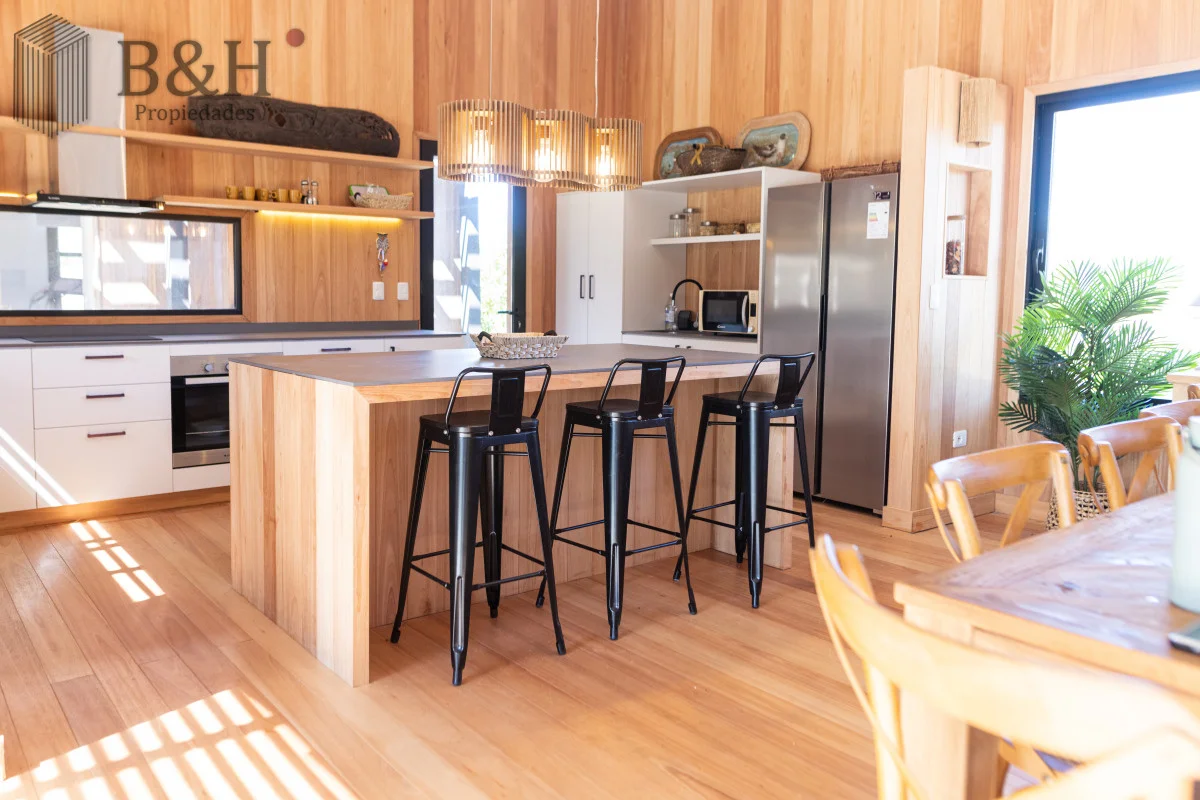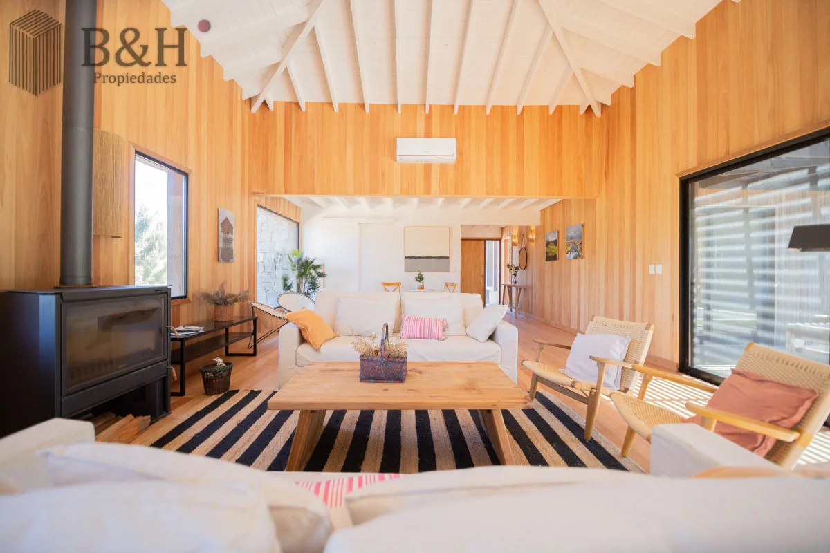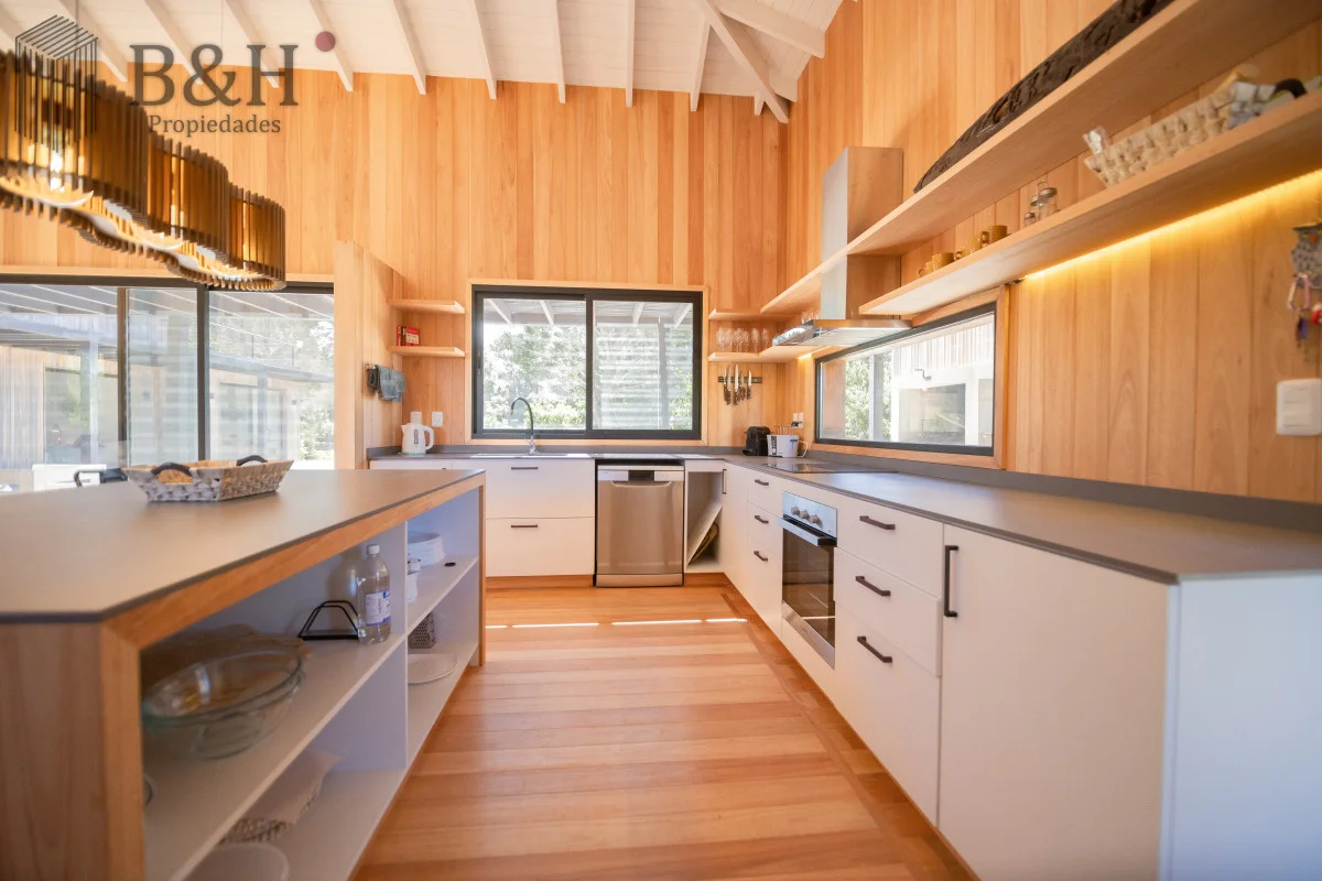 Ubicada en Jose ignacio, en el exclusivo barrio cerrado Laguna Escondida, sobre un lote de 1900 m2, a unos pocos metros de la playa, se trata de una casa de 310m2 cubiertos y 150 m2 de deck y terraza, con vista al mar desde el segundo piso.