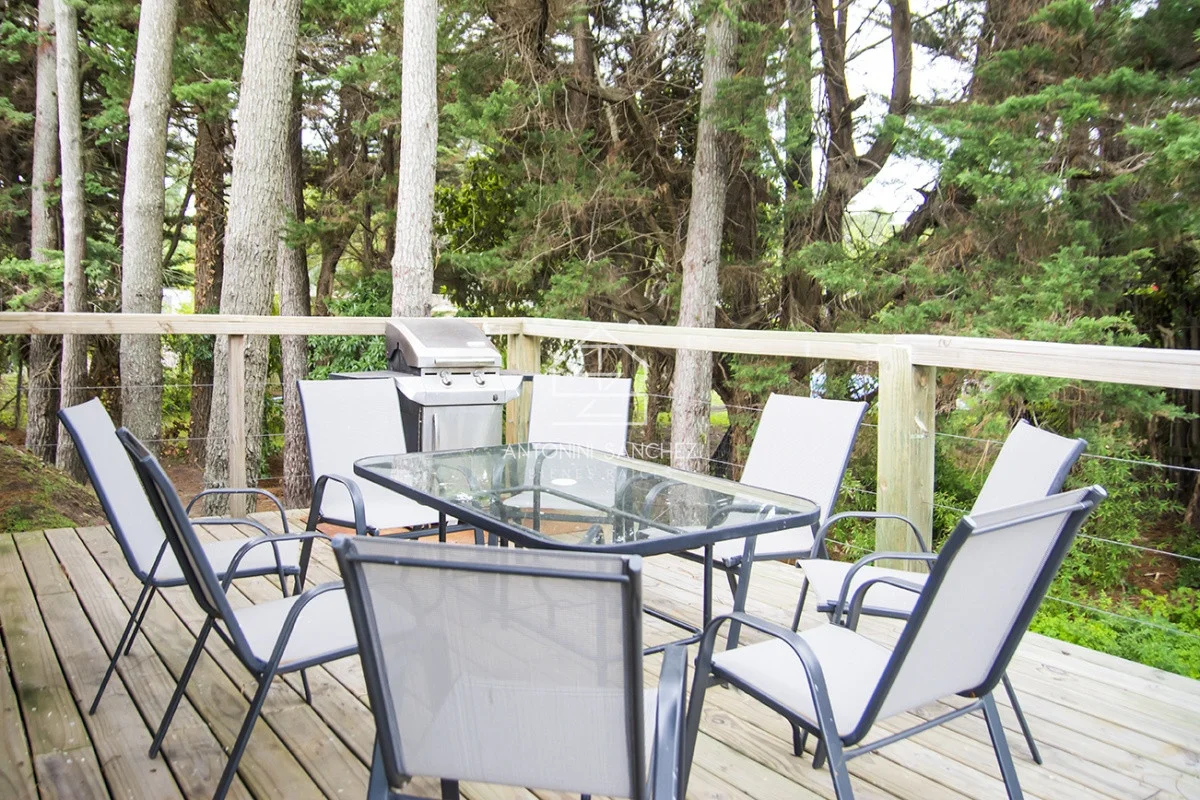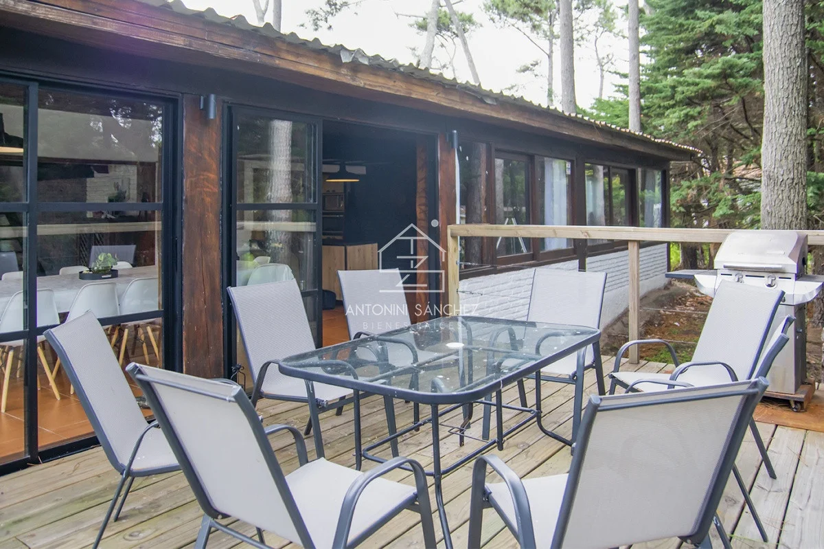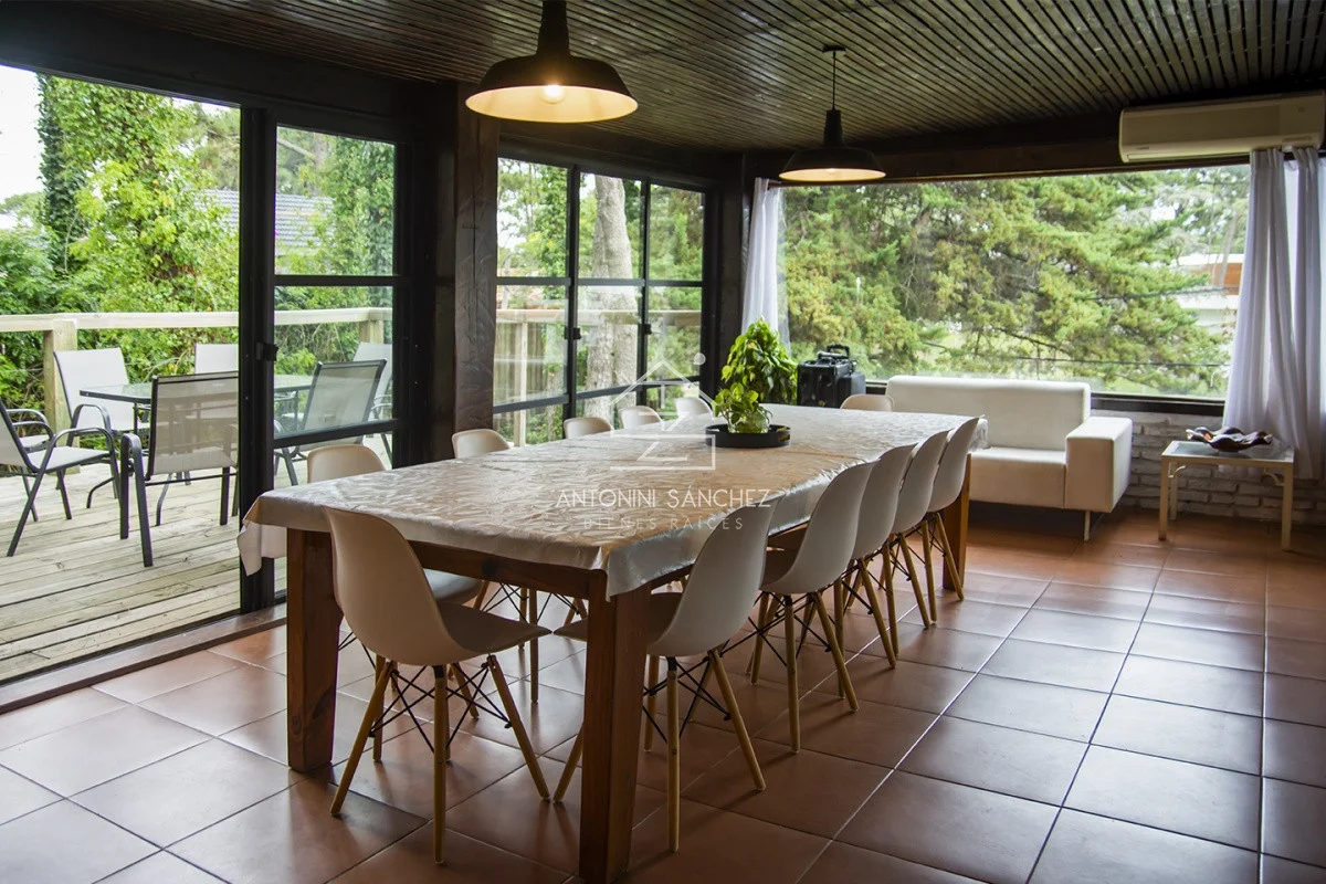 El comedor principal se encuentra estratégicamente entre la cocina y el deck, cuenta a la vez con calefacción por estufa a leña de alto rendimiento y un gran aire acondicionado.