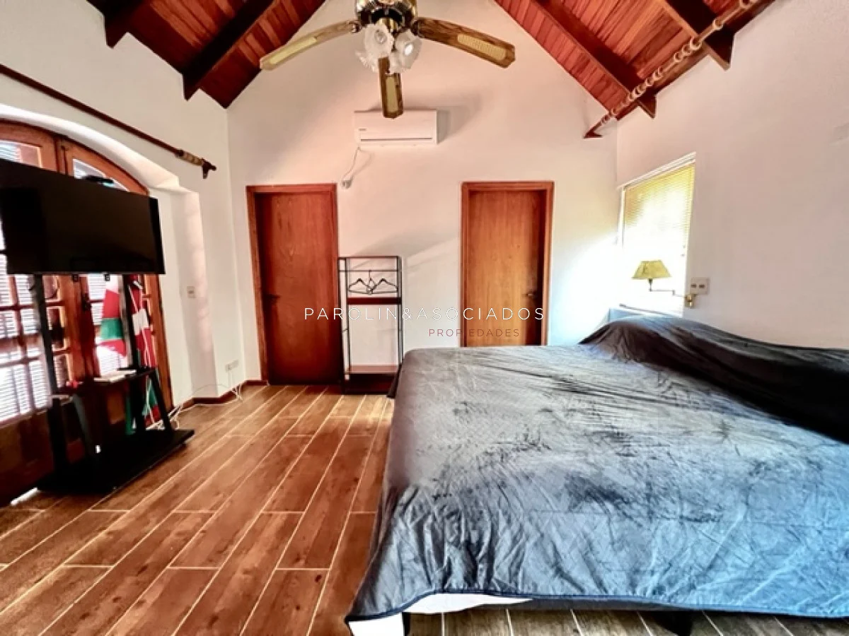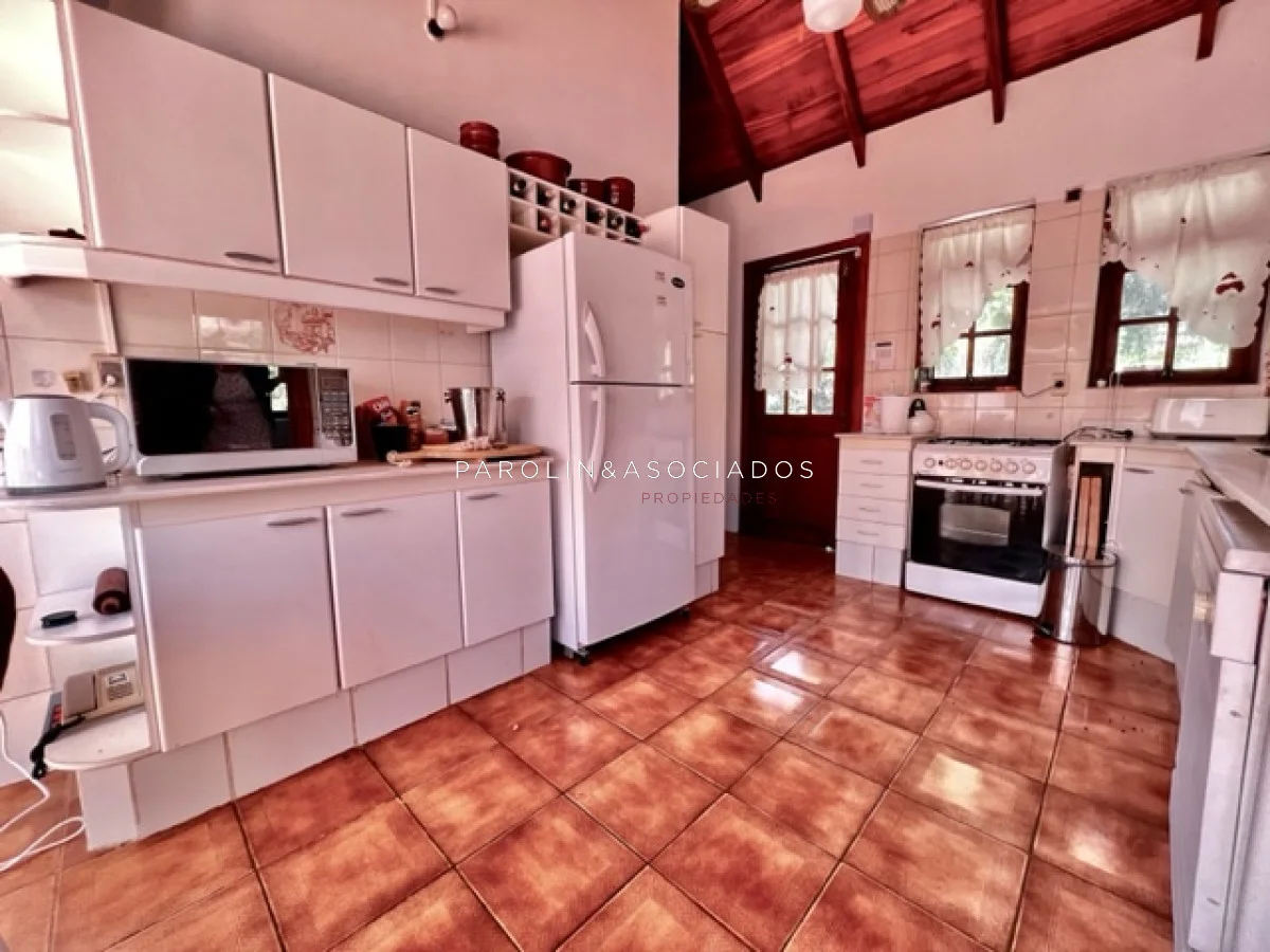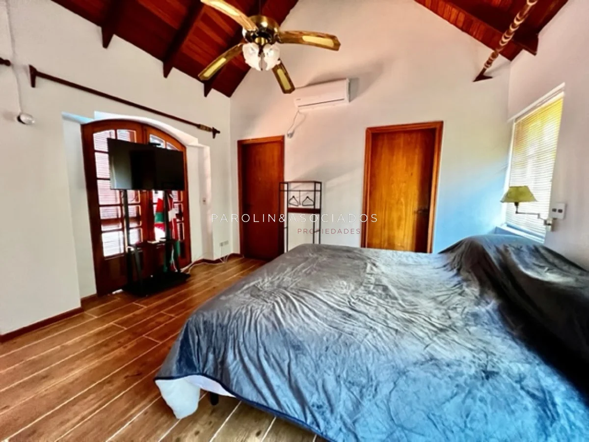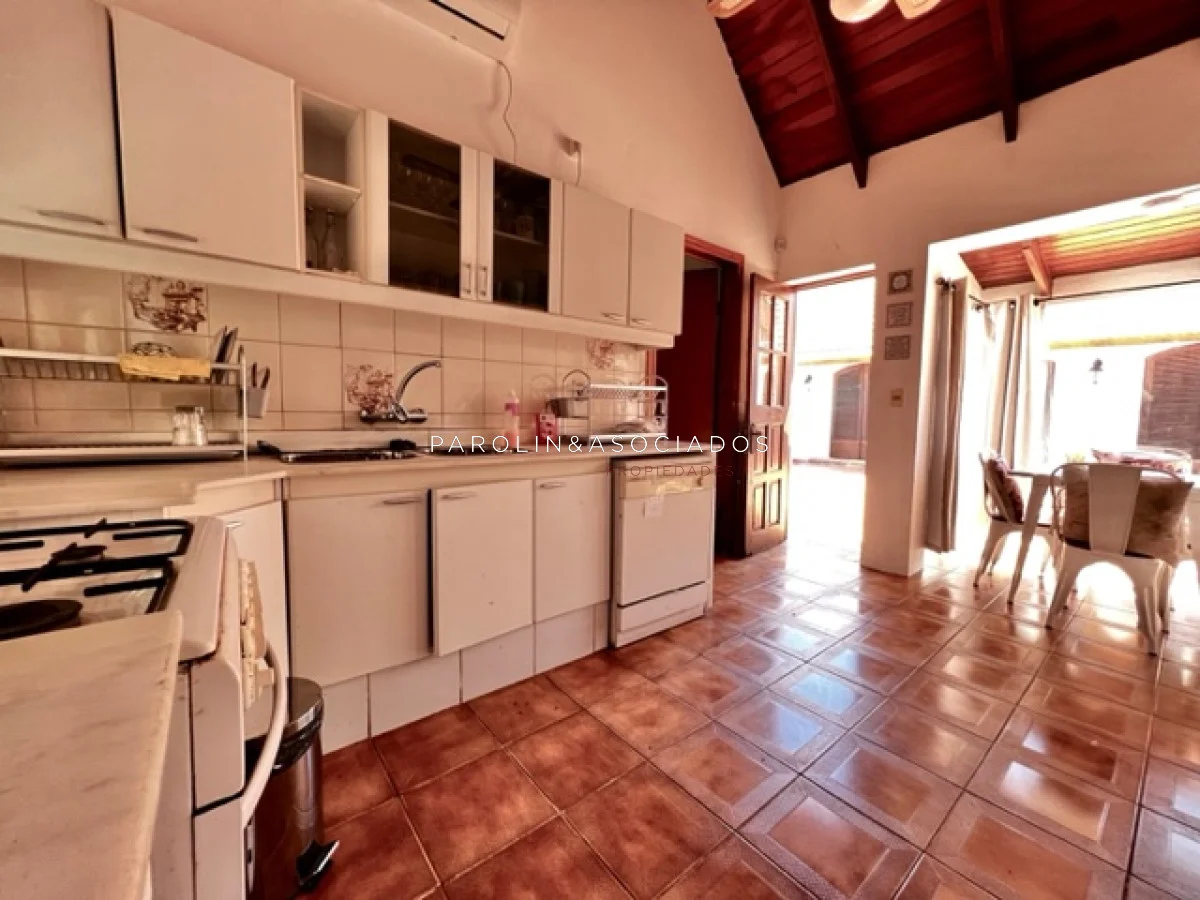 La casa está equipada con todas las comodidades modernas, incluyendo aire acondicionado, ventiladores de techo, lavarropas, lavavajillas, heladera con freezer, cocina a gas, microondas y horno. Además, cuenta con amplios placards en la cocina y en los dormitorios para su comodidad.