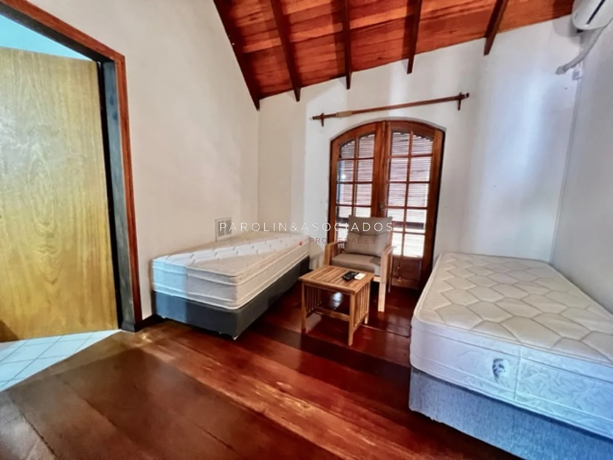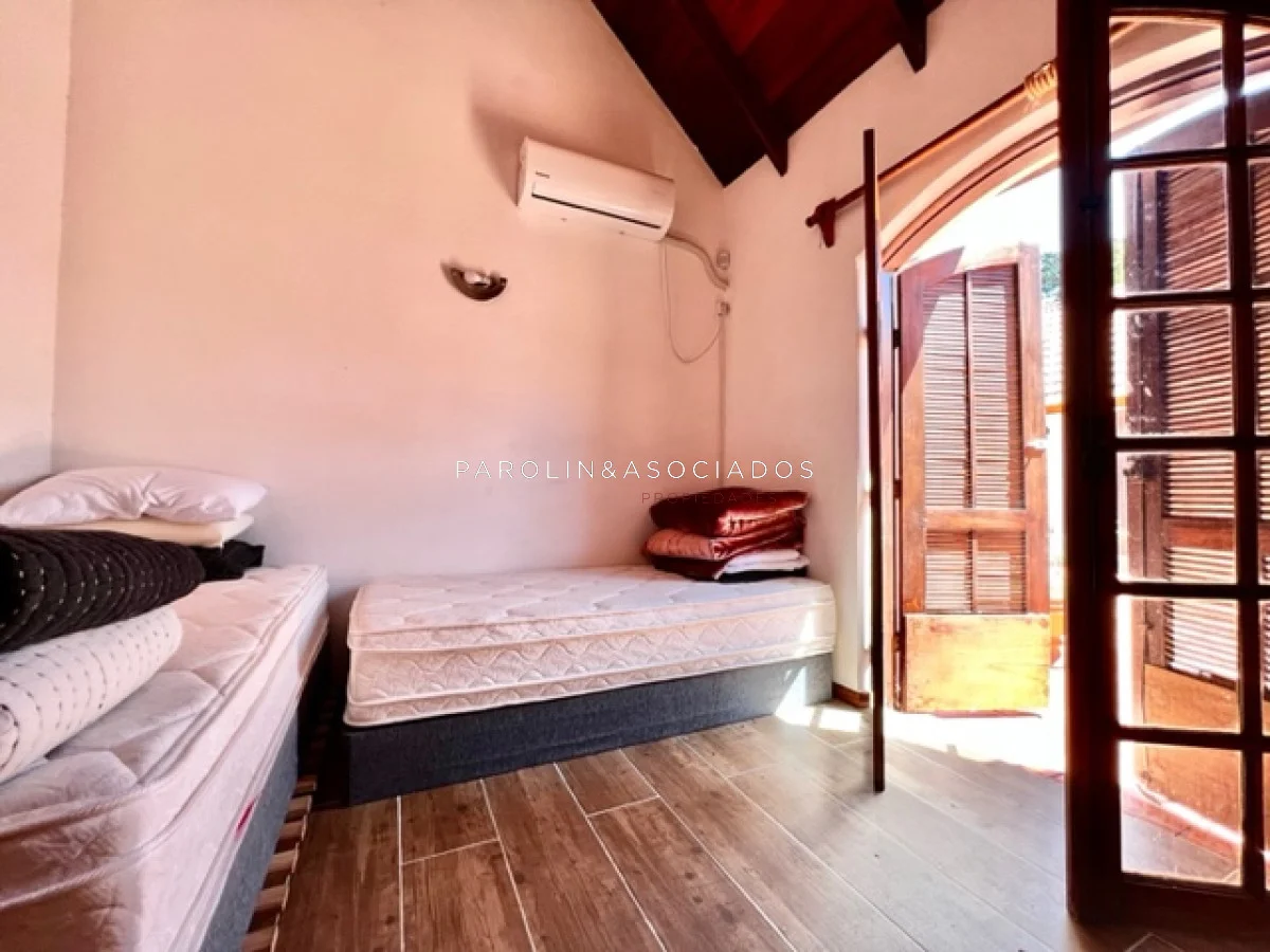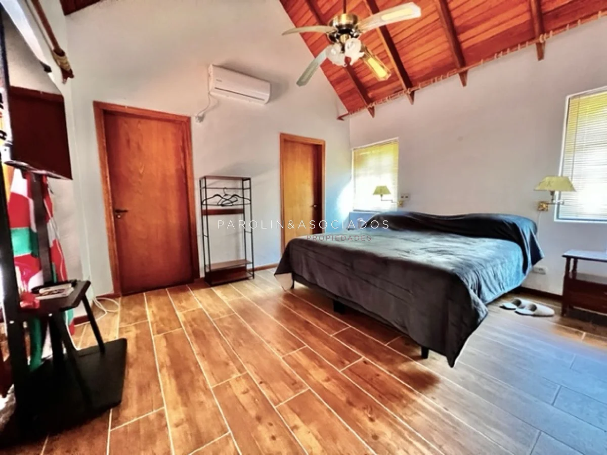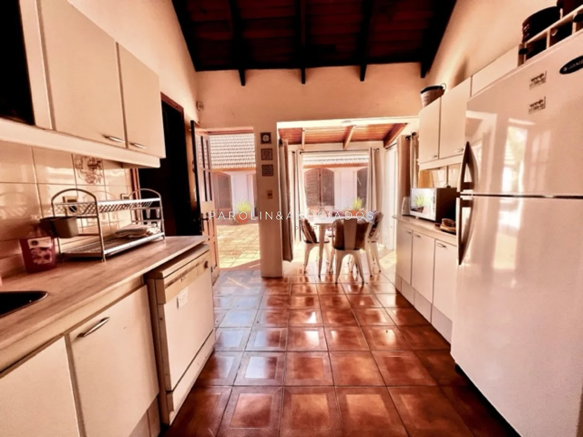 La casa está equipada con todas las comodidades modernas, incluyendo aire acondicionado, ventiladores de techo, lavarropas, lavavajillas, heladera con freezer, cocina a gas, microondas y horno. Además, cuenta con amplios placards en la cocina y en los dormitorios para su comodidad.