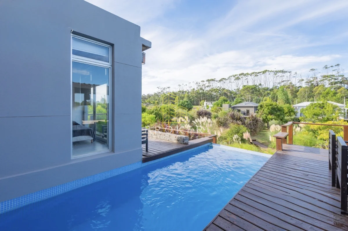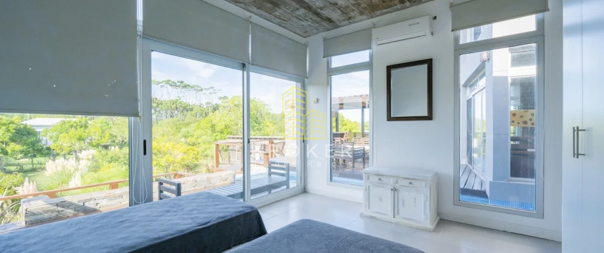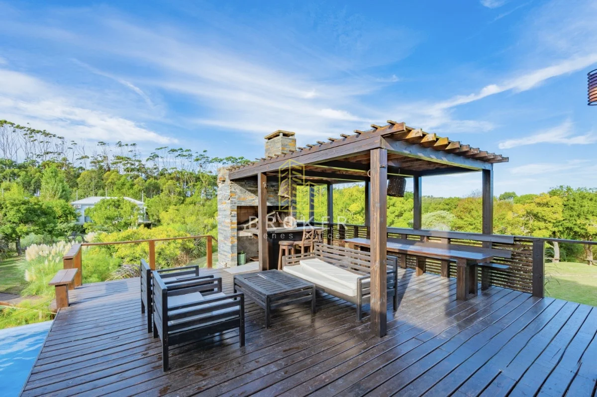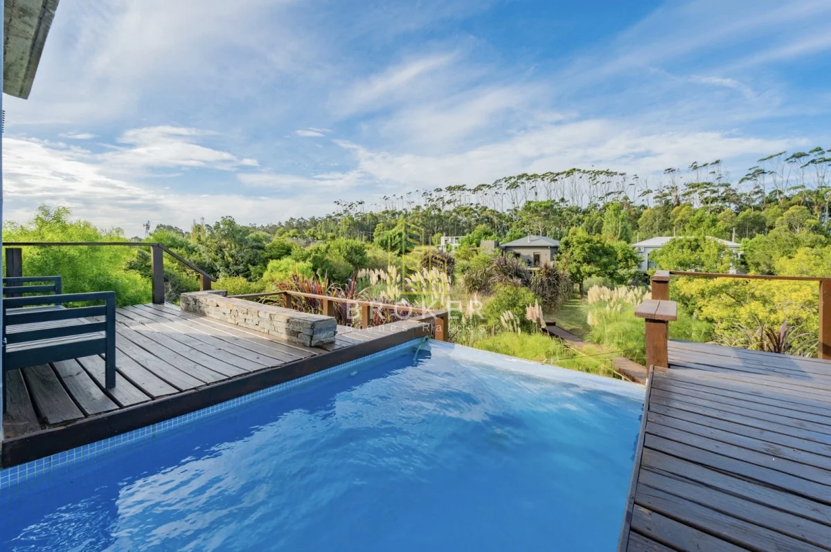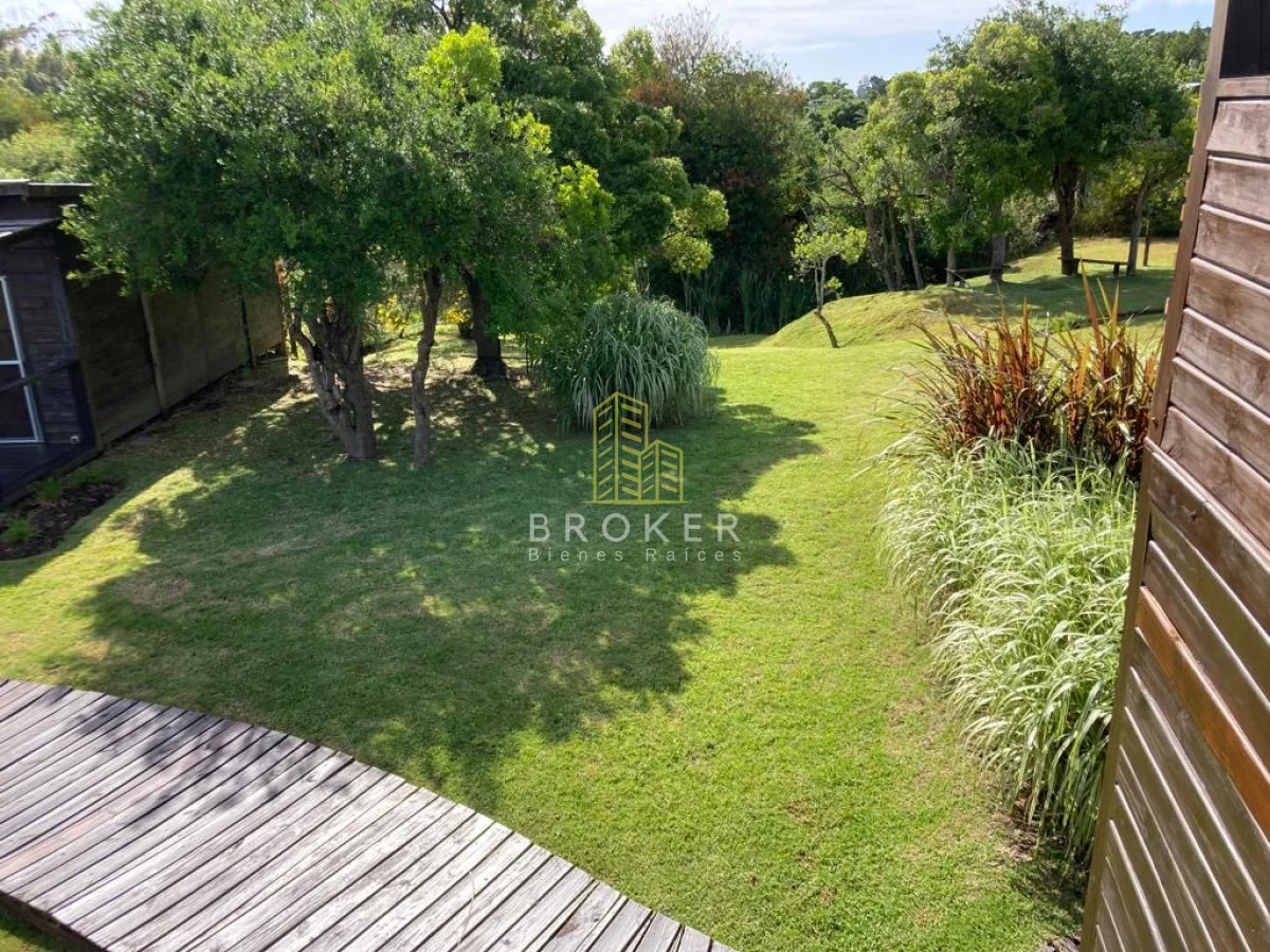 Es una casa con 220 m2 construidos, 240 semi cubiertos con terraza y deck . Cuenta con cochera techada para dos autos y piscina climatizada con cascada.