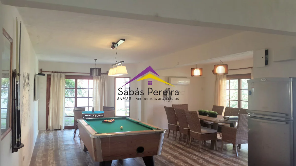 Excelente casa, construída en 2 plantas, total 400 m2 edificados sobre una superficie de 1.176 m2 de terreno. Totalmente equipada La misma consta de: Living comedor amplio, cocina con comedor diario, 5 dormitorios, 2 de ellos en suite, mas dependencia de servicio con baño, barbacoa cerrada con parrillero, sala de juegos (pool, ping pong, etc.).