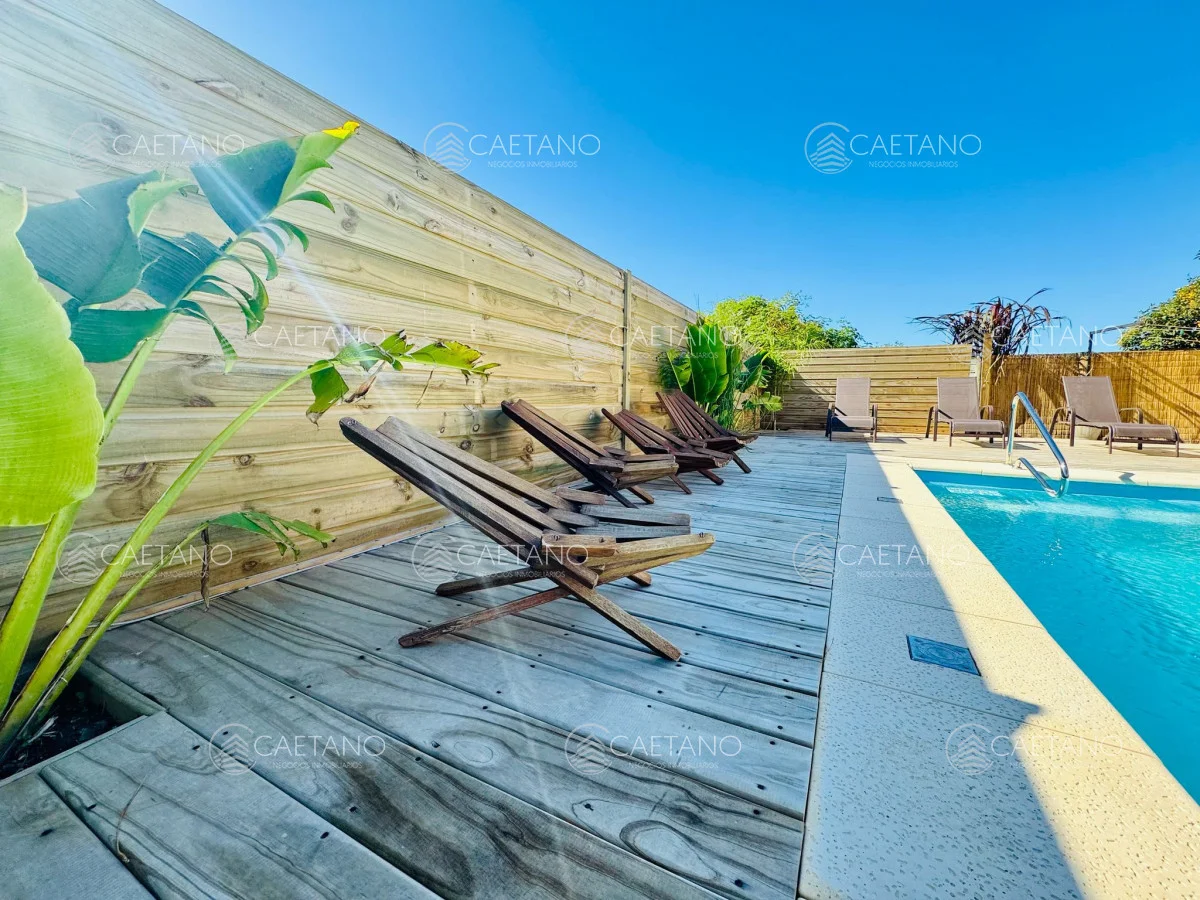Con una generosa distribución, la propiedad cuenta con 3 dormitorios, 2 baños y 2 suites, ofreciendo capacidad para hasta 8 personas. La cocina integrada se conecta armoniosamente con el living-comedor, creando un ambiente ideal para compartir y celebrar.