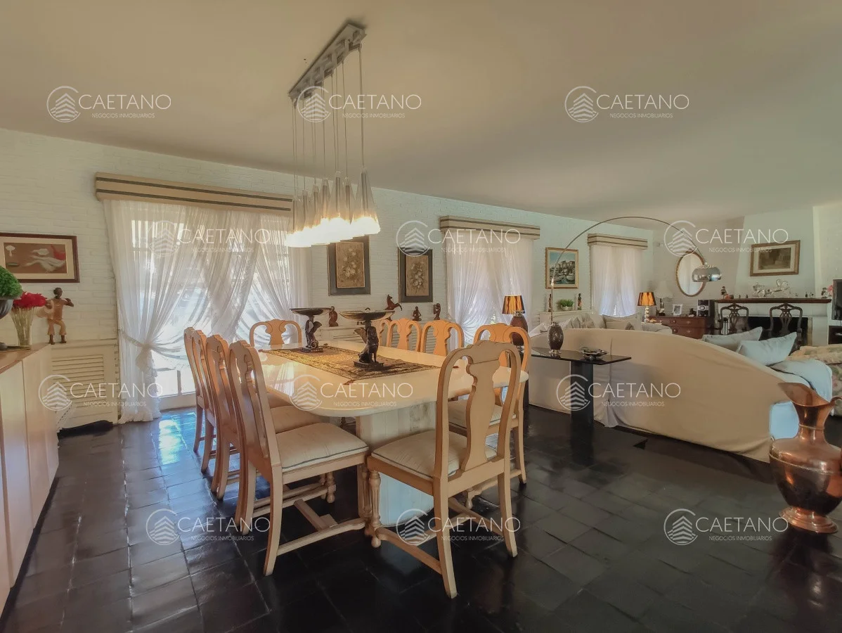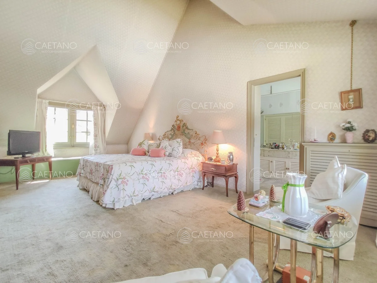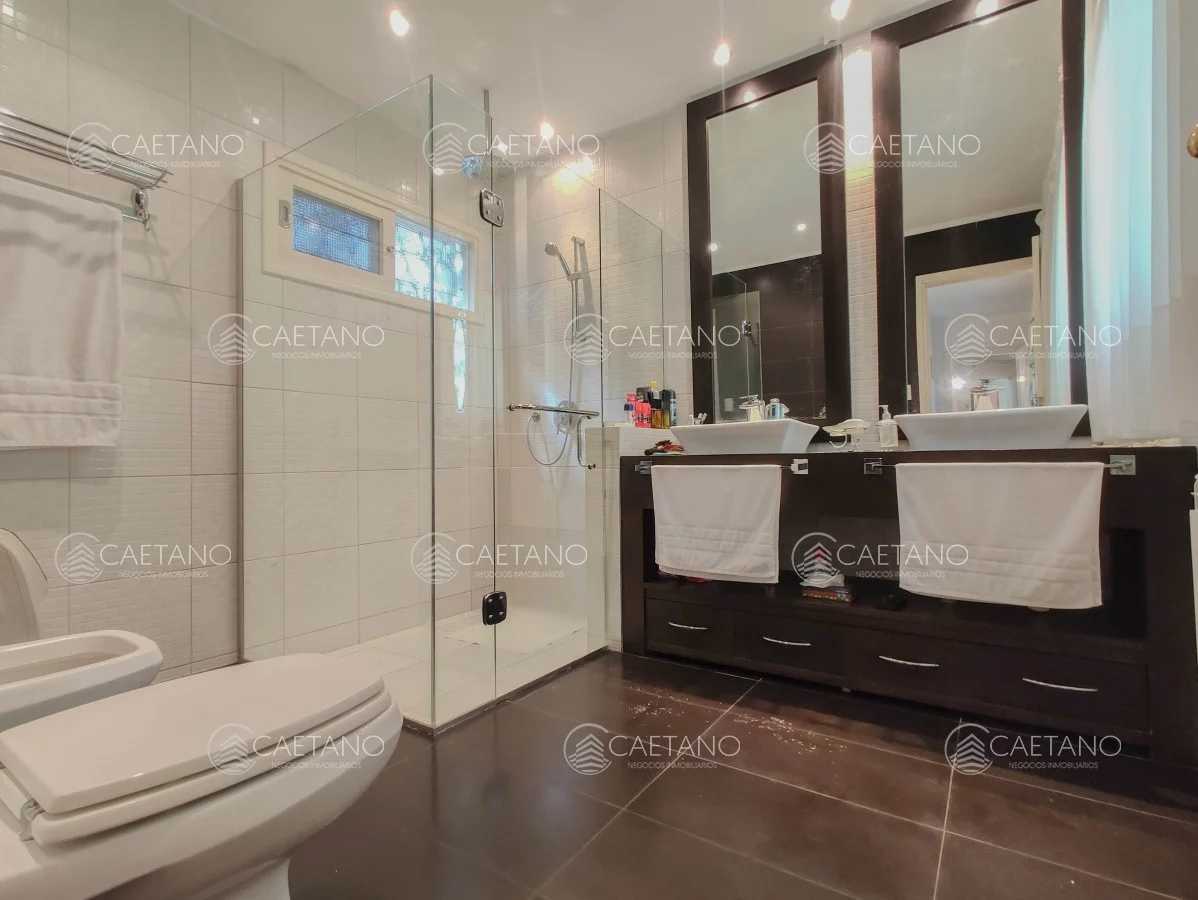 La casa se distribuye en dos plantas. Cuenta con un gran living comedor con estufa a leña, cocina comedor con amplios gabinetes, 6 dormitorios y 9 baños donde 6 de ellos son en suite + dependencia de servicio con baño.