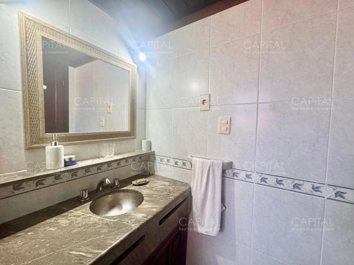 Casa en Cantegril - Punta del Este! Cuenta con 3 Dormitorios en los cuales 1 es en suite, 3 baños. Cocina : Definida, Living , Comedor. Con un terreno de 1400 metros cuadrados, esta casa es ideal para disfrutar durante todo el año. Calefaccionada con estufa de leña y aire acondicionado en Living comedor y dormitorio principal. Construcción solida con paredes de ladrillo doble y techo de teja A La Porteña. Parrillero Techado Capital Real Estate Referencia Interna : Tera-38833
