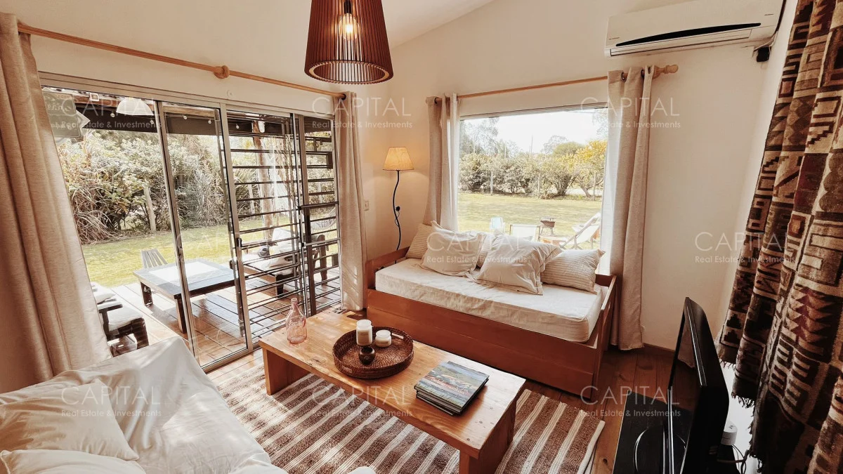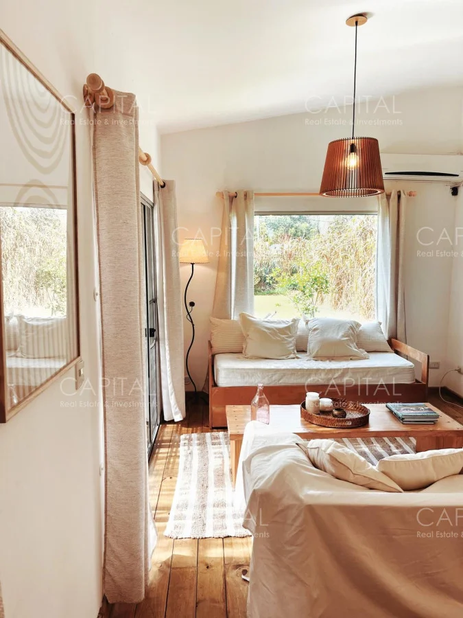 Casa en Santa Monica - Jose Ignacio Ubicado a 600 metros del Mar. En excelente estado cuenta con living y cocina con barra, dos dormitorios y baño. Tiene airea condicionado en todos los ambientes, rejas, parrillero techado y cerco verde que brinda mucha privacidad. Orientación norte Terreno : 568 m2 Edificado : 80 m2 Consulte con nuestros asesores. Referencia Interna : Tera-38864