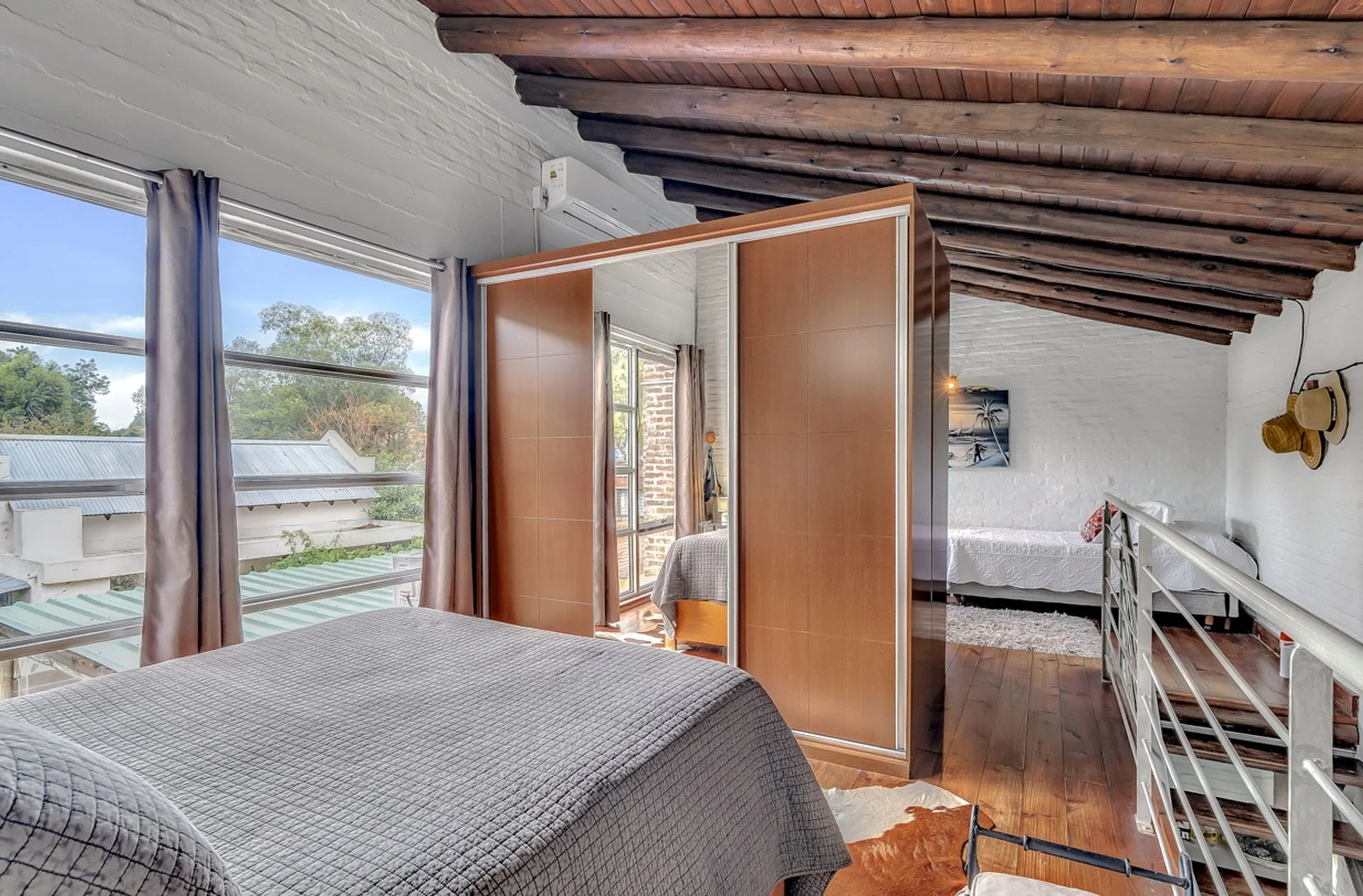 Esta casa está en propiedad horizontal, desarrollada en dos plantas: en planta baja cuenta con living comedor con cocina integrada y baño completo; en planta alta, un ambiente amplio dividido en dos dormitorios.