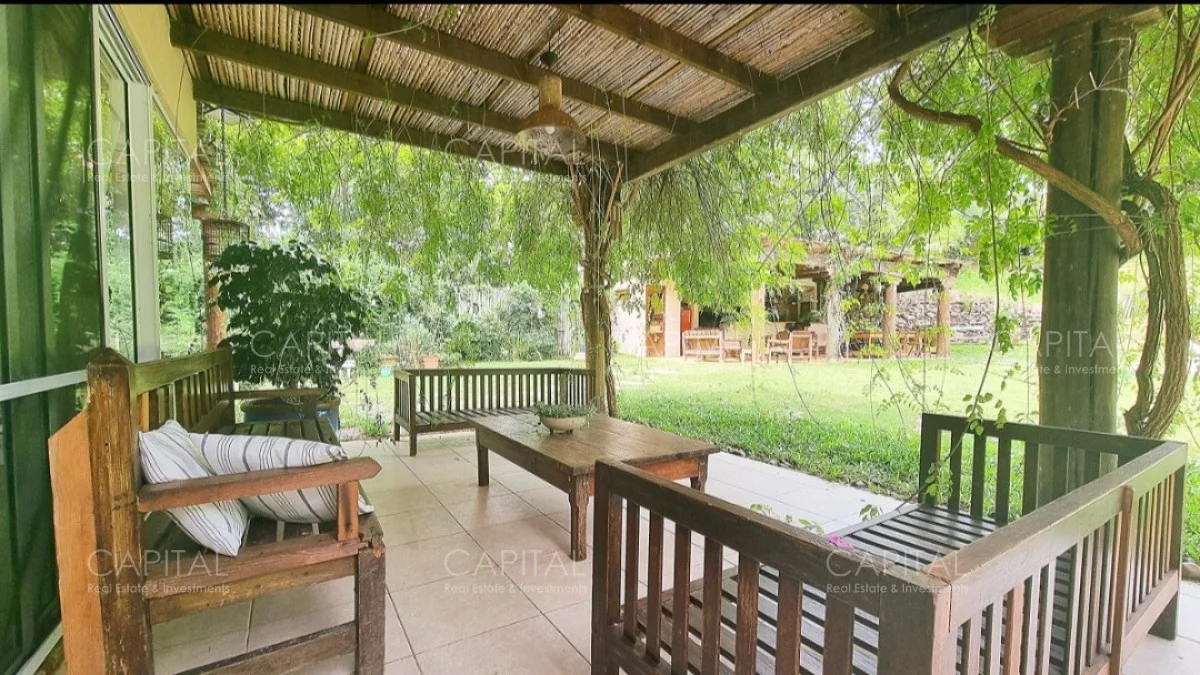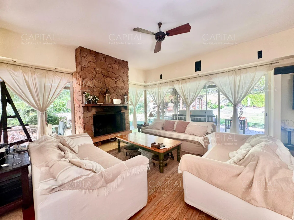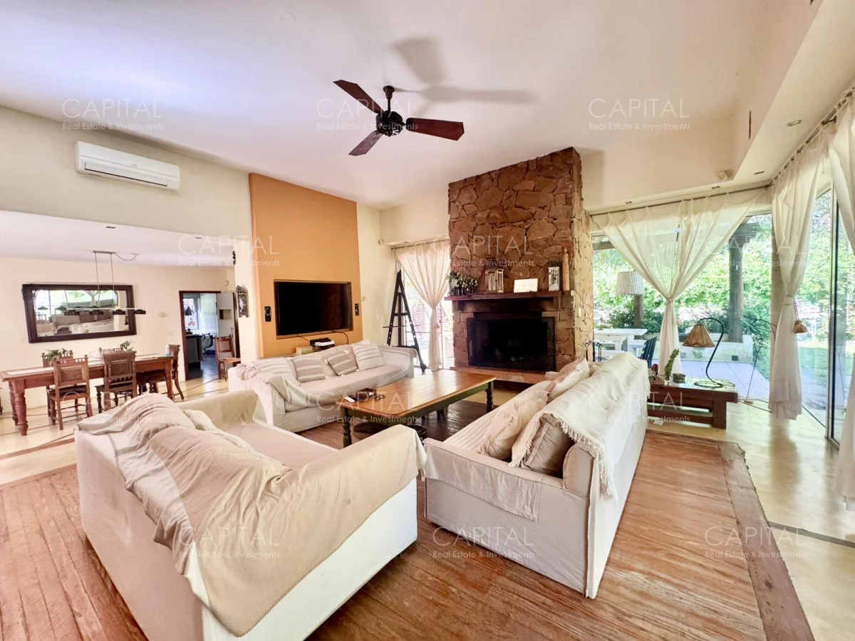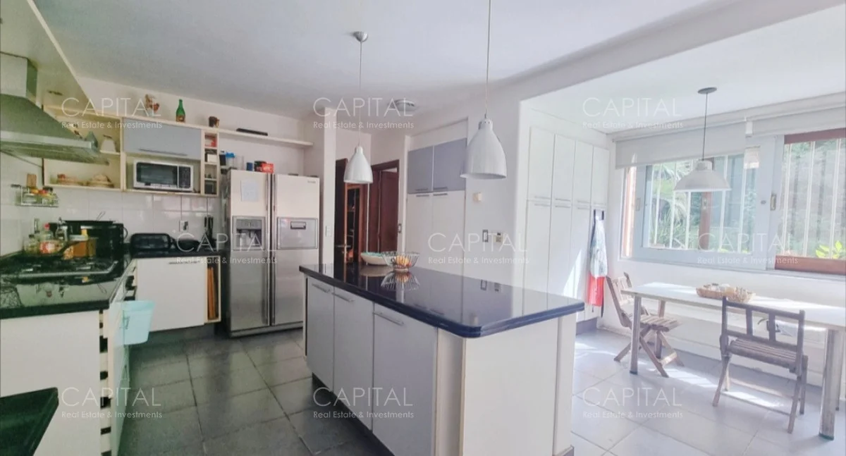 Amplio living comedor con jardín de invierno vidriado que le otorga luz natural al área social, Cocina definida con una isla en el medio y entrada directa por la cochera.