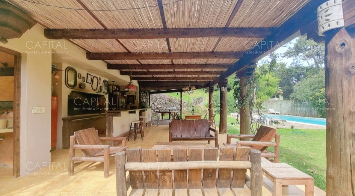 Piscina Grande junto a barbacoa techada con horno de barro y baño